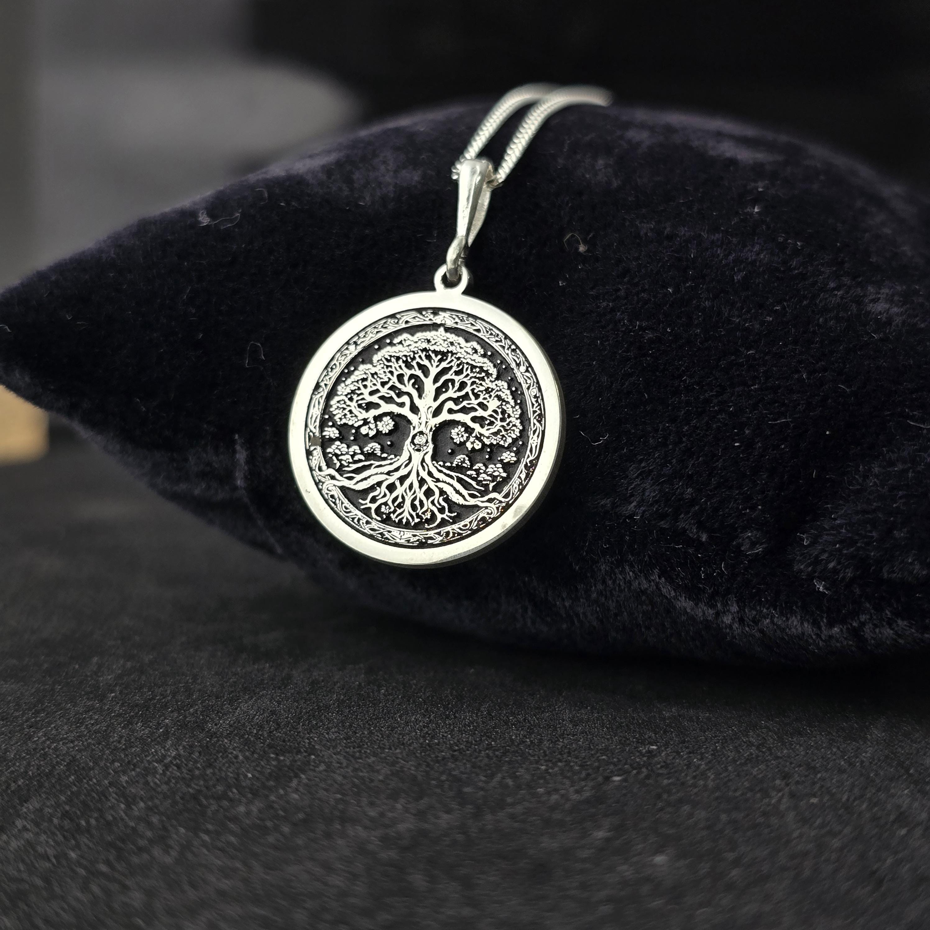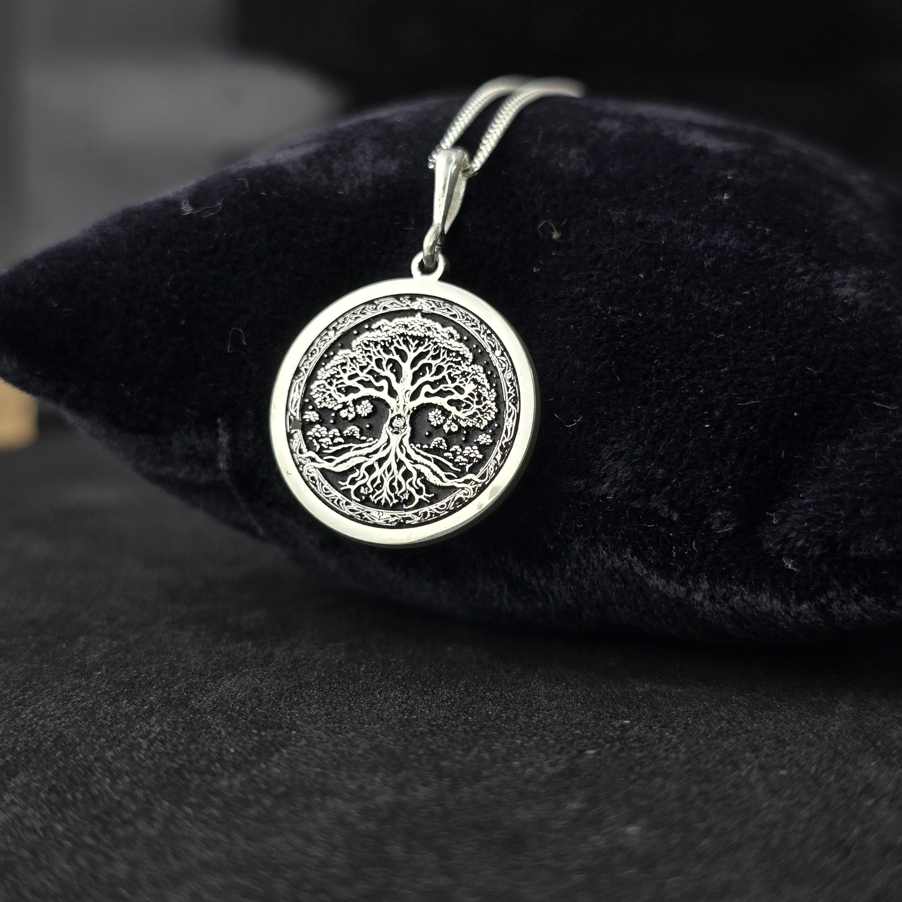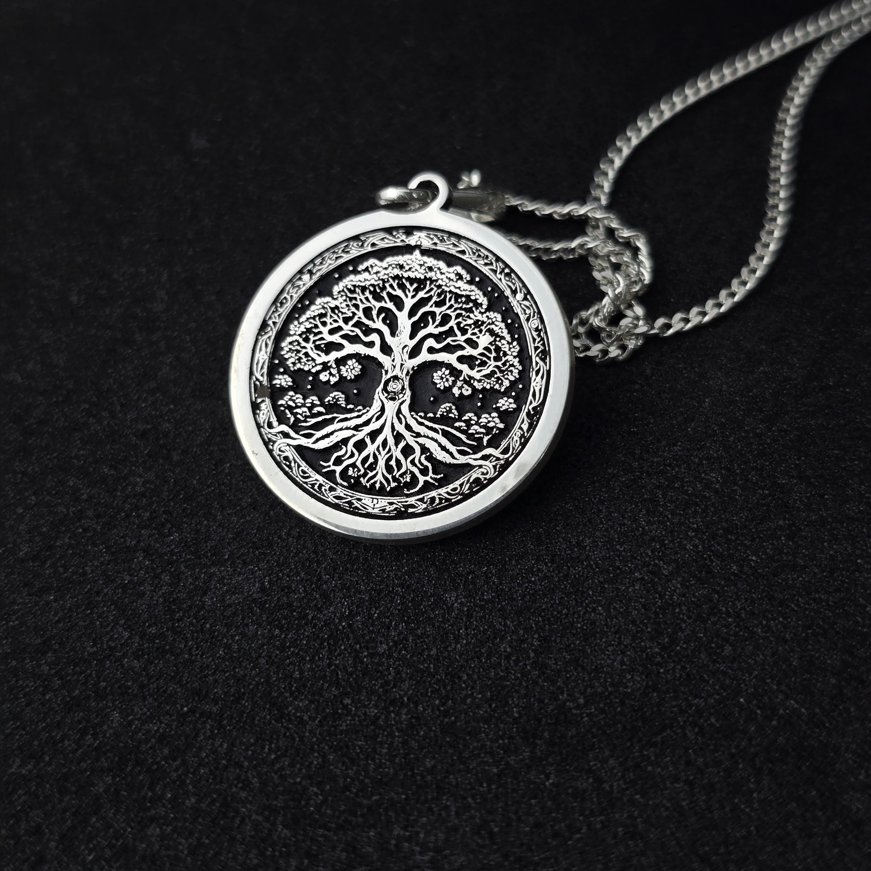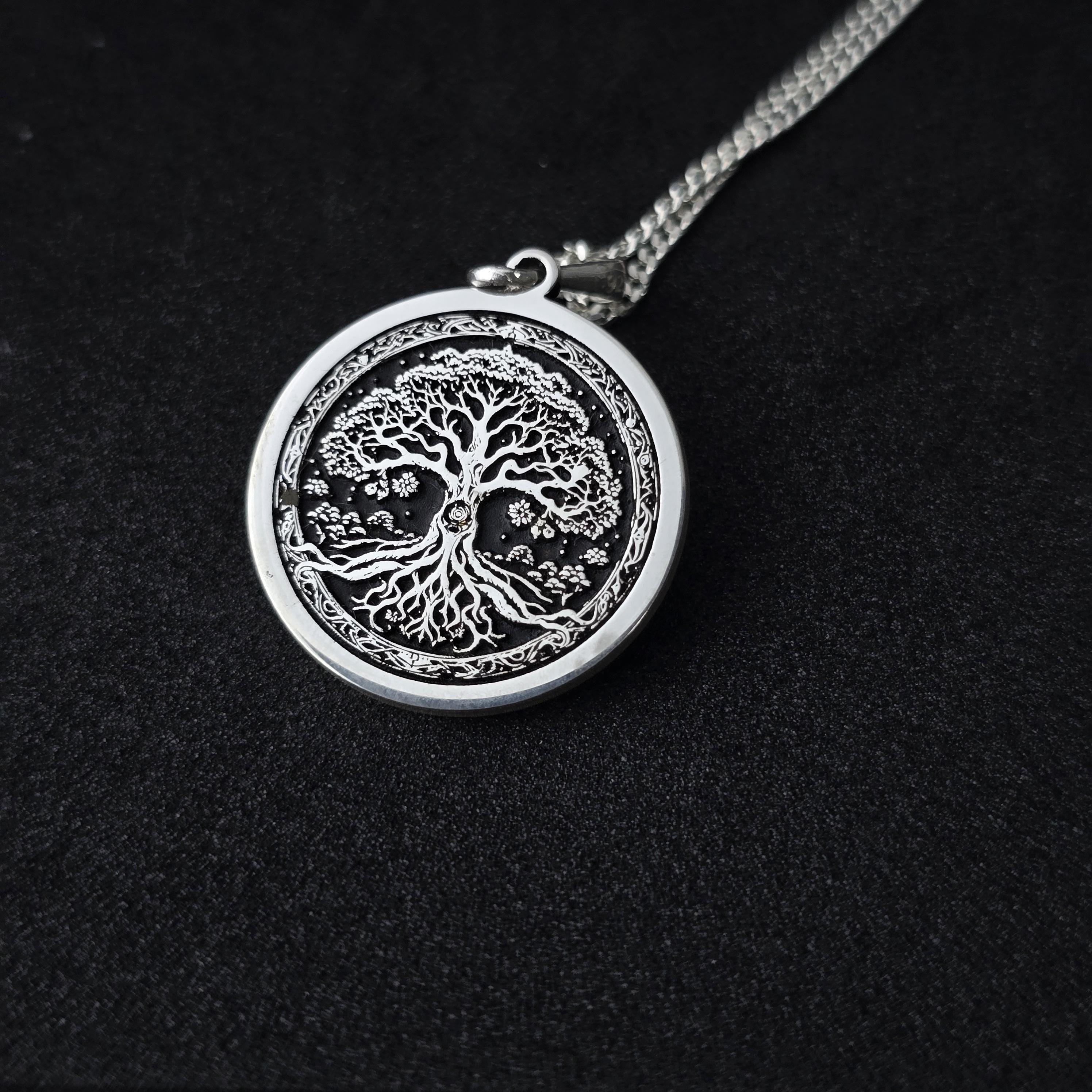 Silver Yggdrasil Necklace: Laser Cut Steel Celtic Tree of Life
