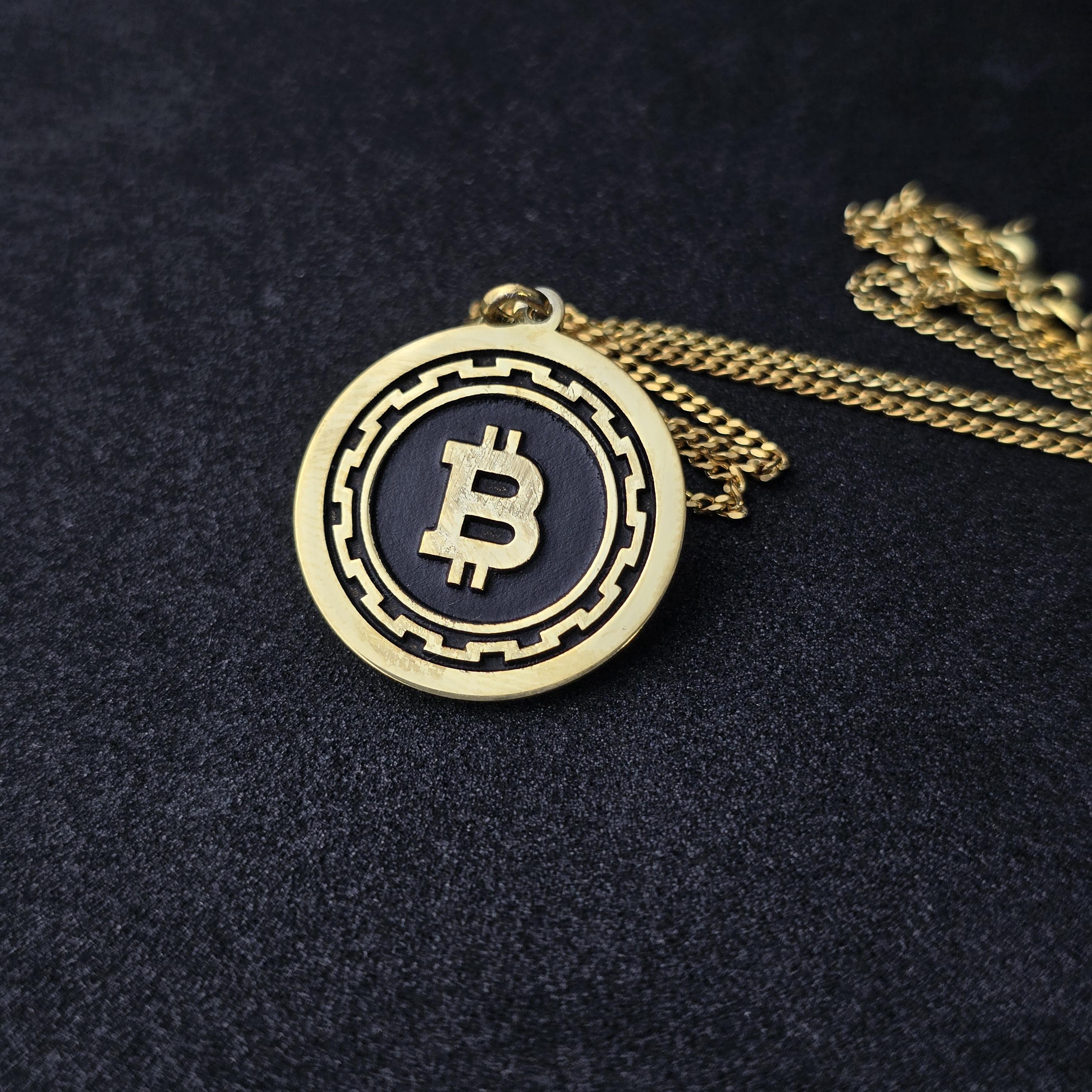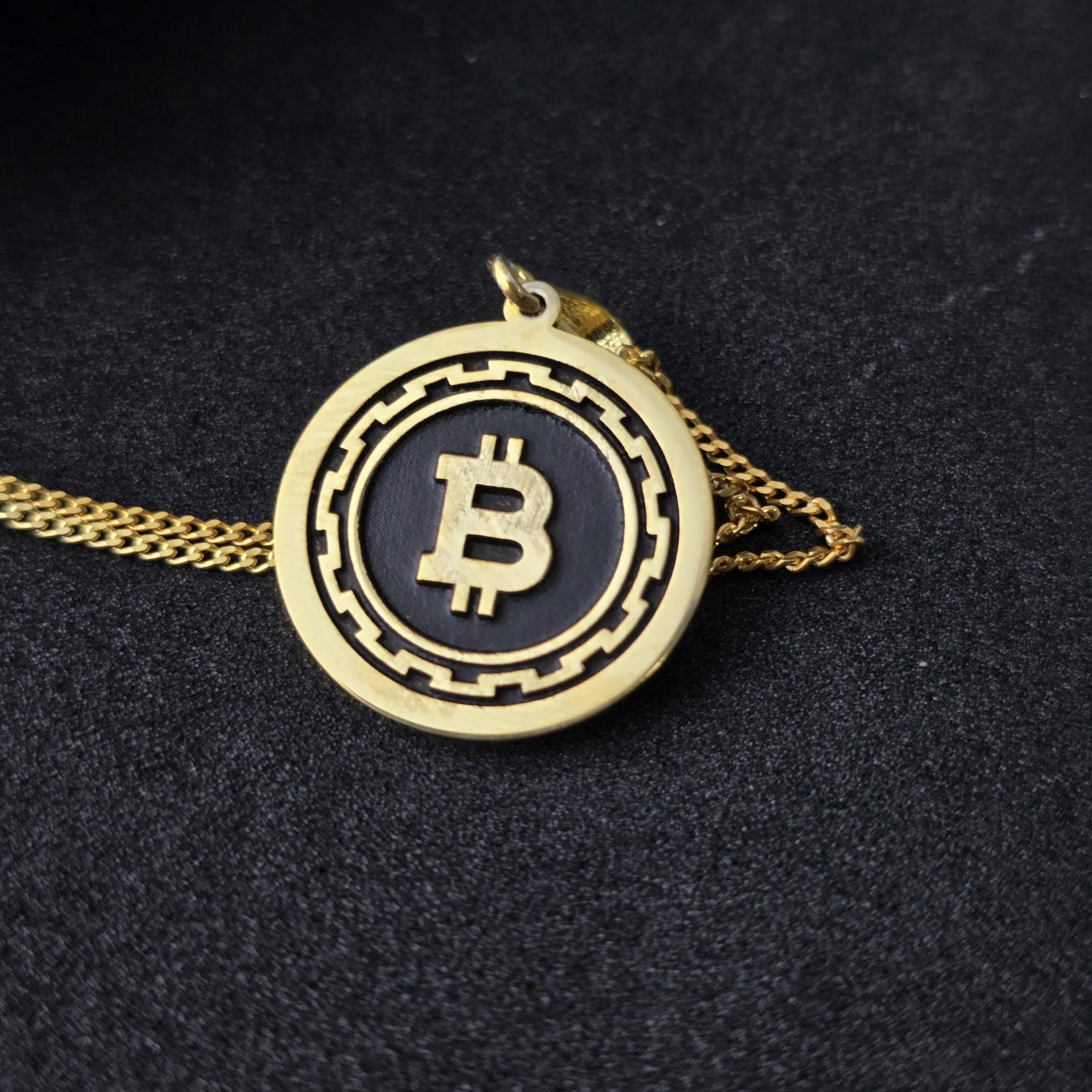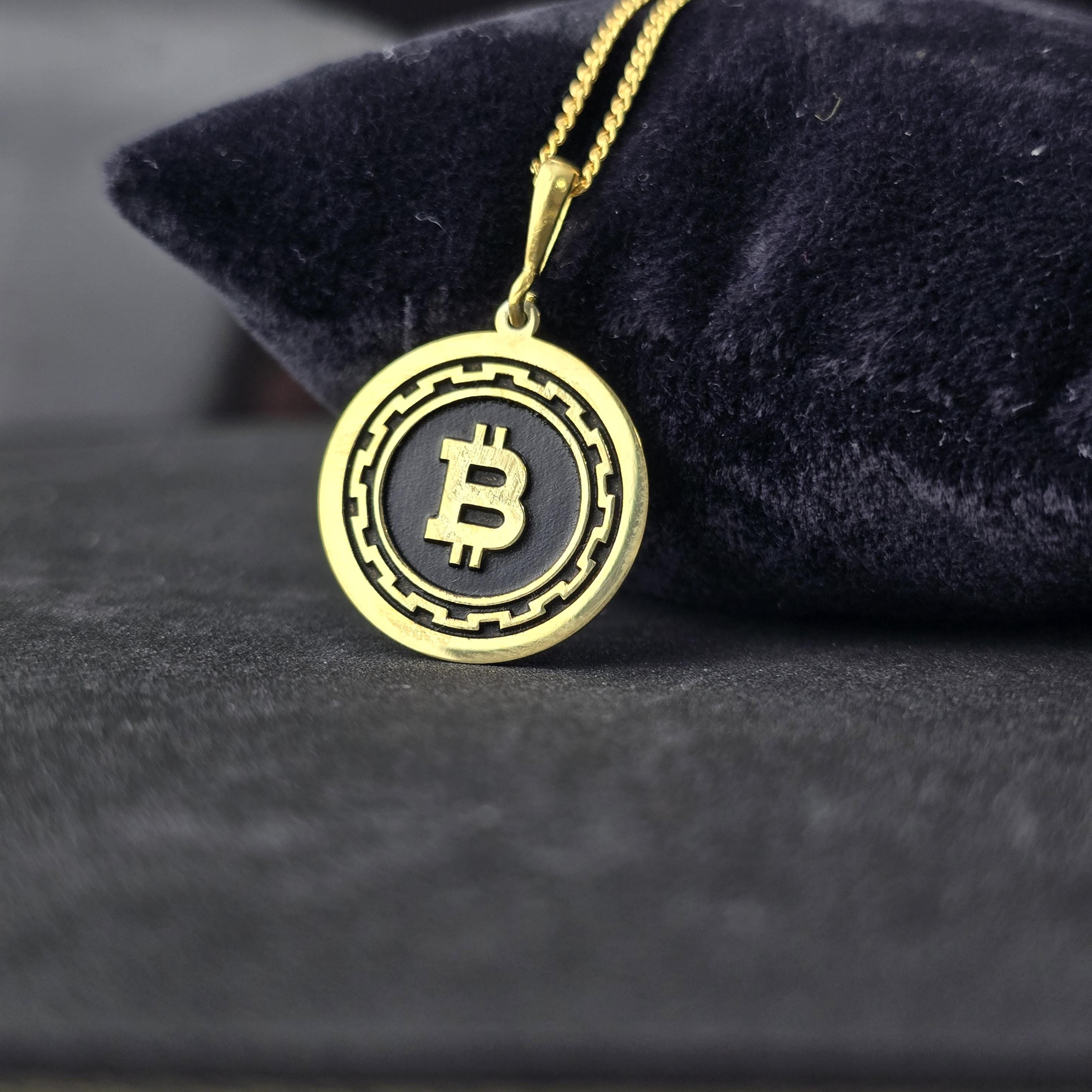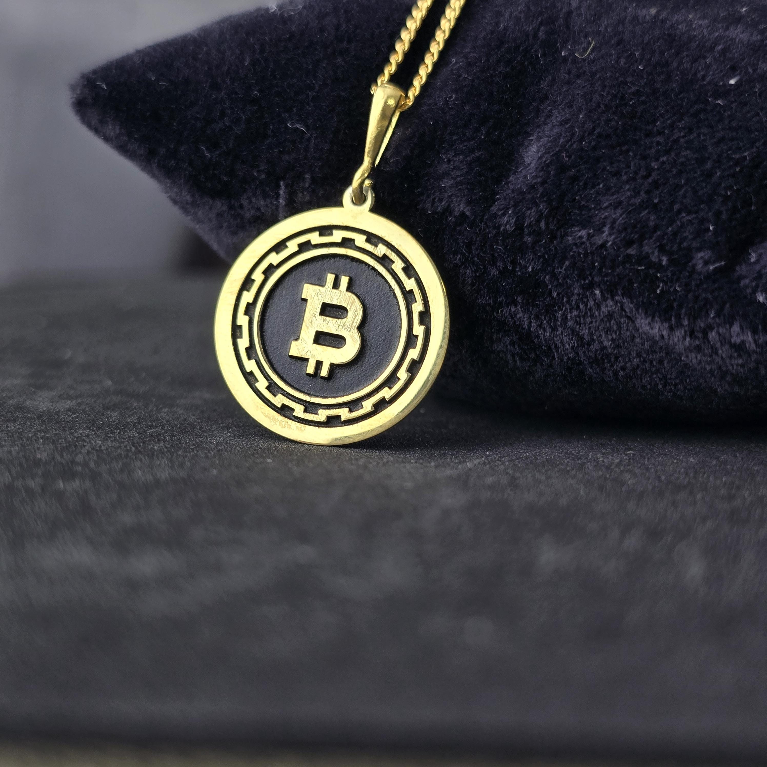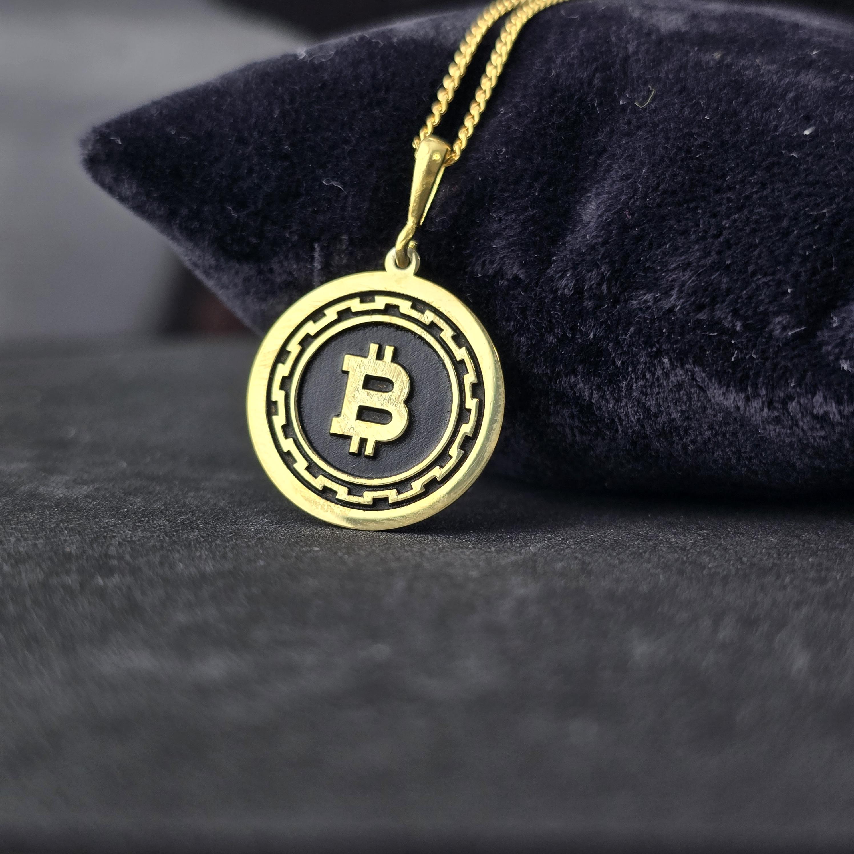 14K Solid Gold Bitcoin Pendant Necklace: Crypto Coin Charm
