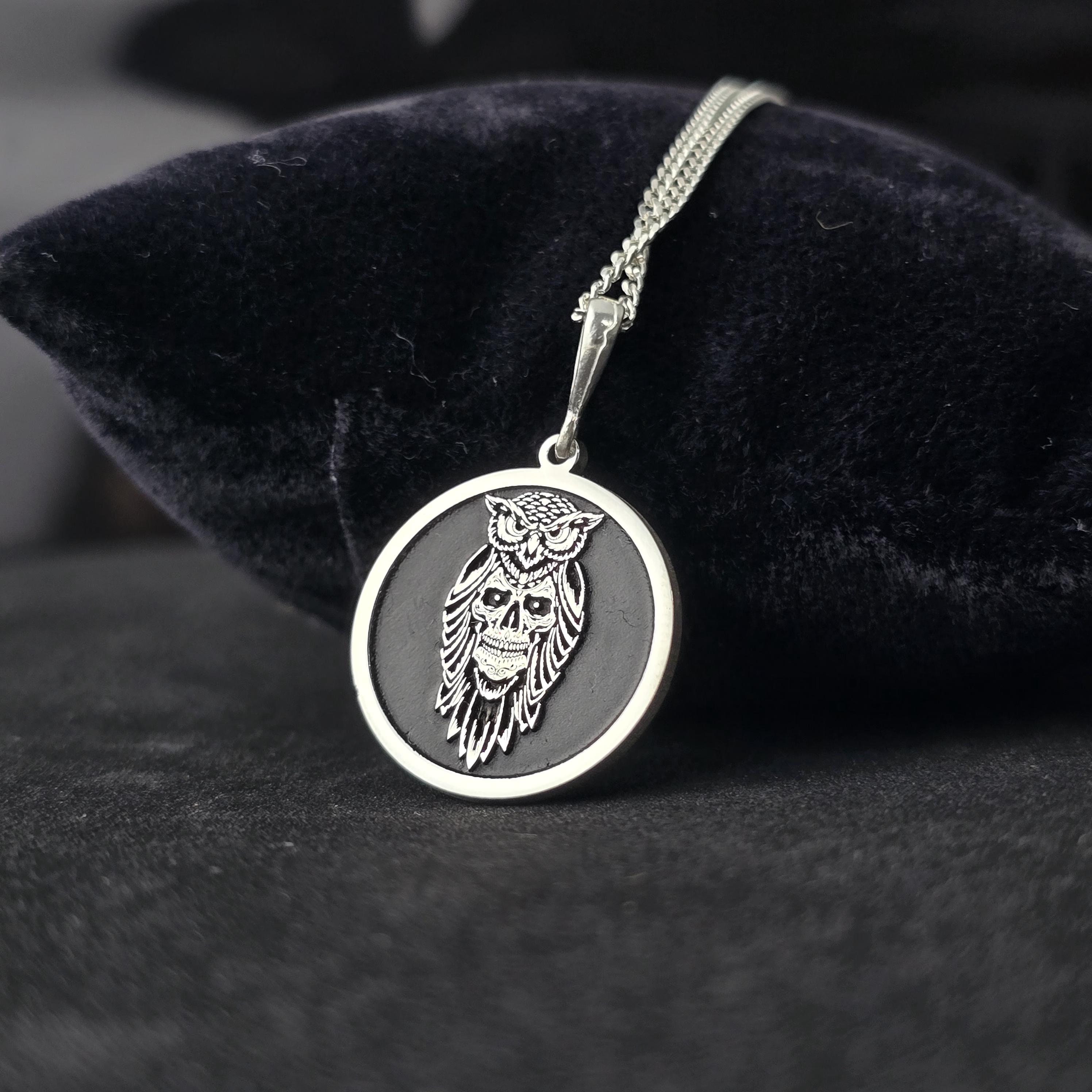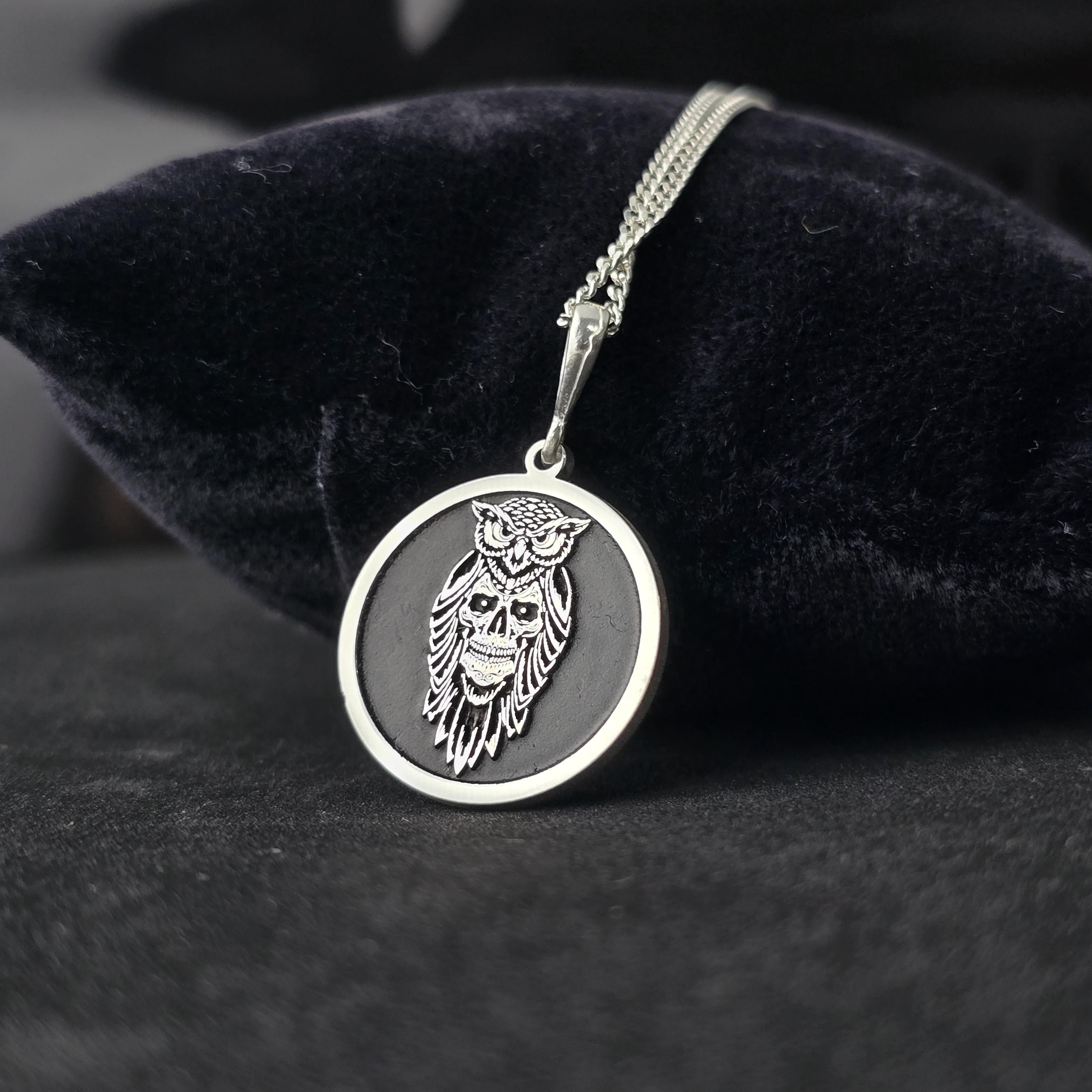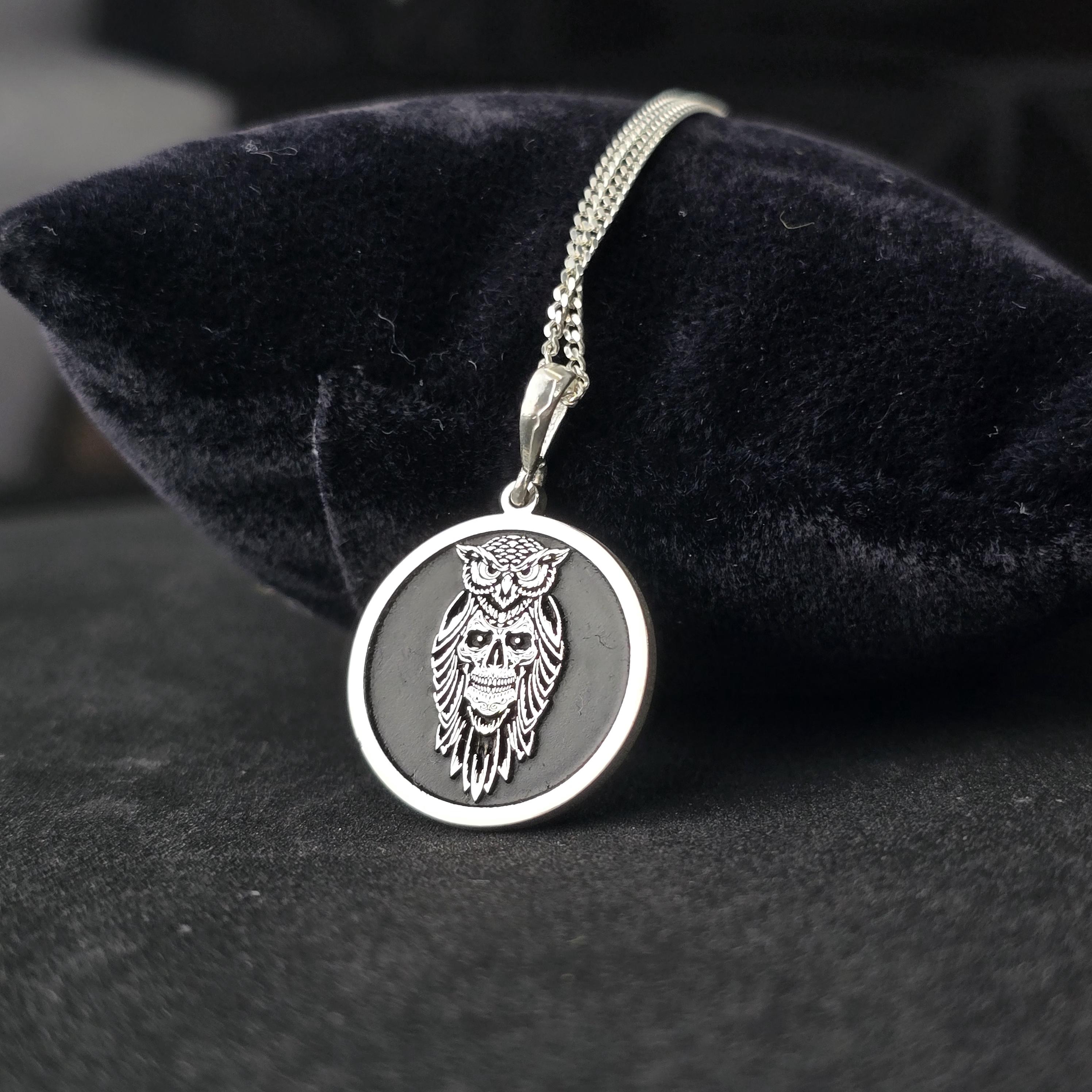 Sterling Silver Owl Skull Pendant: Gothic Esoteric Necklace
