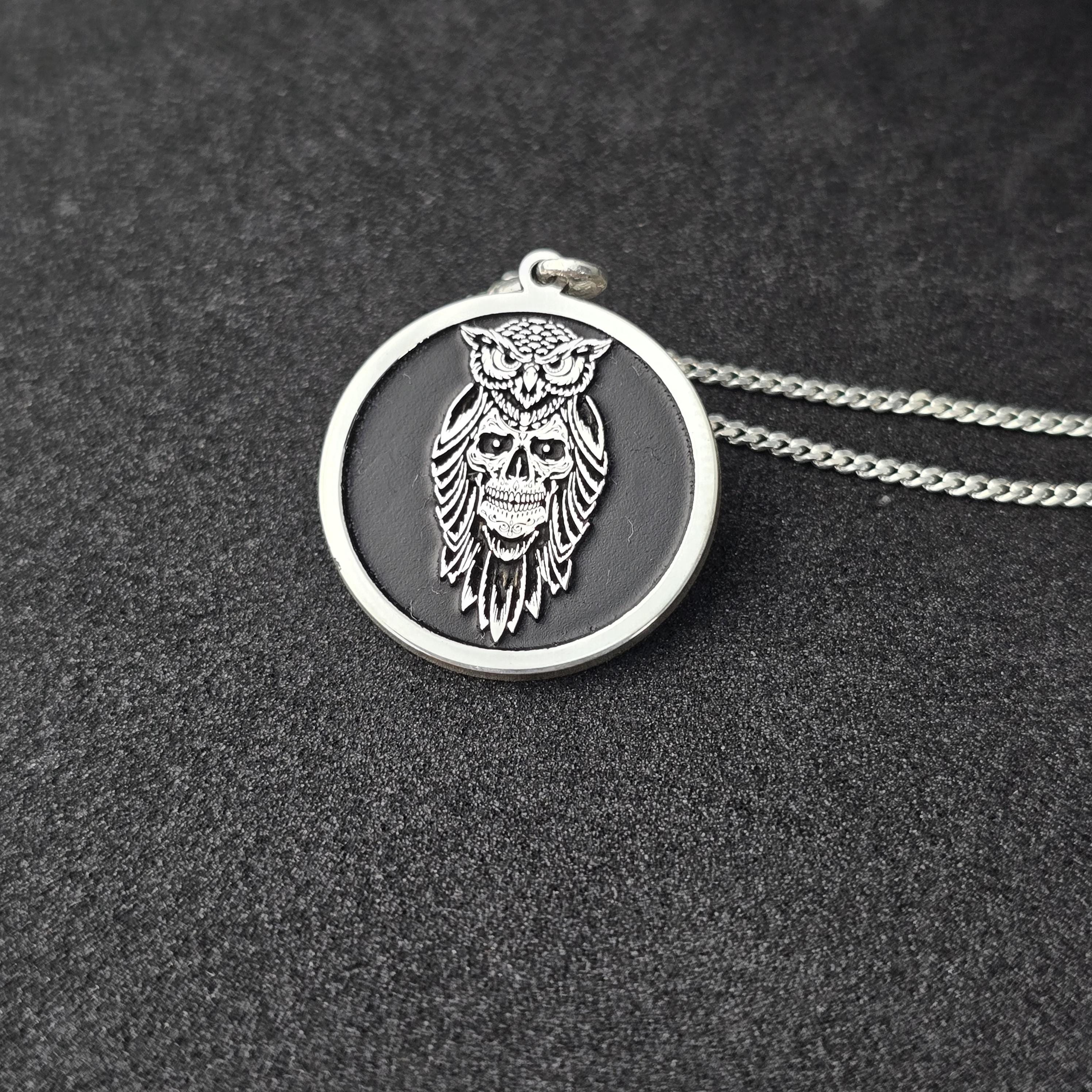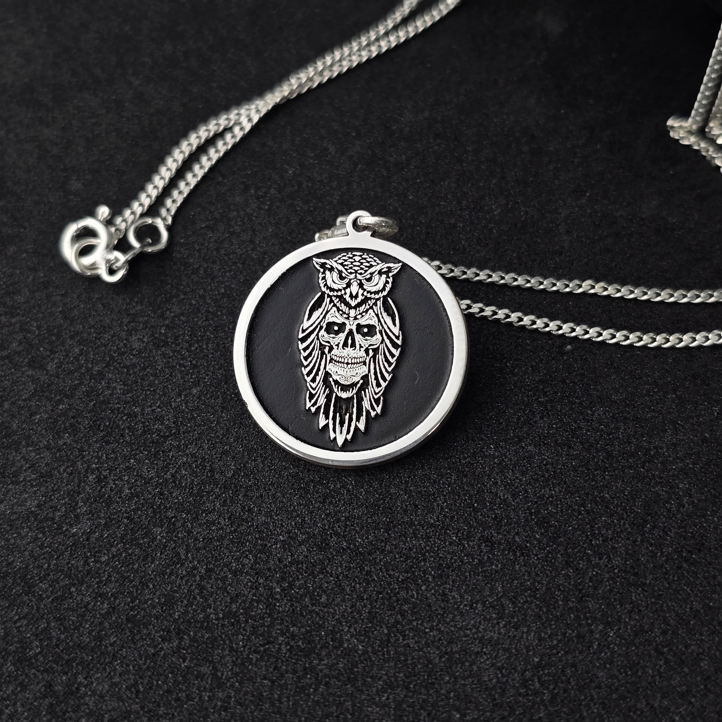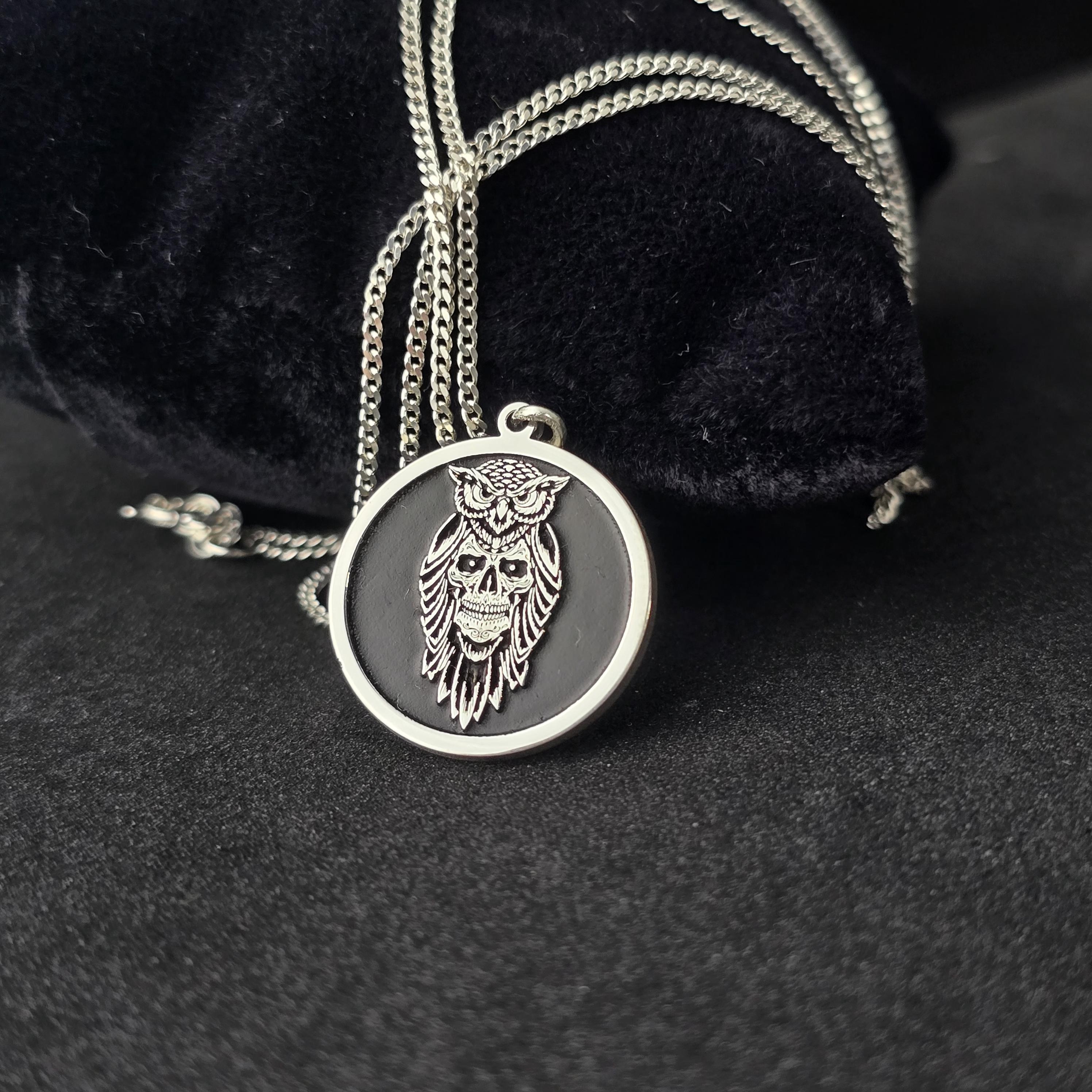 Sterling Silver Owl Skull Pendant: Gothic Esoteric Necklace