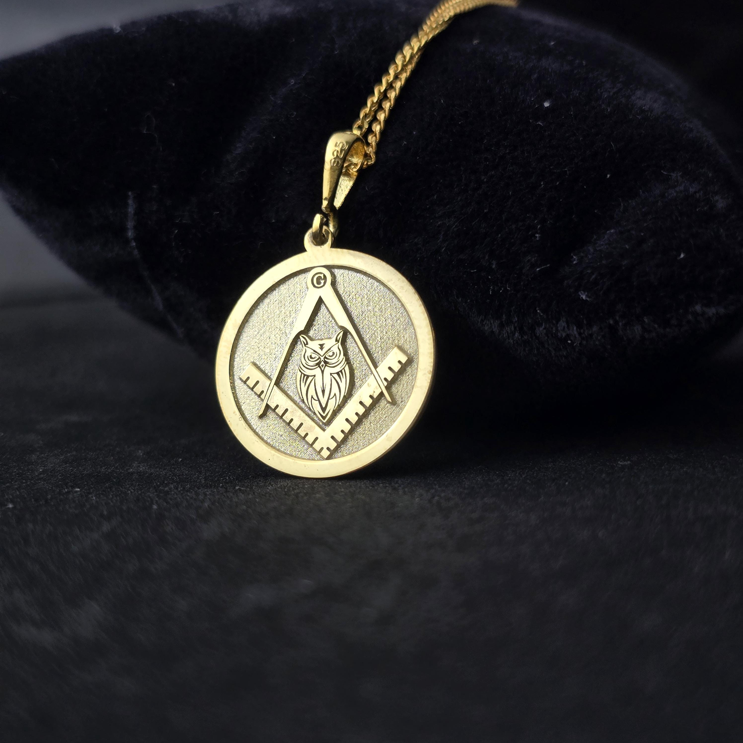 Masonic Owl Necklace: Freemason Symbol Pendant, Fraternal Jewelry