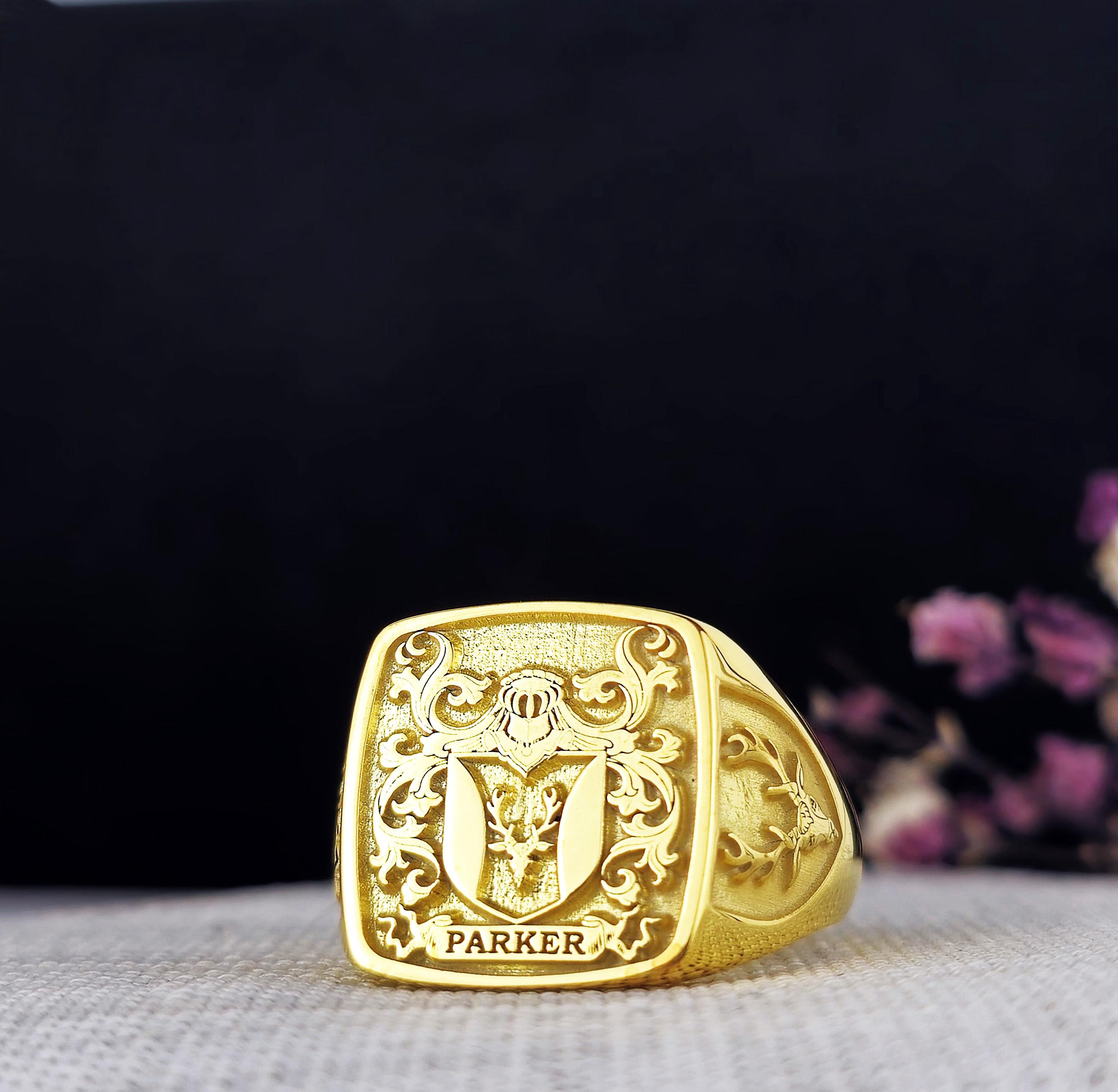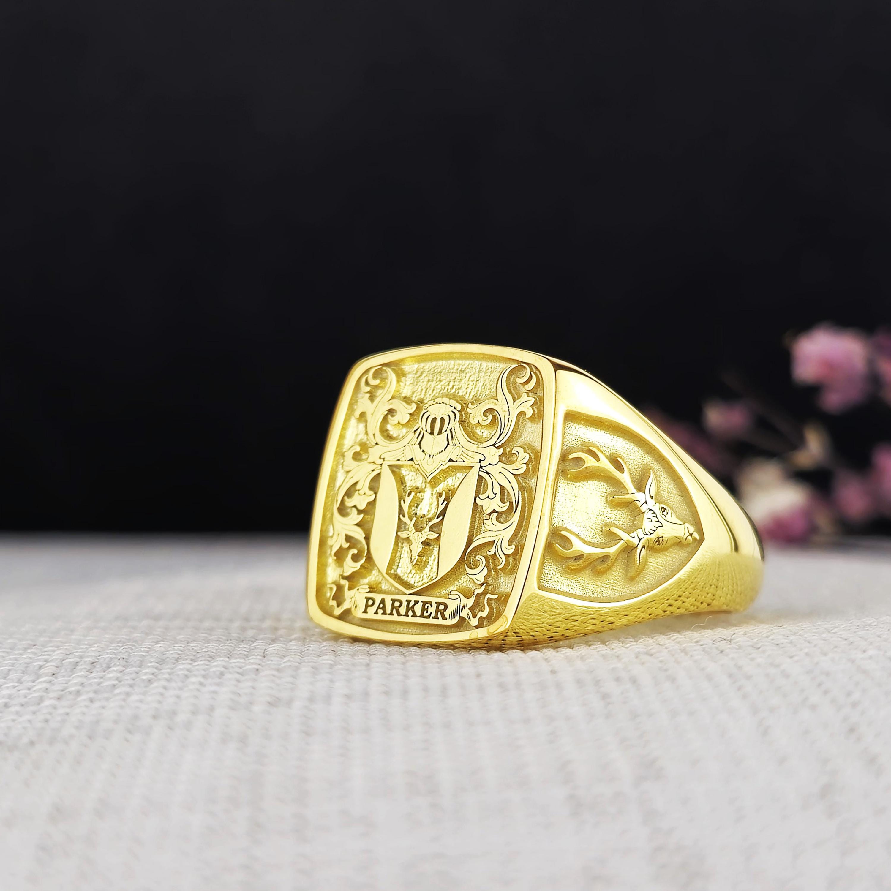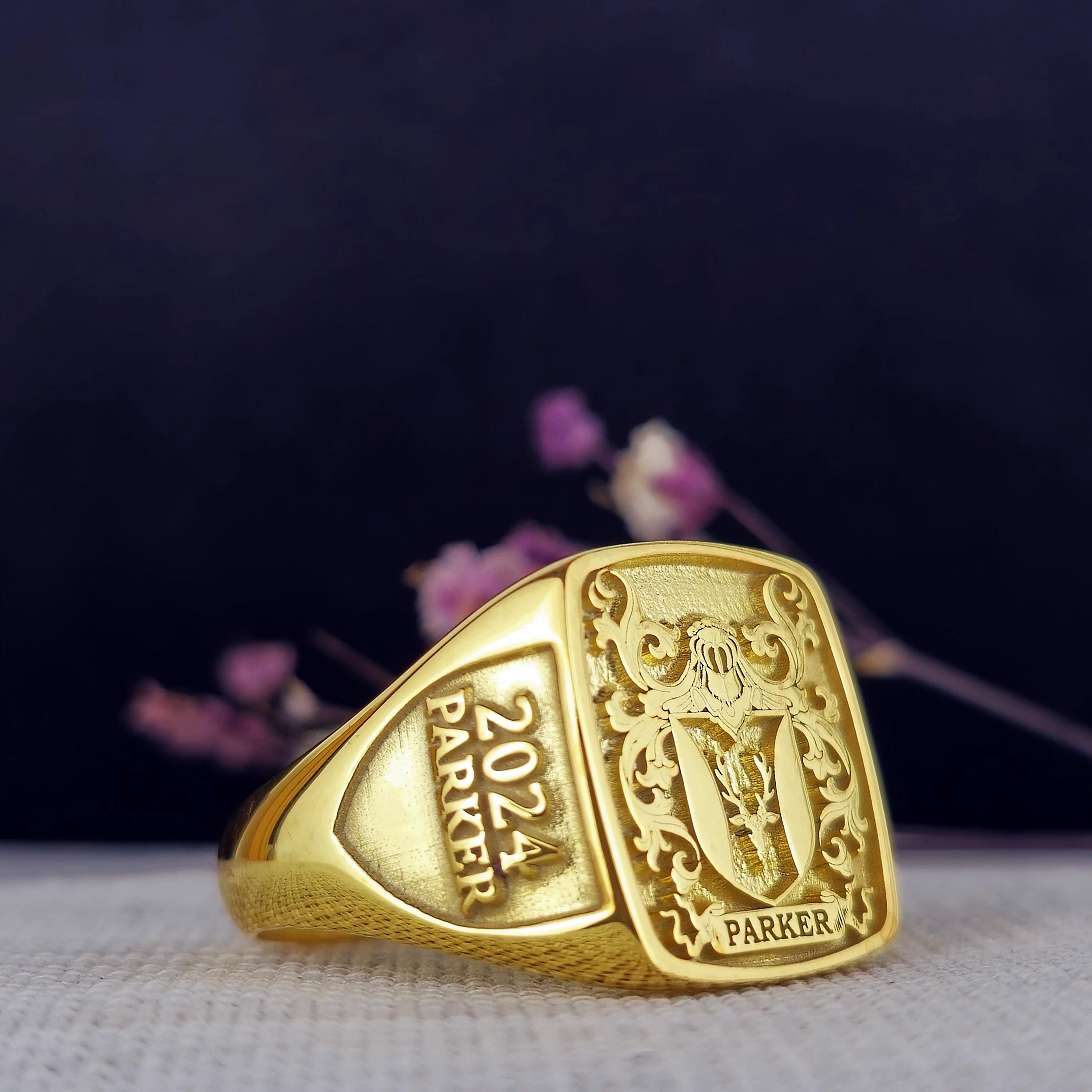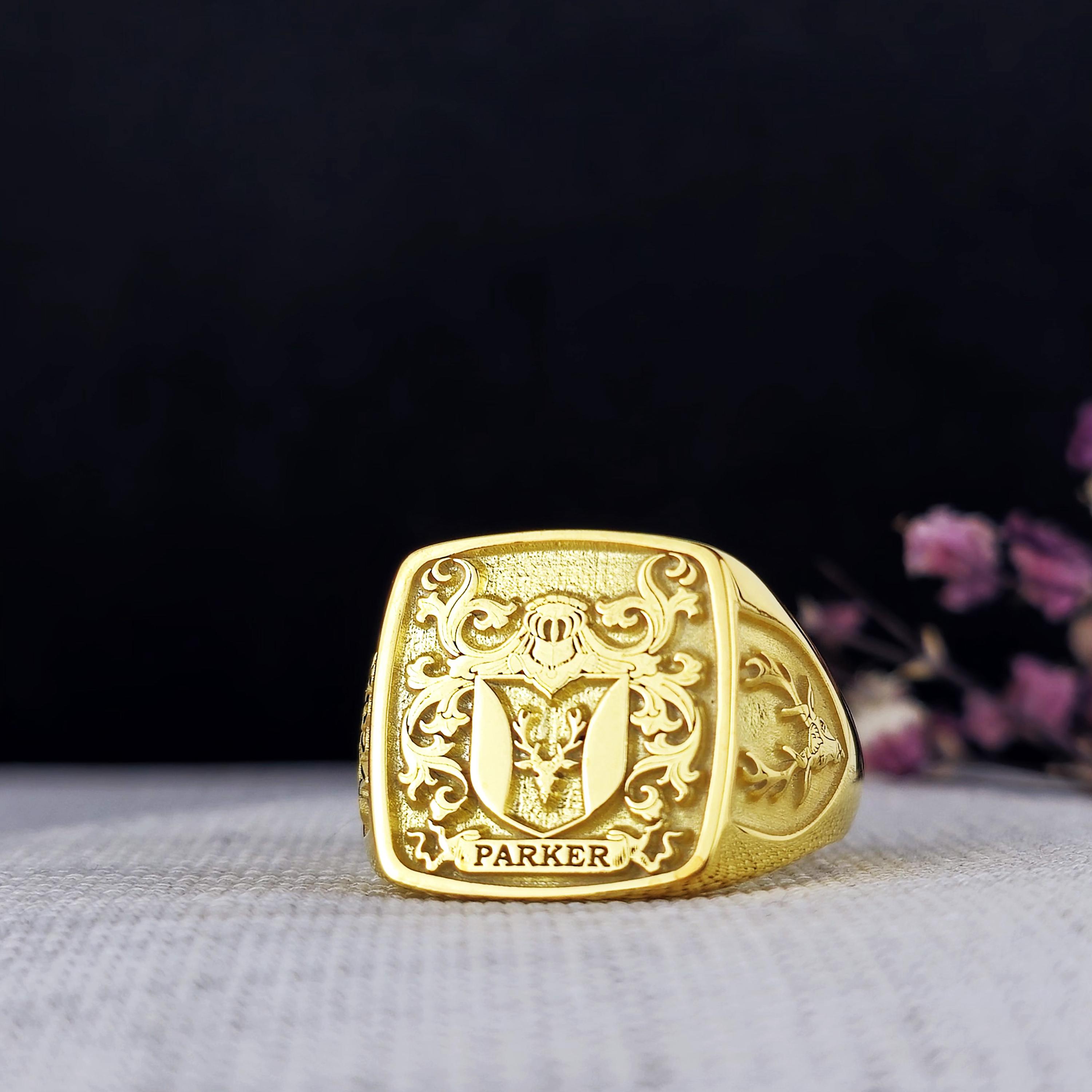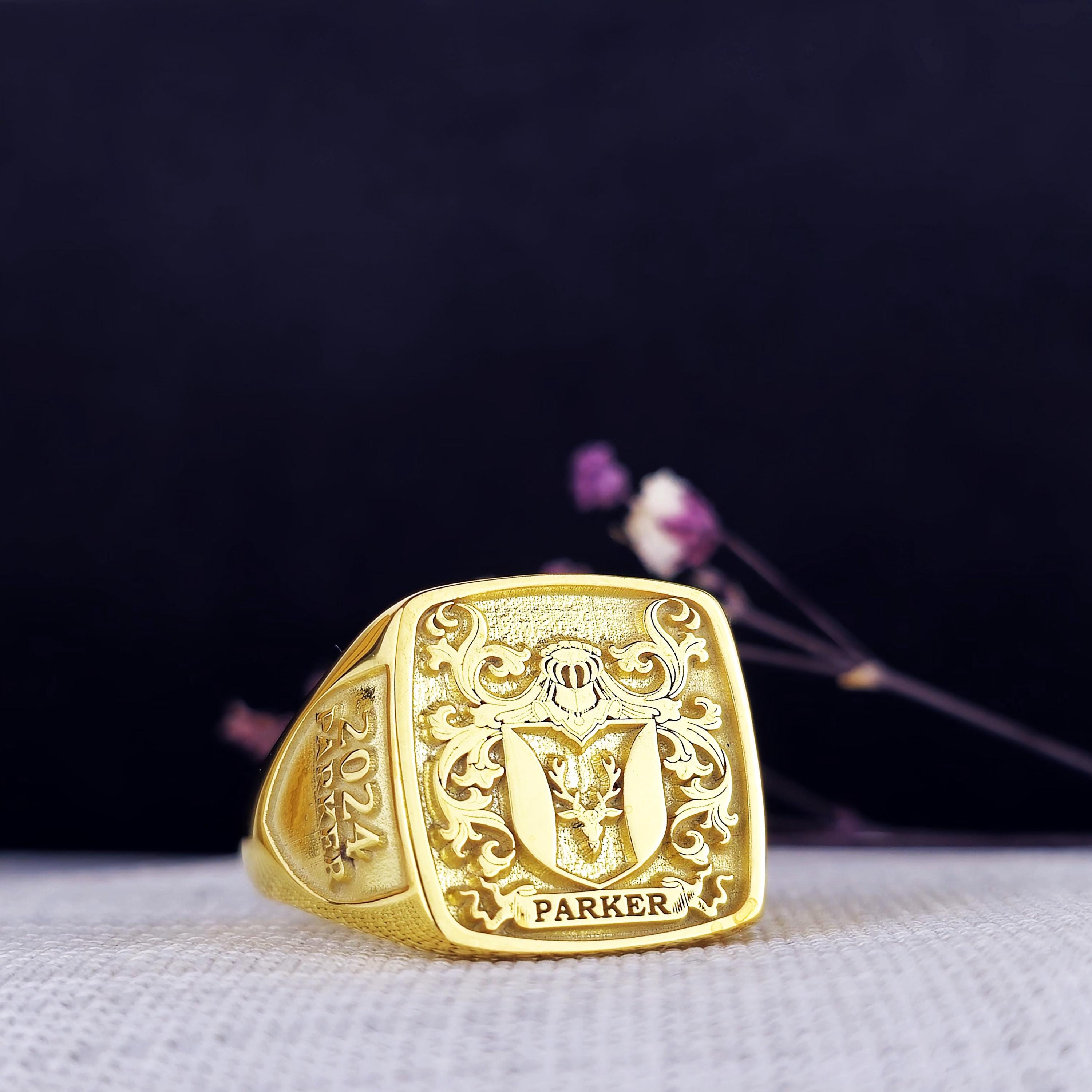 Custom Family Crest Ring: Personalized Gold & Silver Coat of Arms