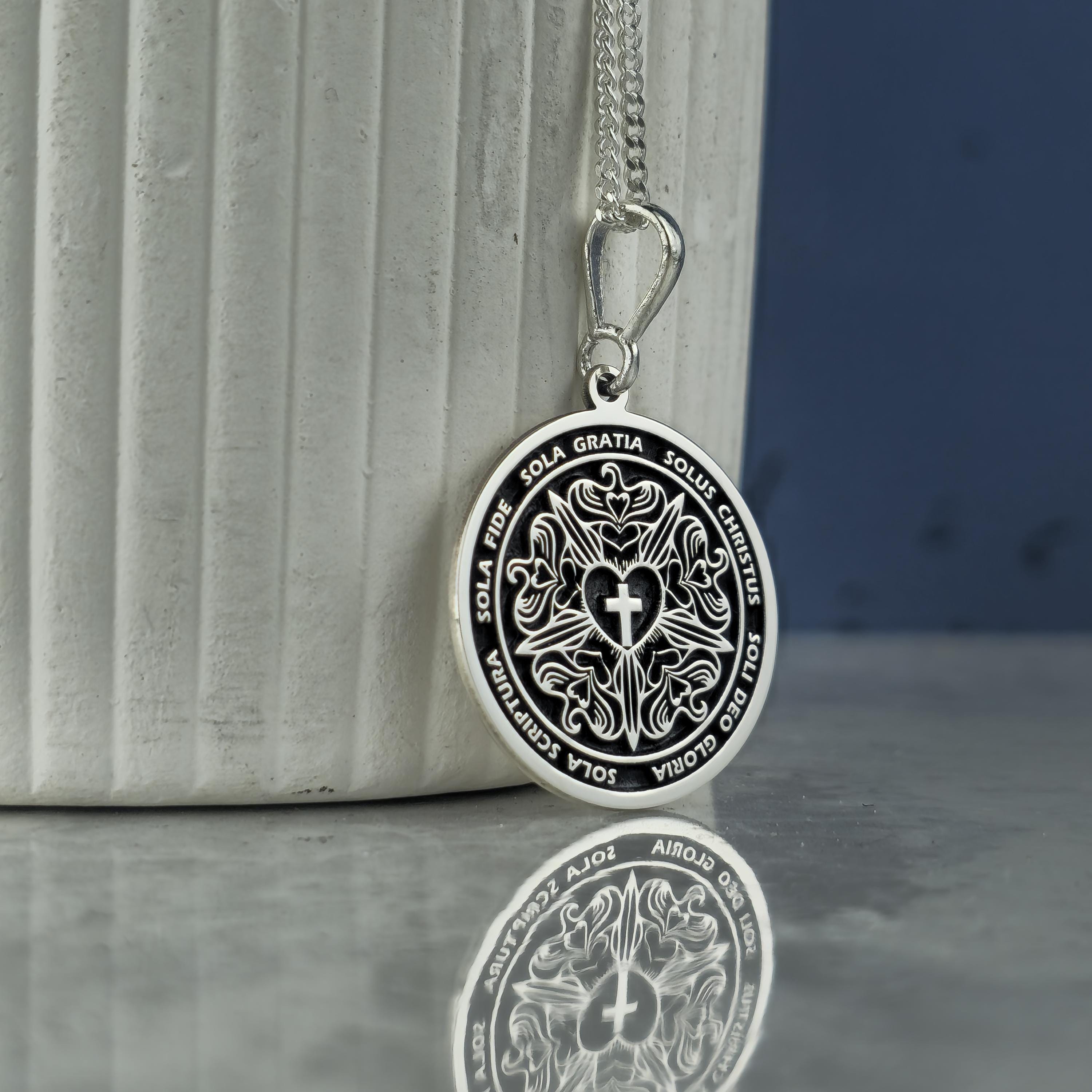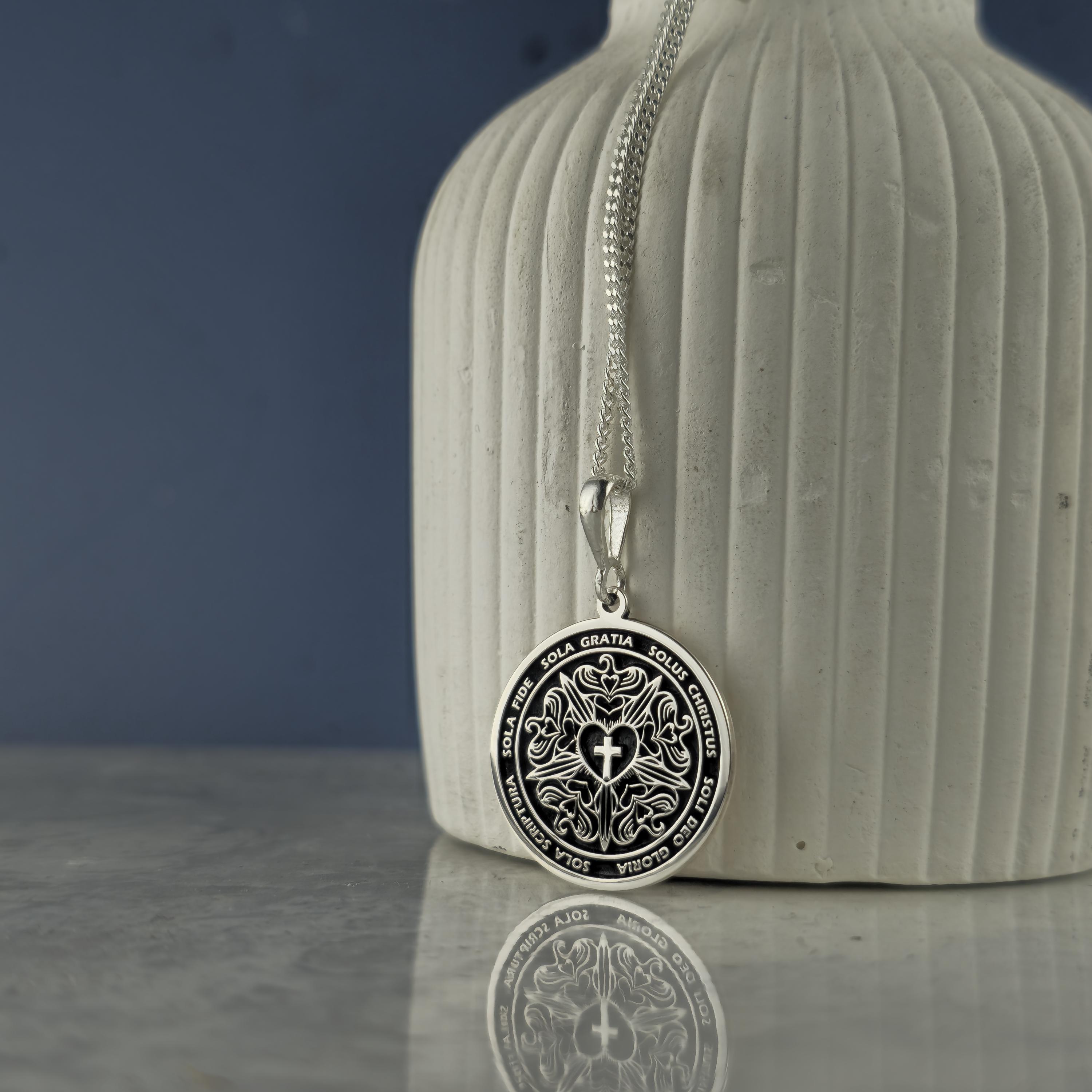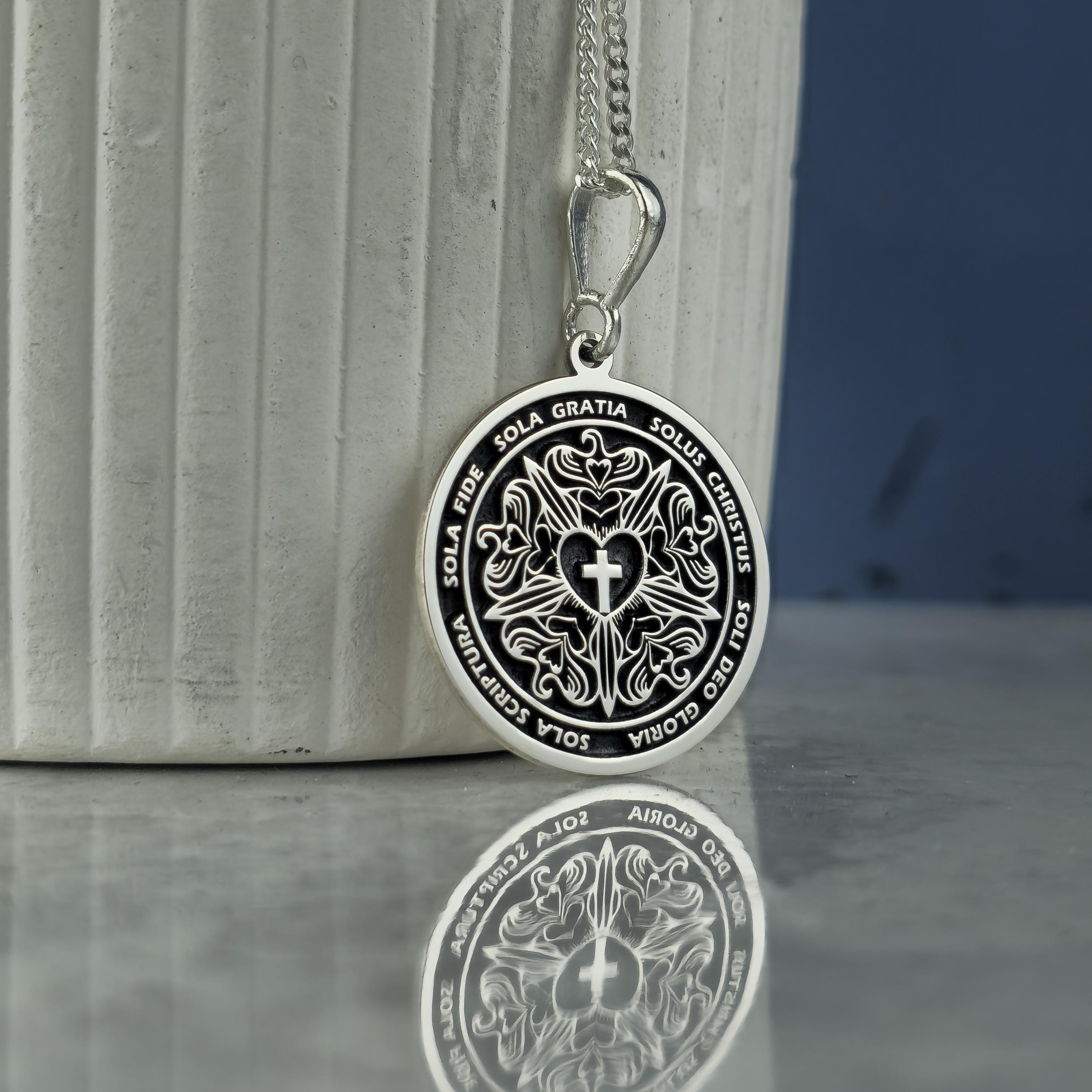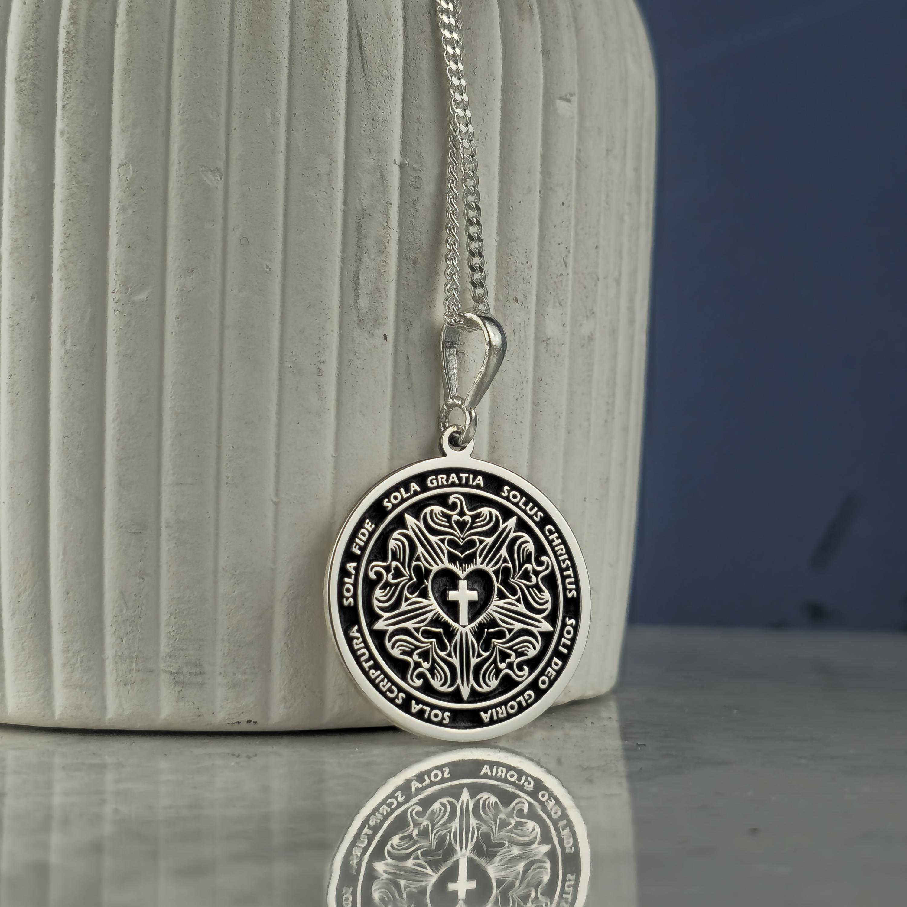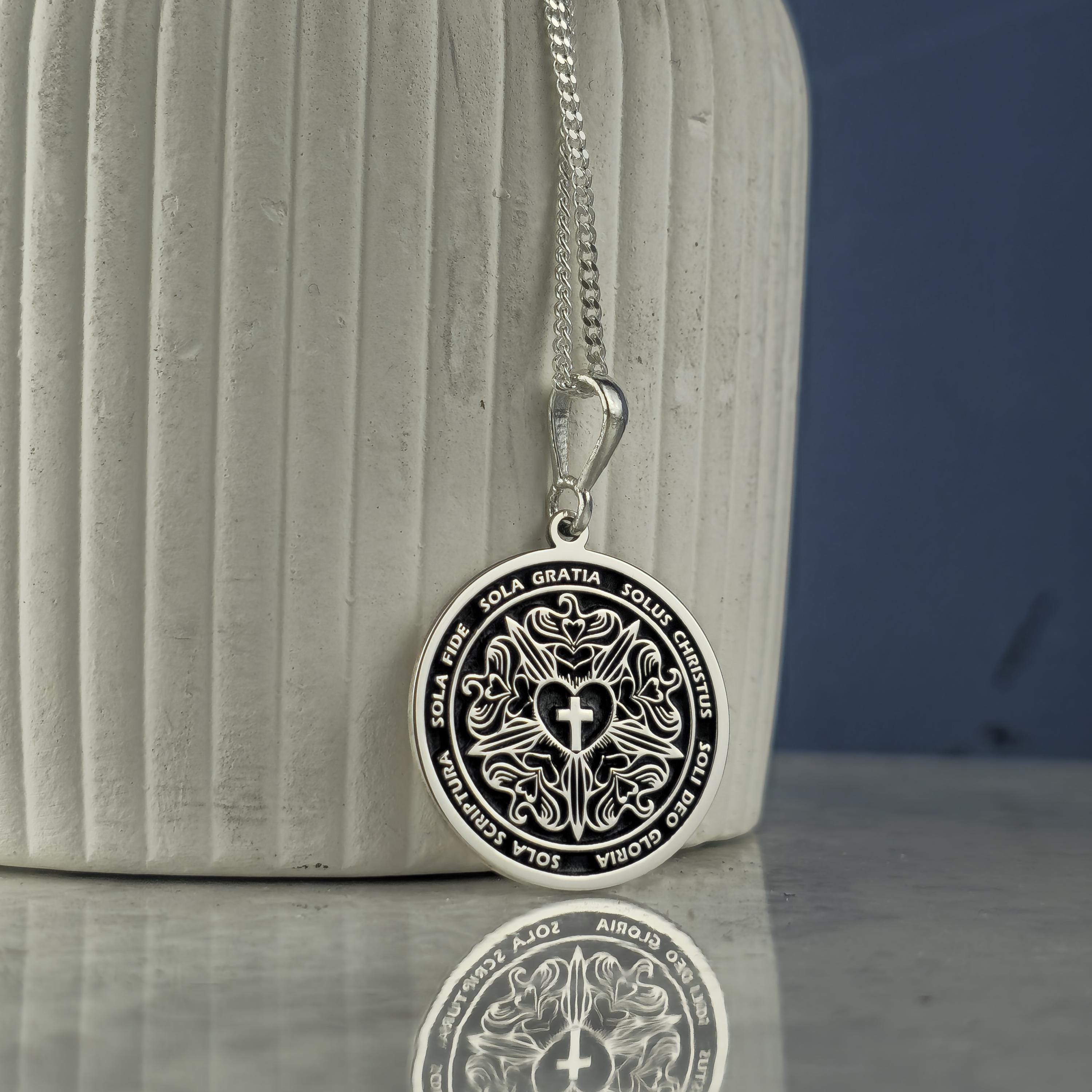 Sterling Silver Luther Rose Pendant: Reformation Christian Necklace