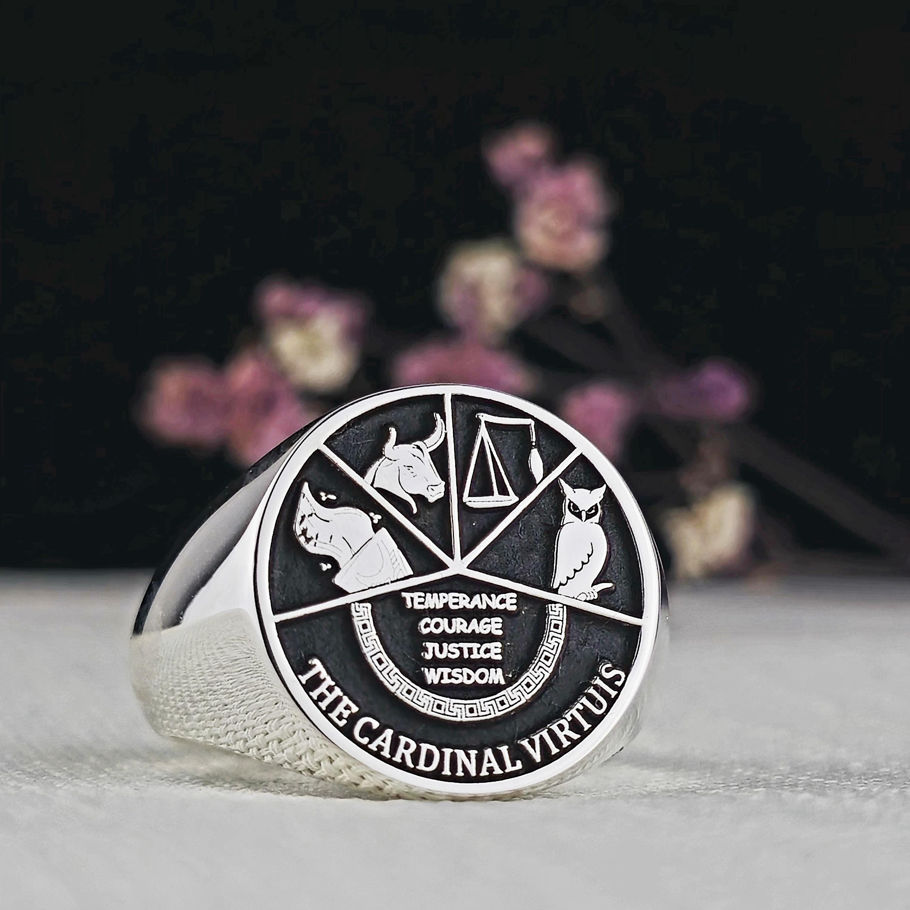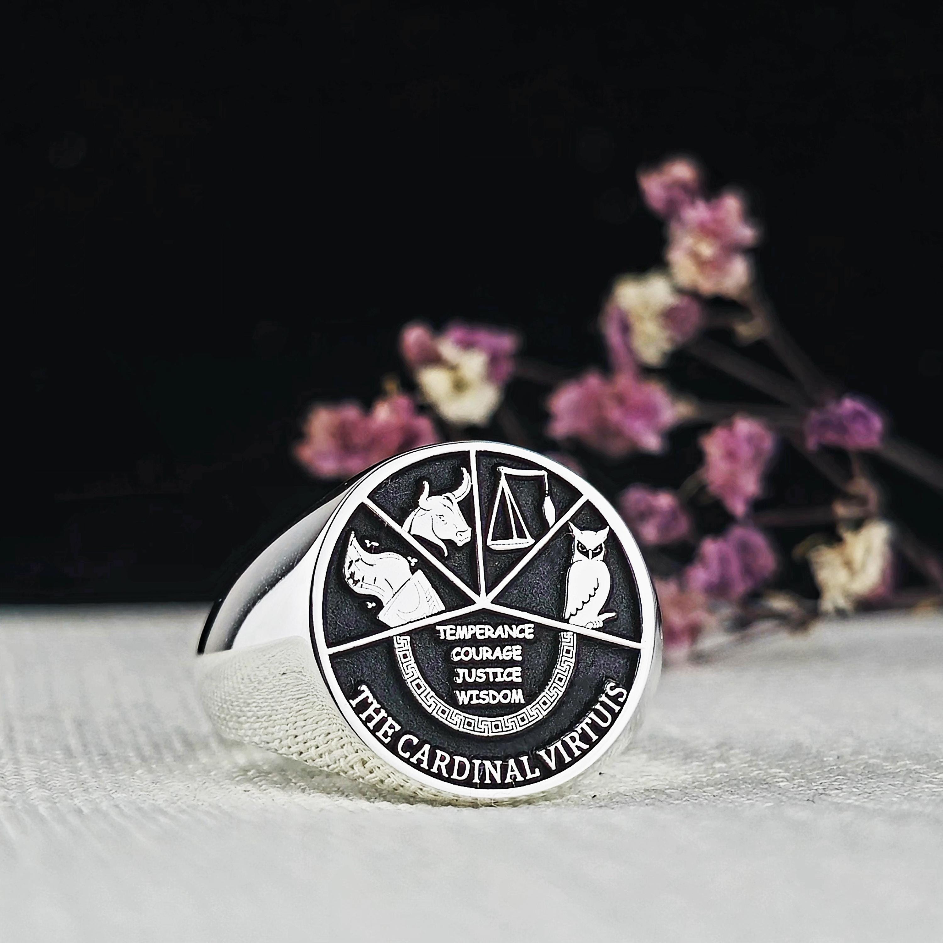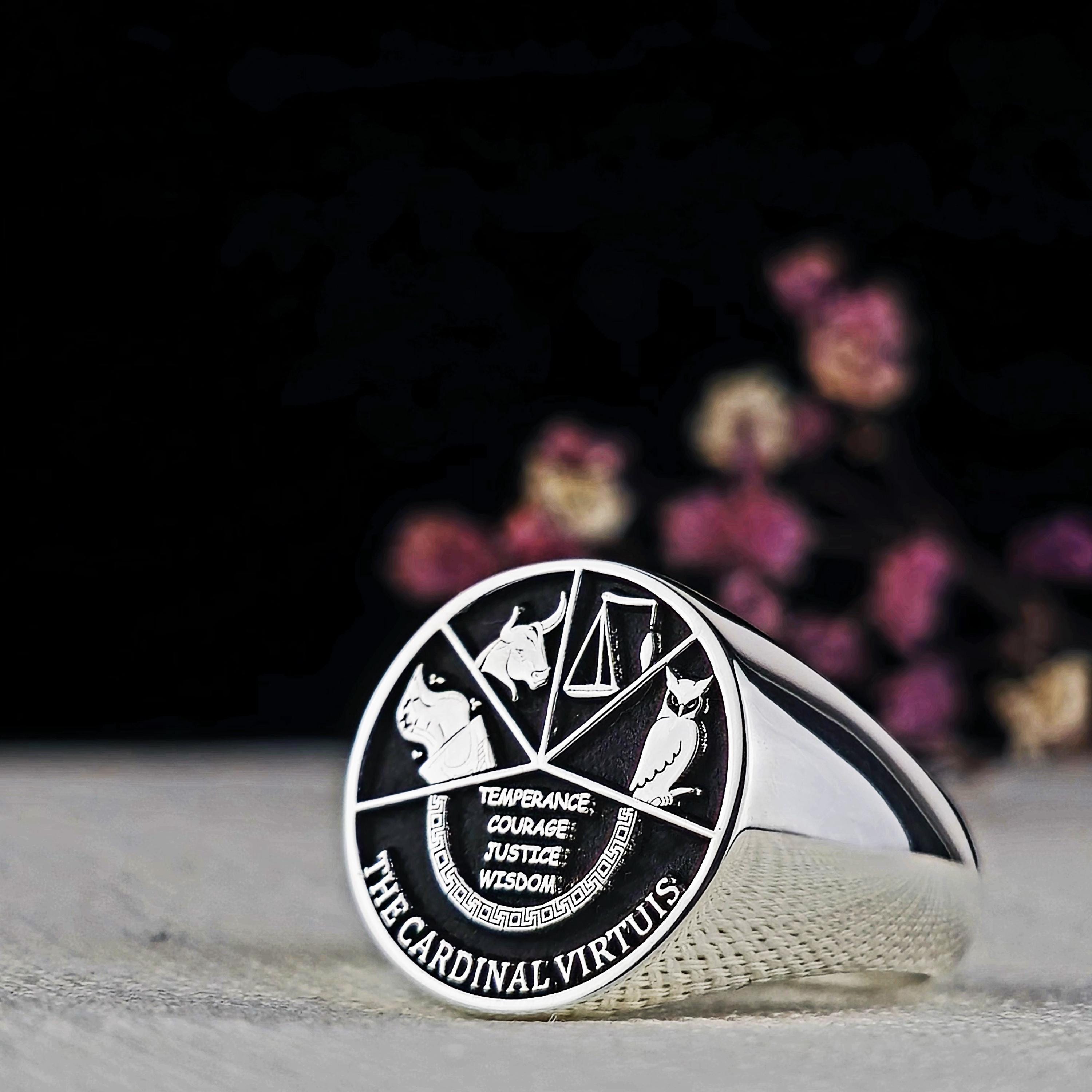 Cardinal Virtues Ring: Stoic Wisdom, Justice, Courage, Temperance