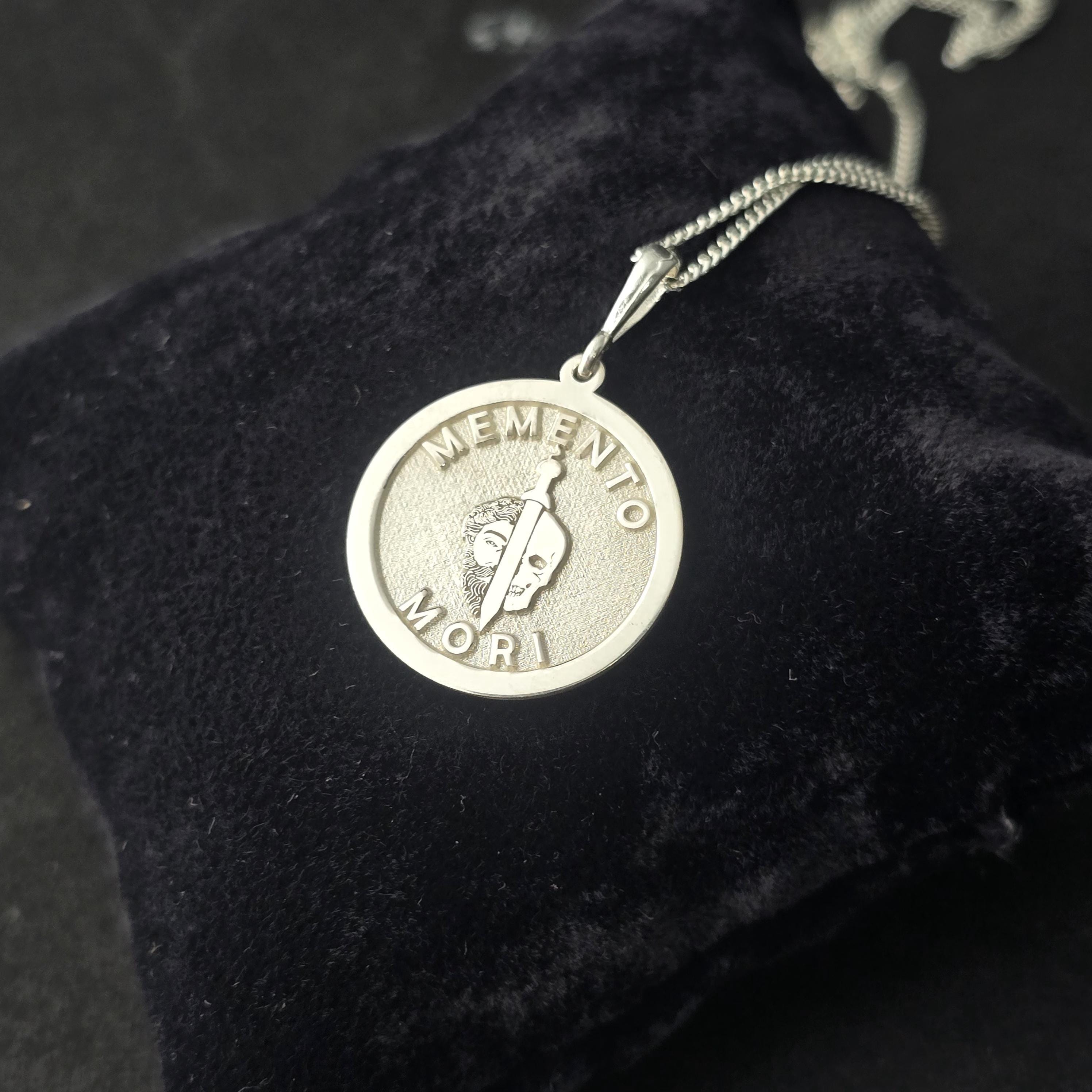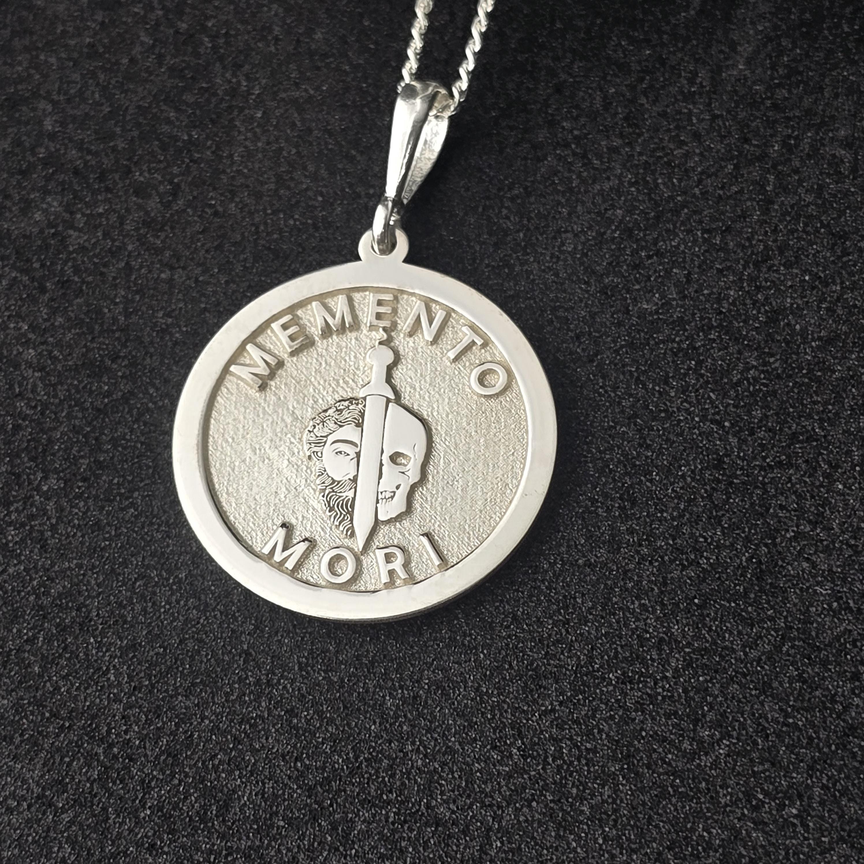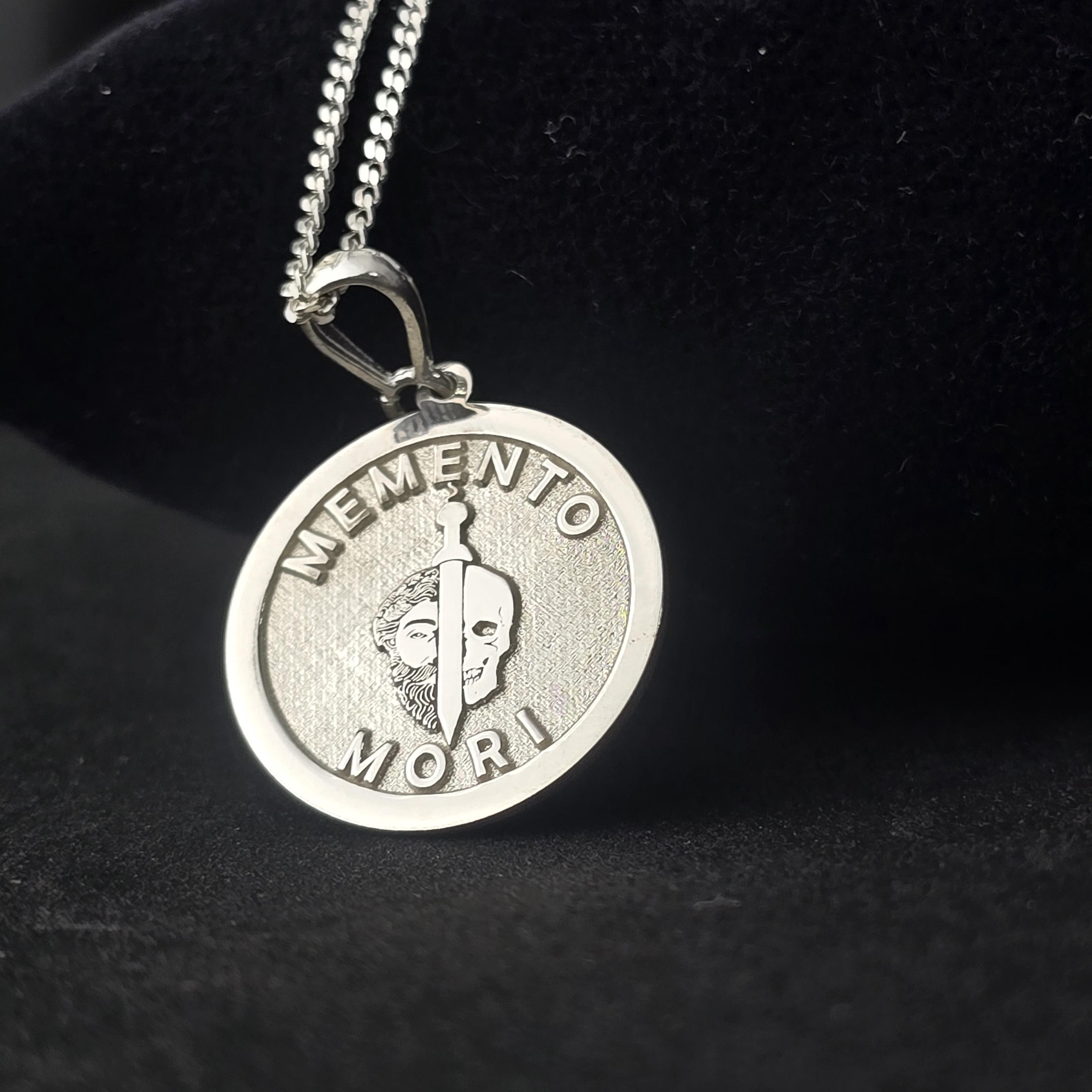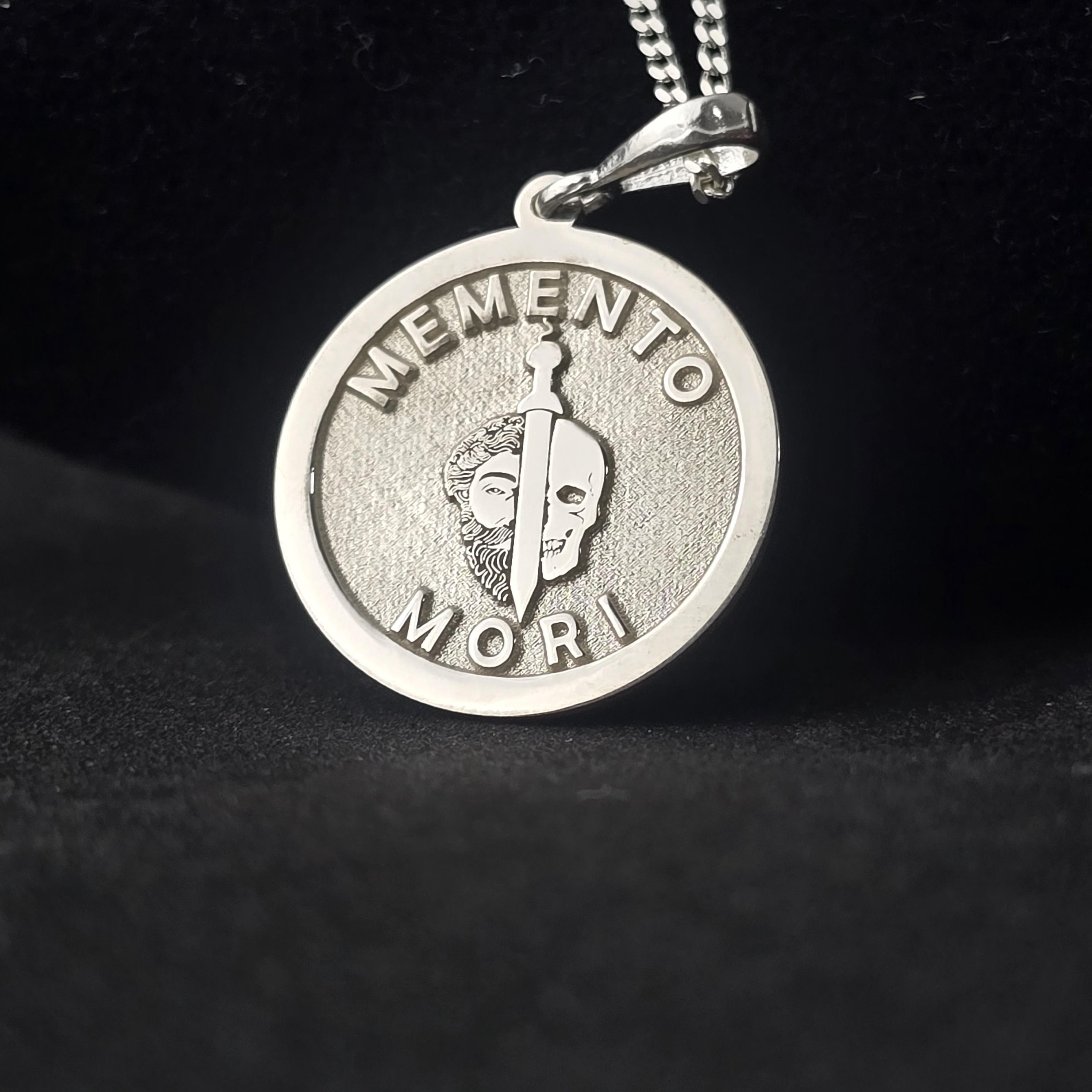 Personalized Memento Mori Skull Pendant: Stoic Amor Fati Silver Necklace
