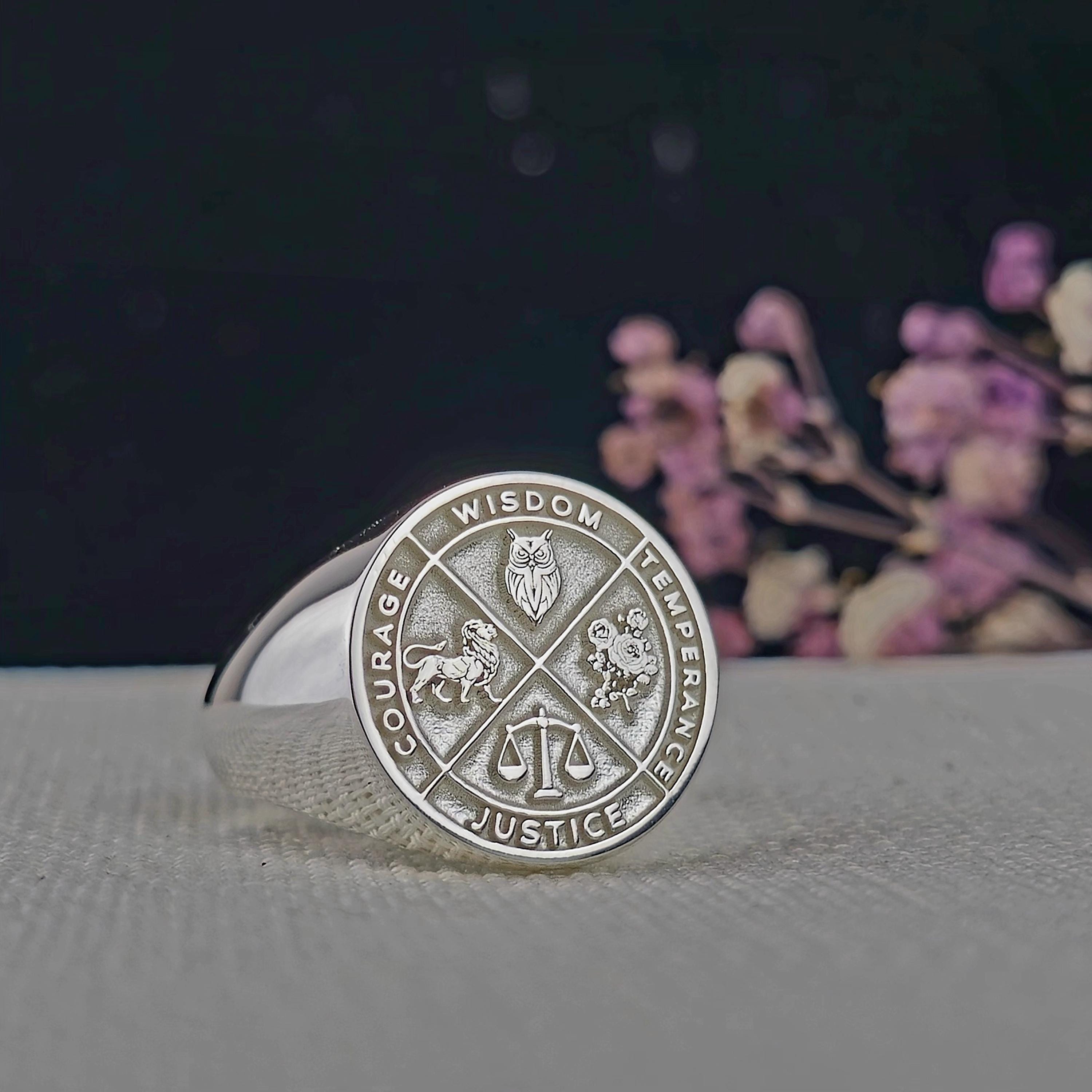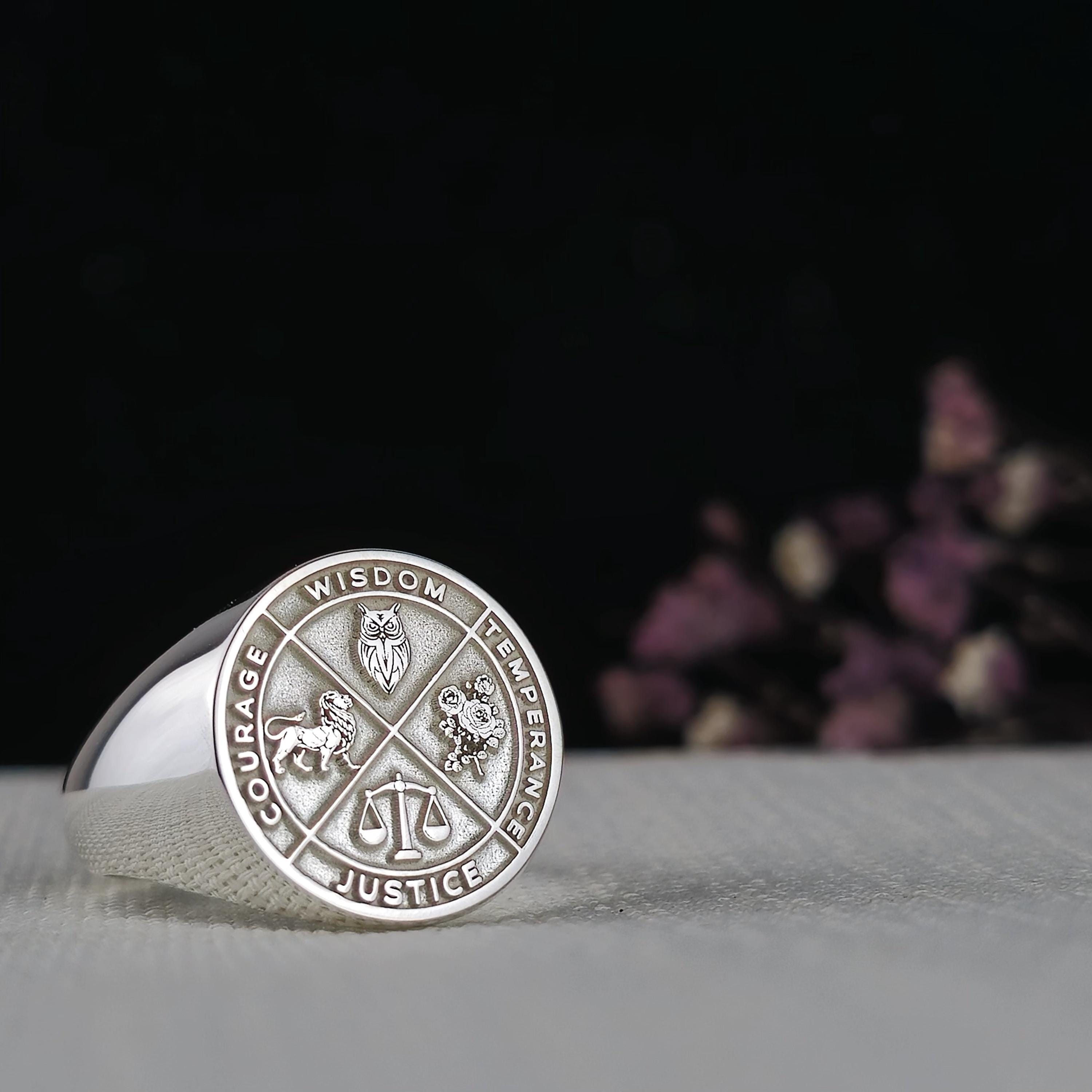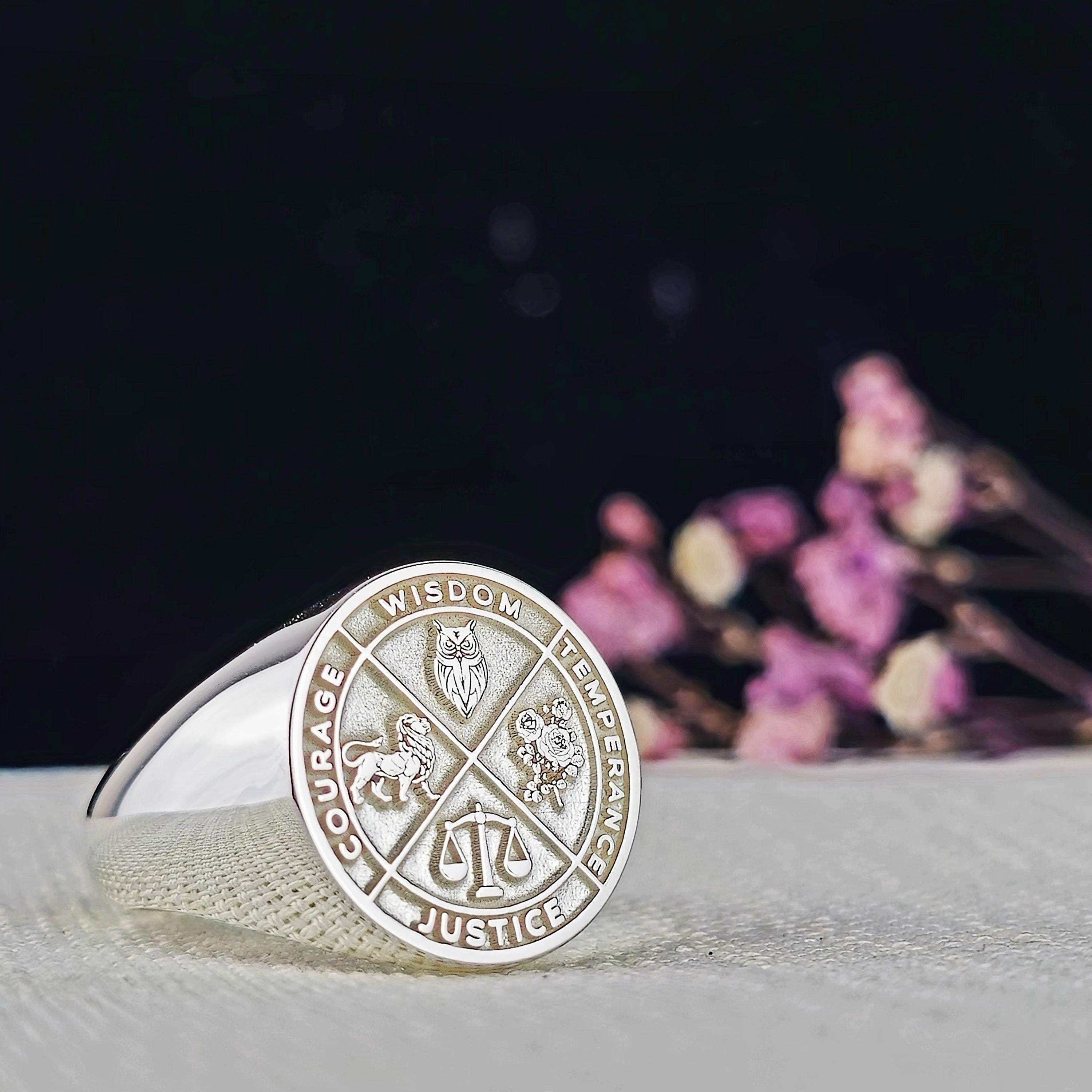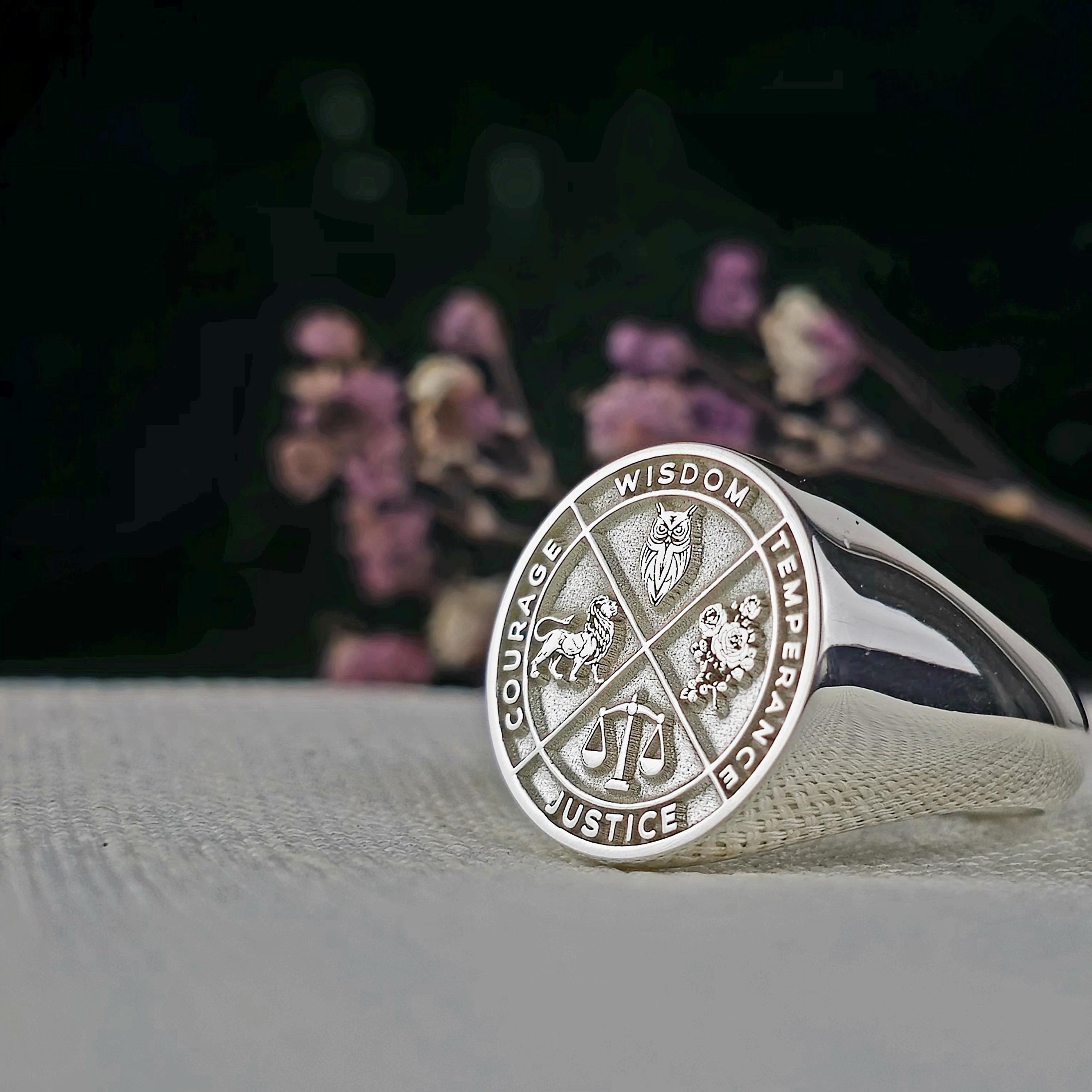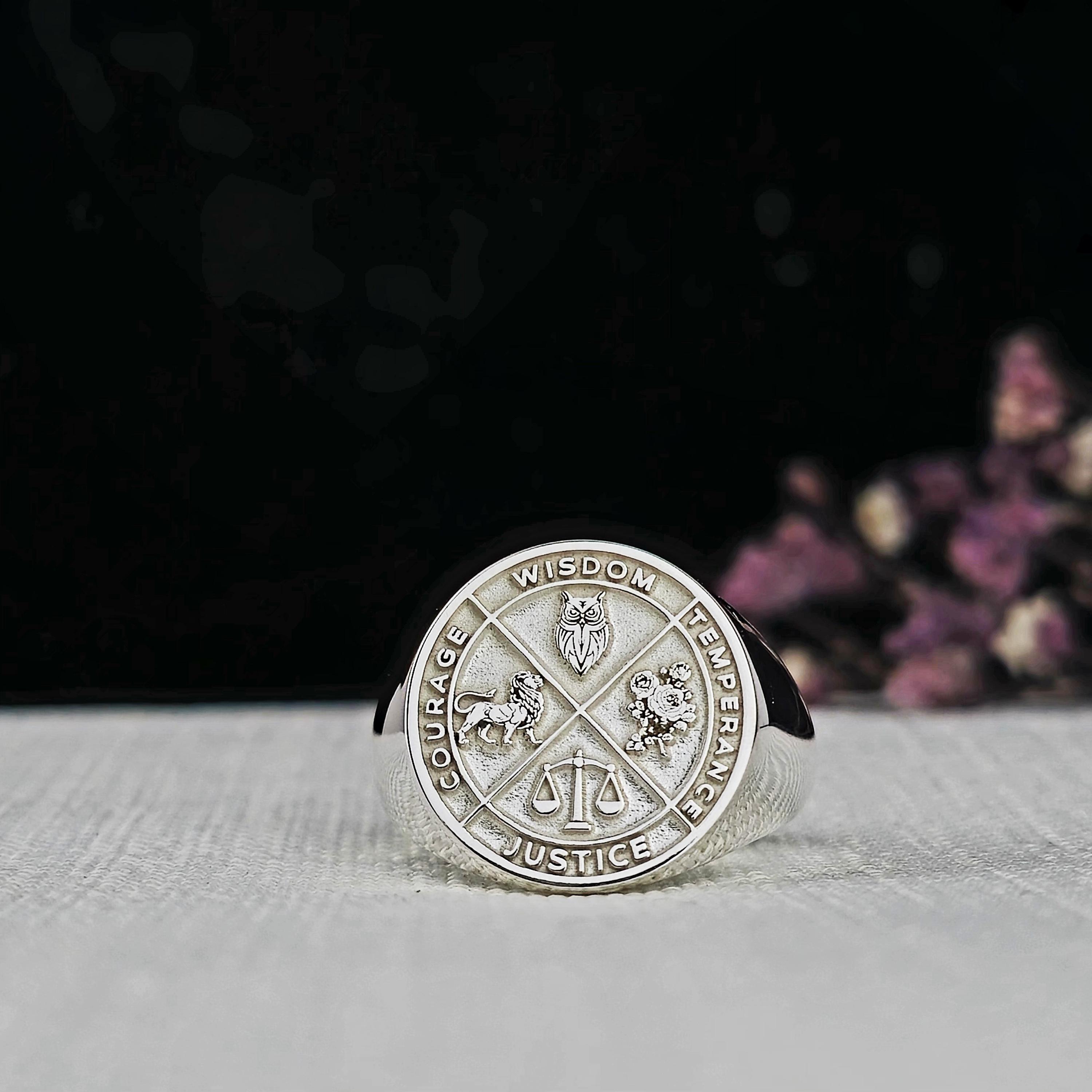 Virtue Sterling Silver Ring: Justice, Wisdom, Courage, Temperance