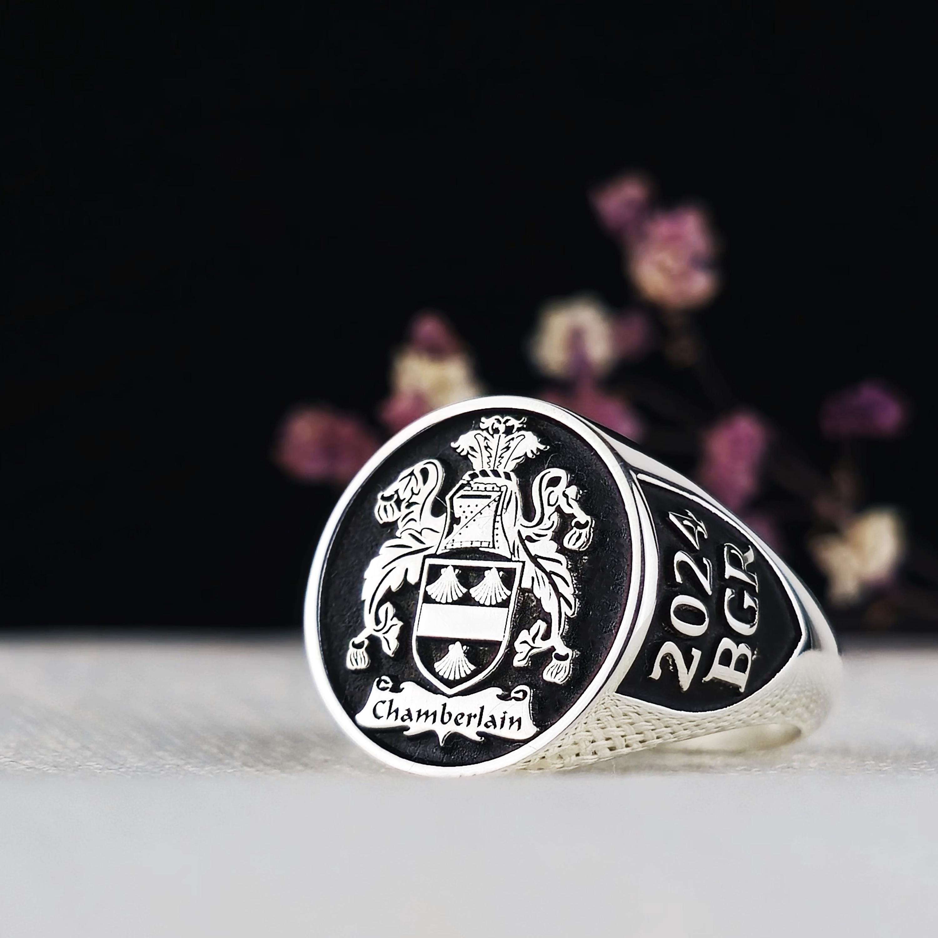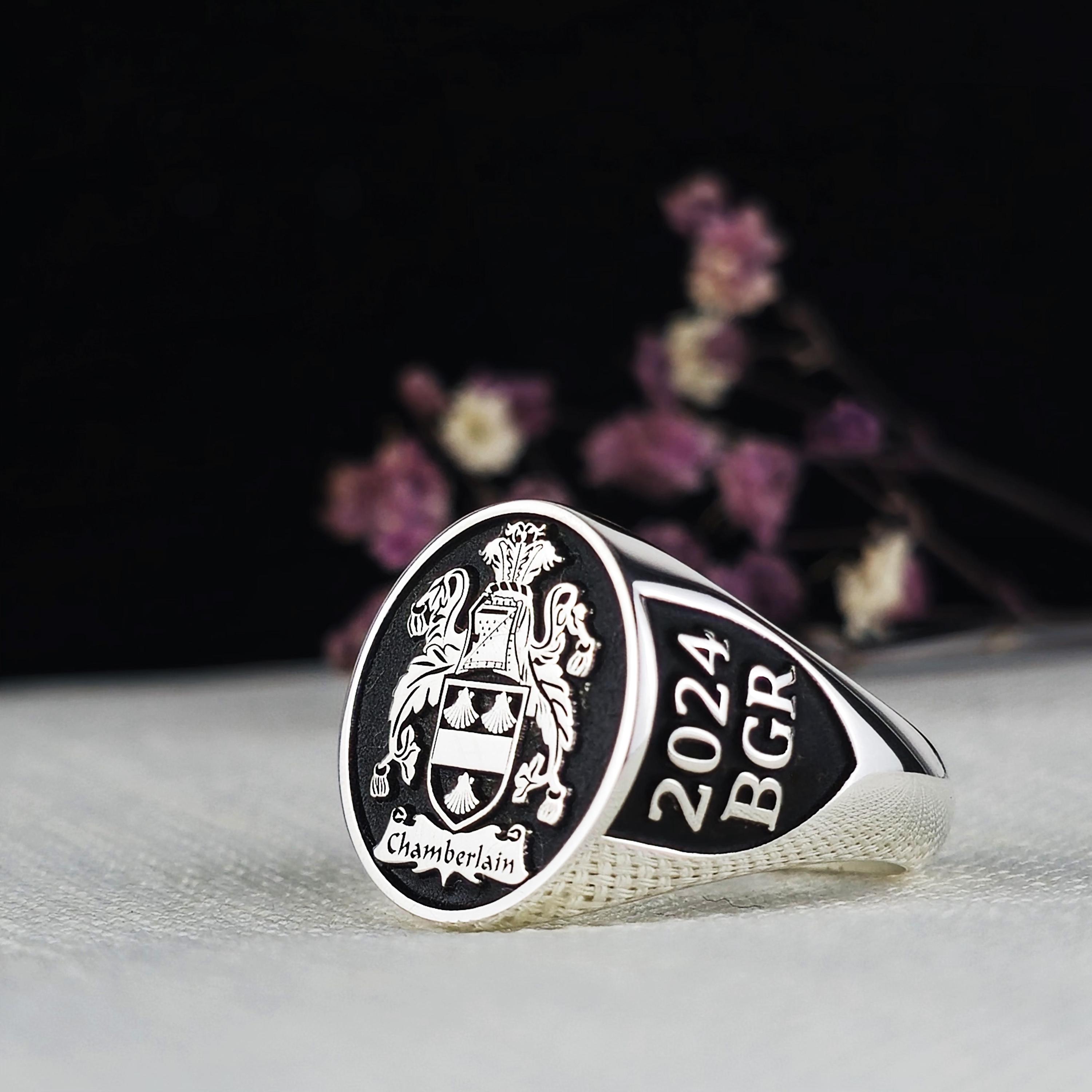 Custom Family Crest Ring: Personalized Sterling Silver & Gold