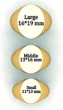 Face Dimensions: Small (11x13 mm), Middle (13x16 mm), Large (16x19 mm)