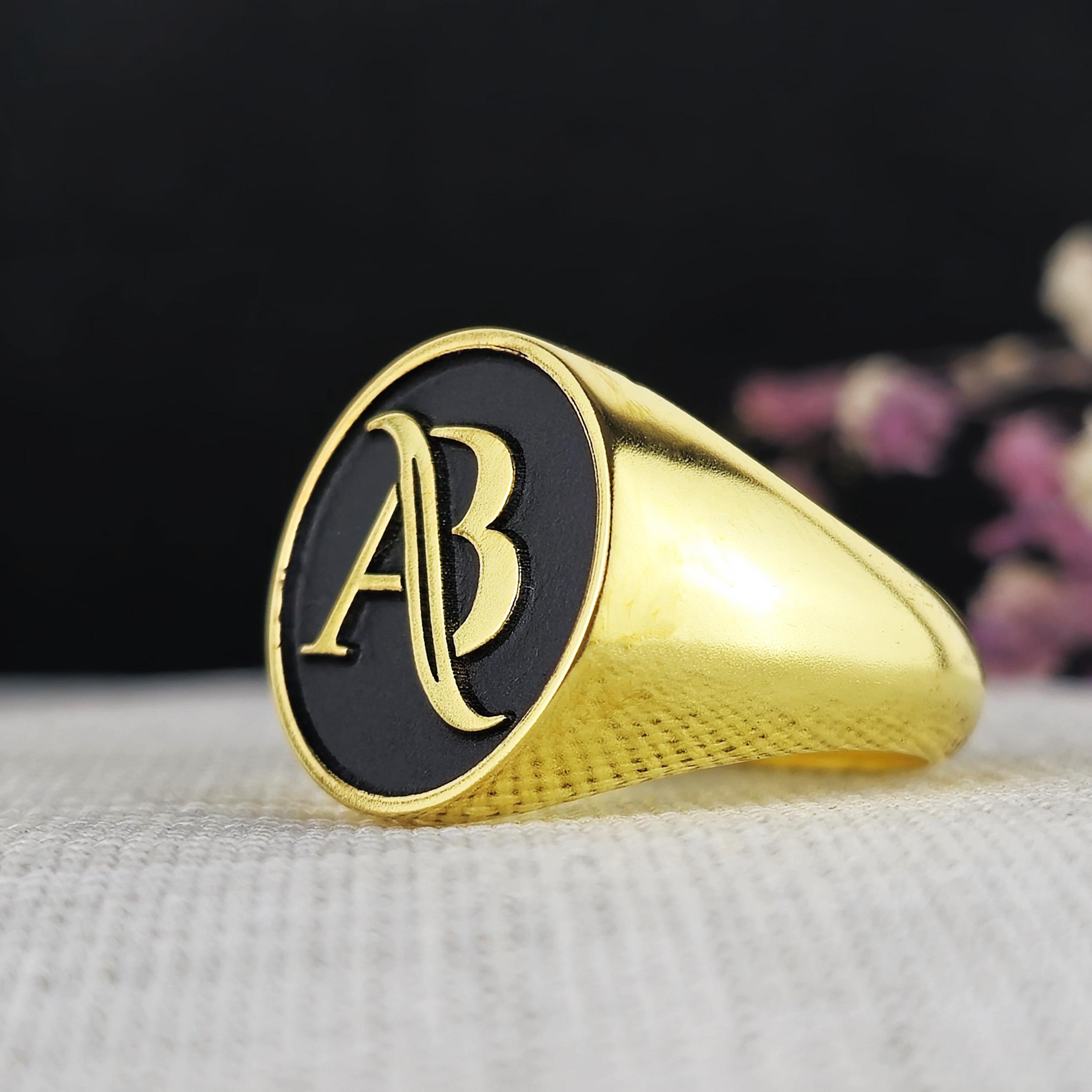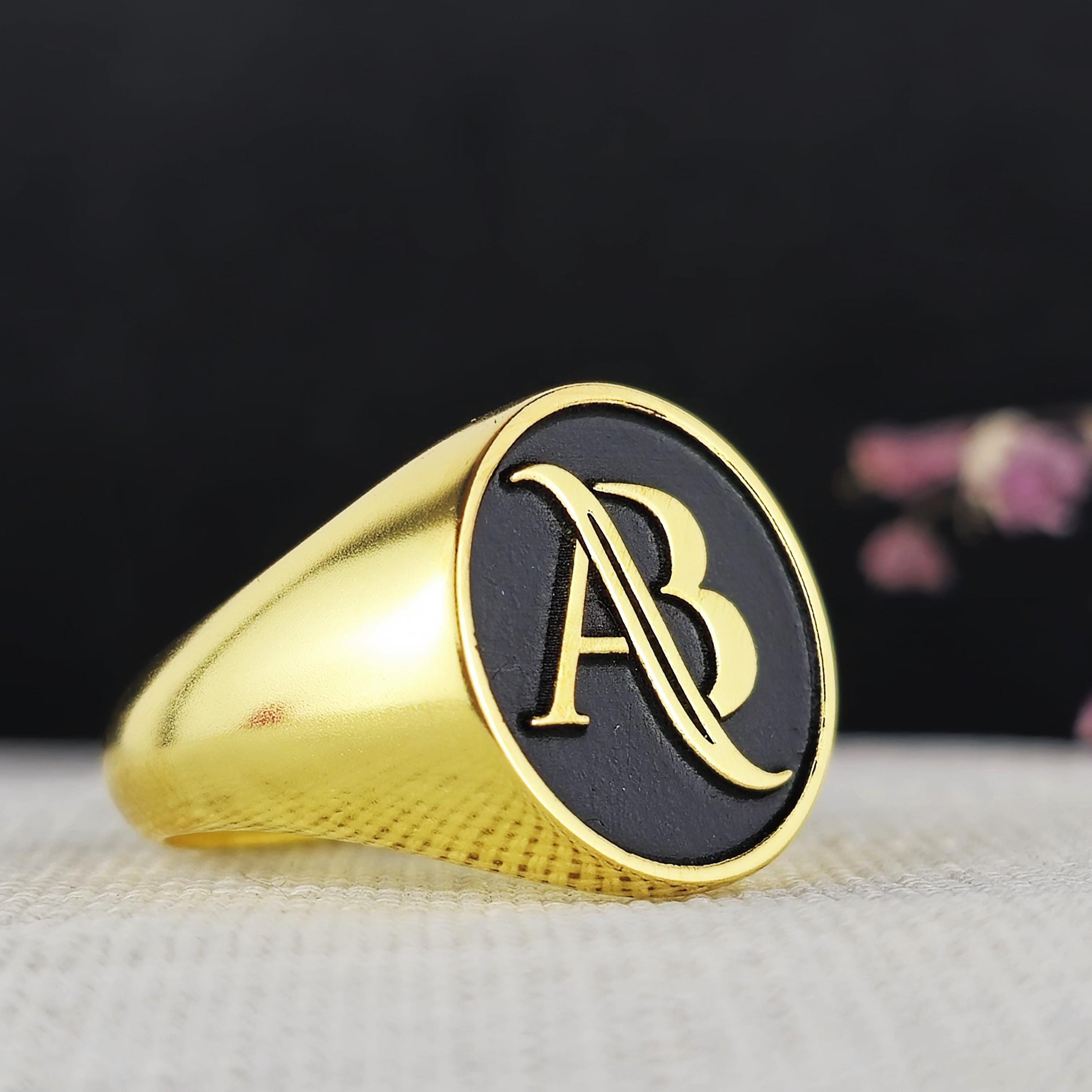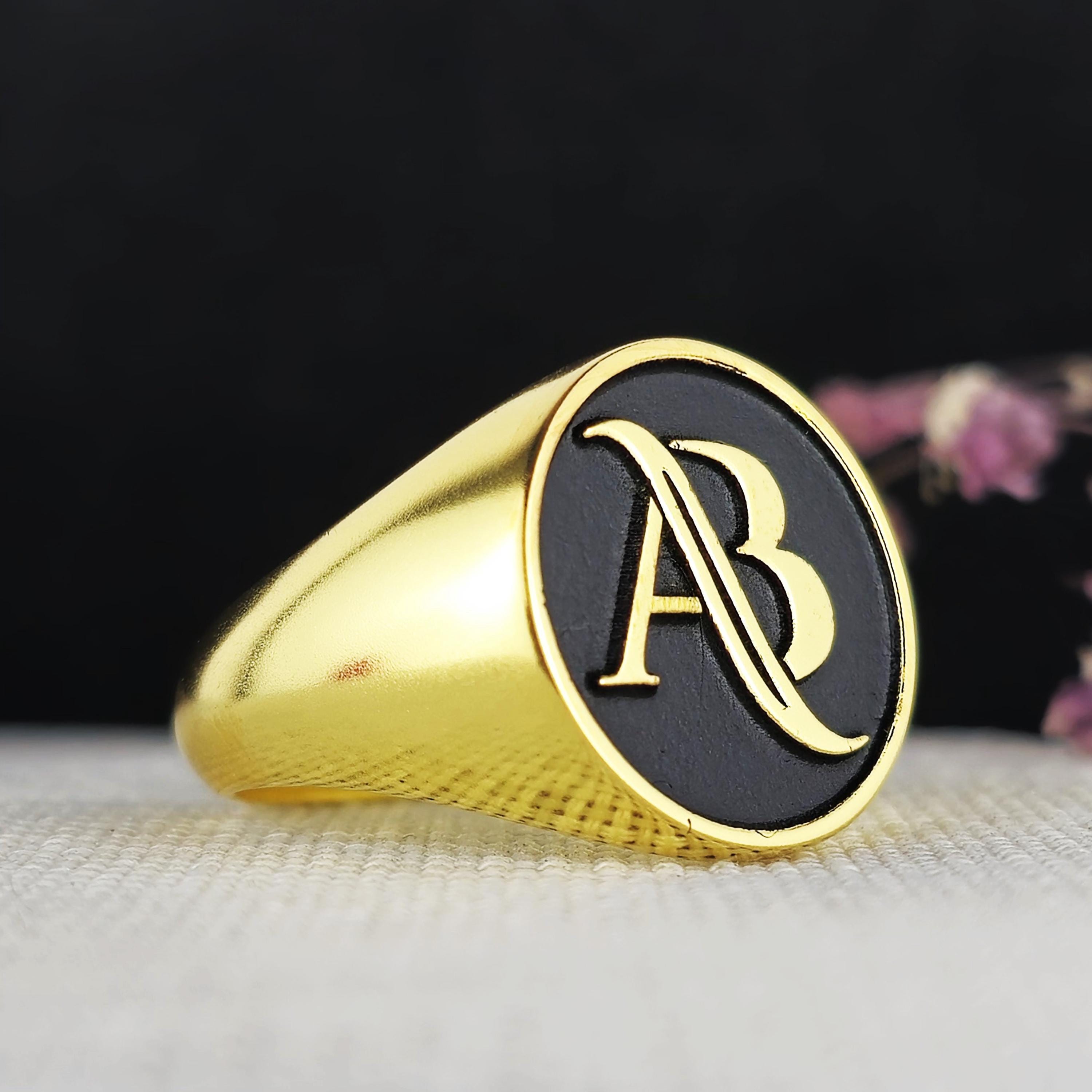 Personalized Gold-Plated Monogram Ring | Elegant Black and Gold Initial Signet Ring