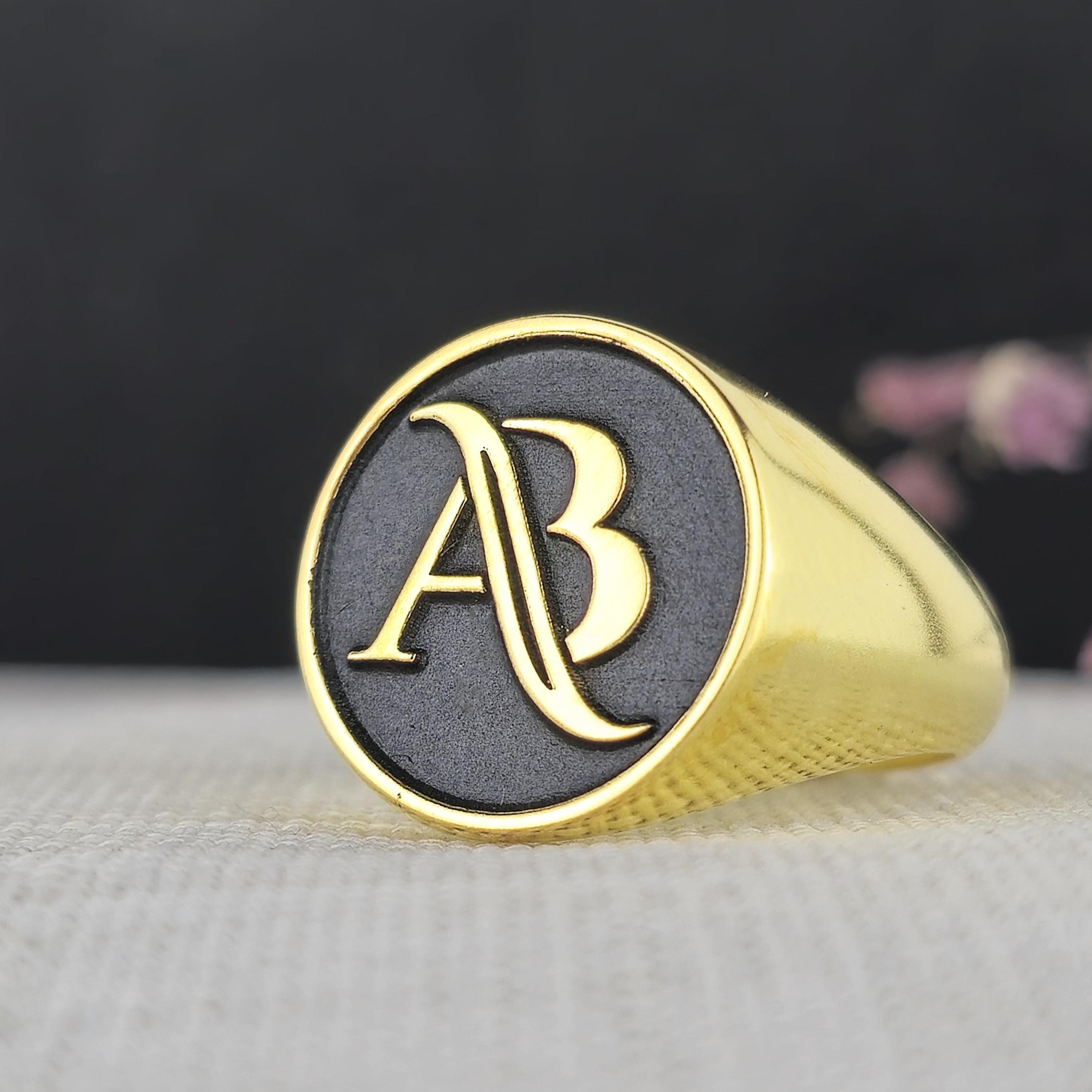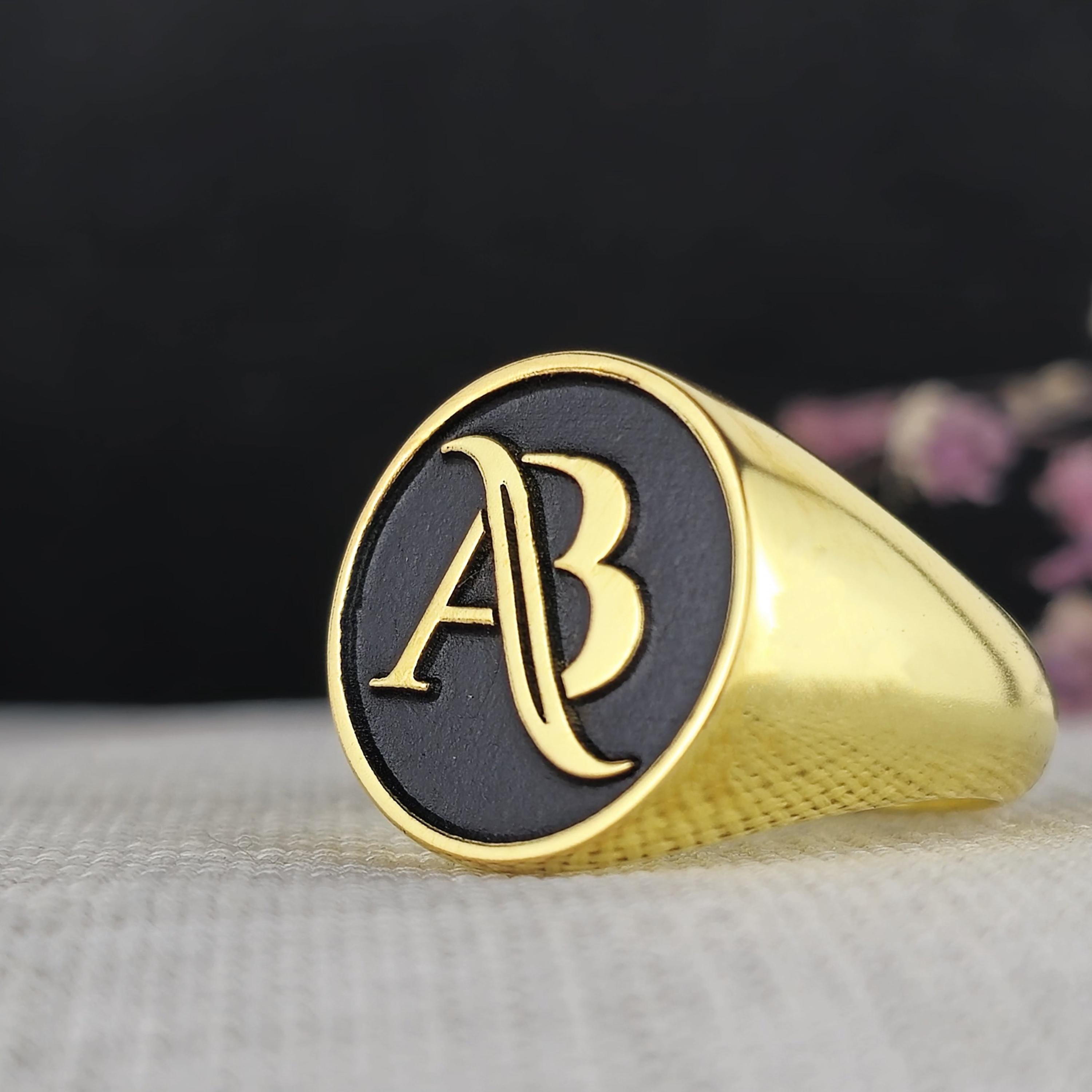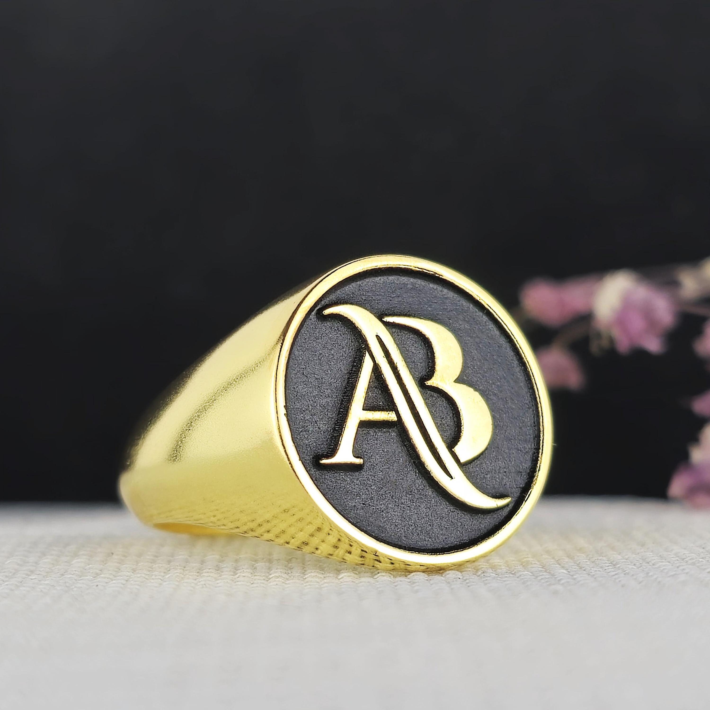 Personalized Gold-Plated Monogram Ring | Elegant Black and Gold Initial Signet Ring