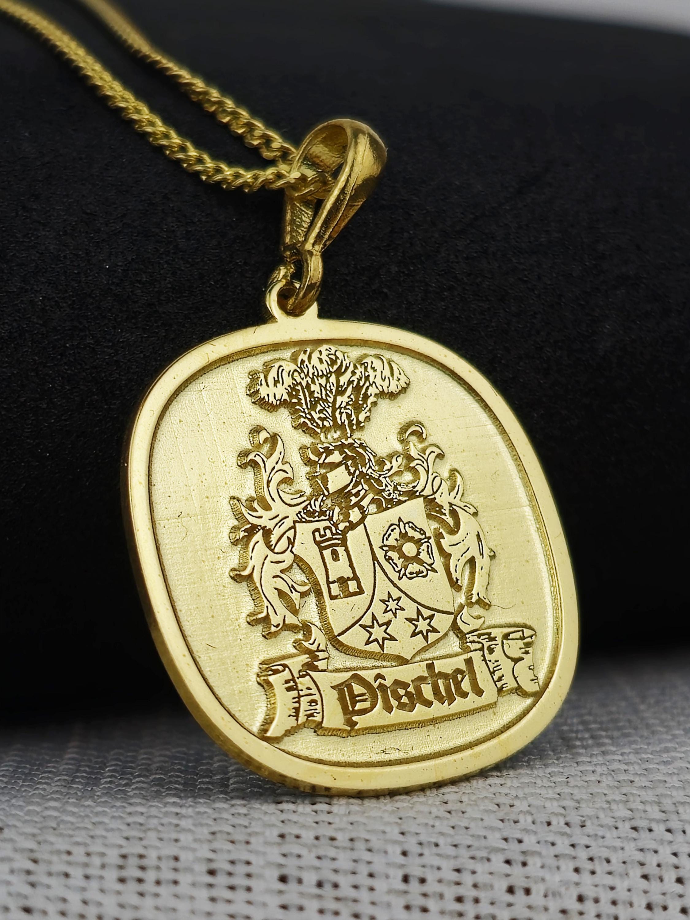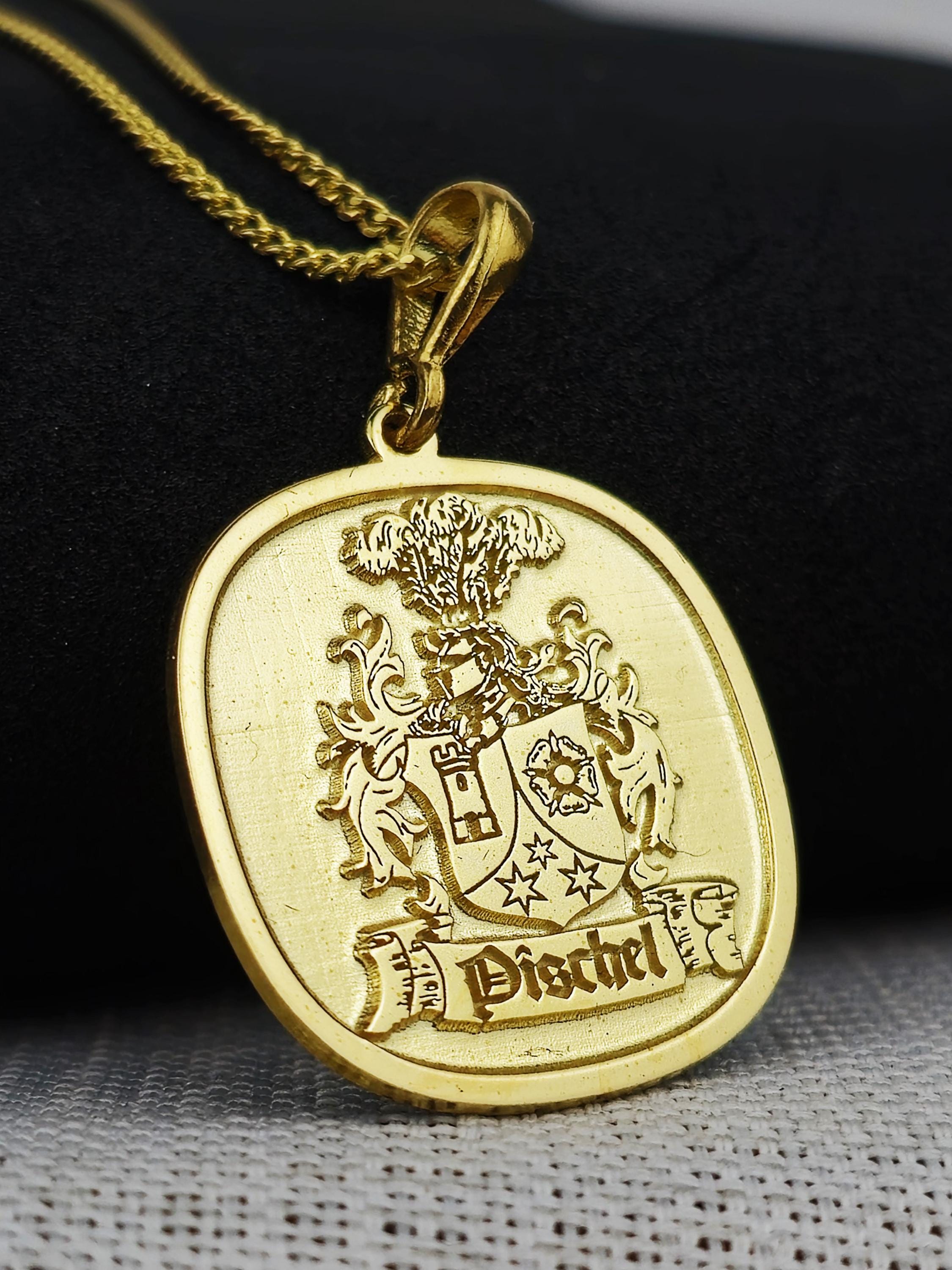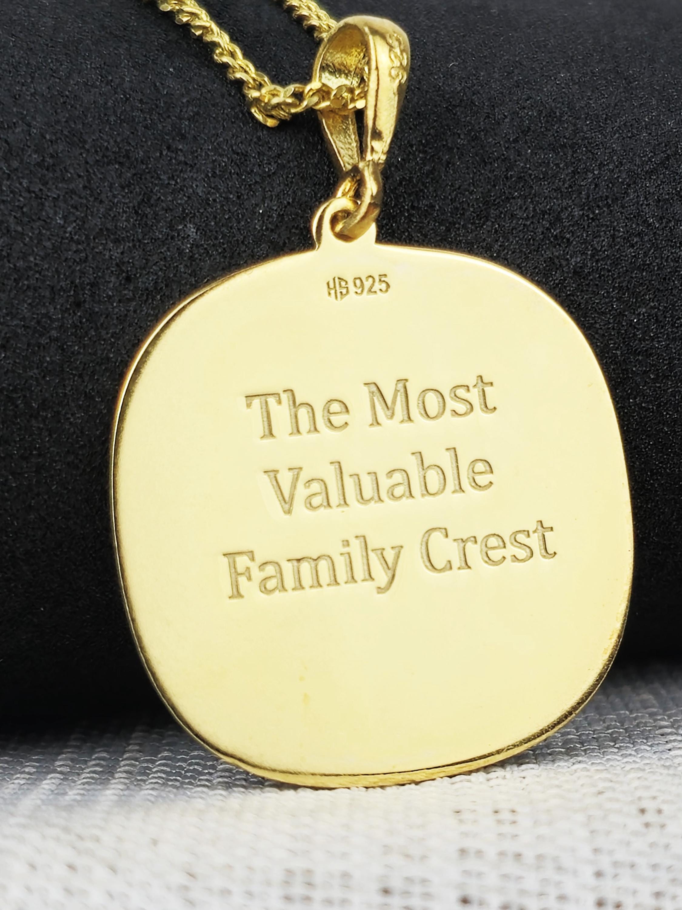 A Timeless Heirloom: This gold-plated family crest necklace is more than just a piece of jewelry—it's an heirloom meant to be treasured for generations. Whether for yourself or as a heartfelt gift, this pendant is a beautiful way to carry your family’s legacy and story close to your heart.