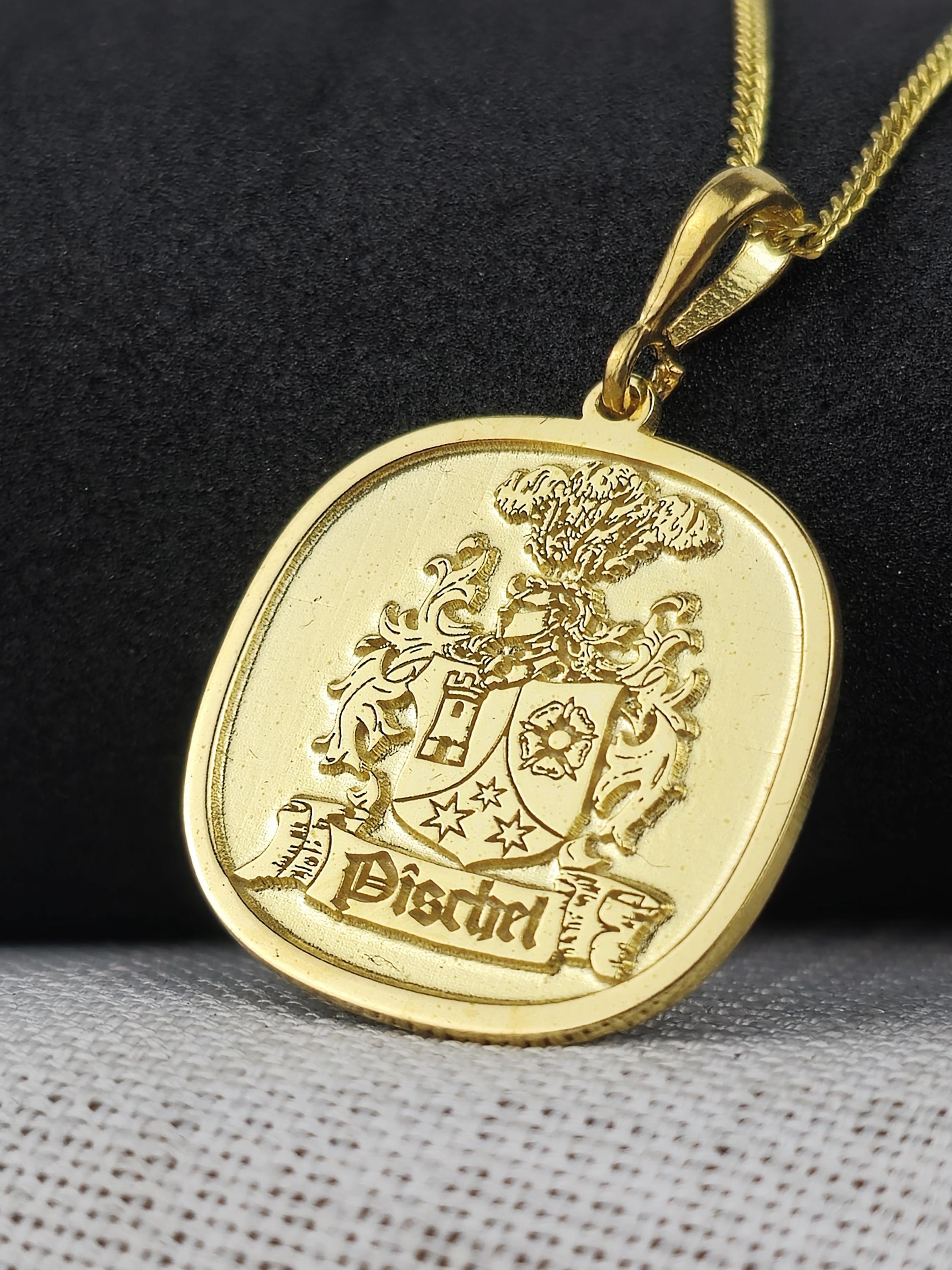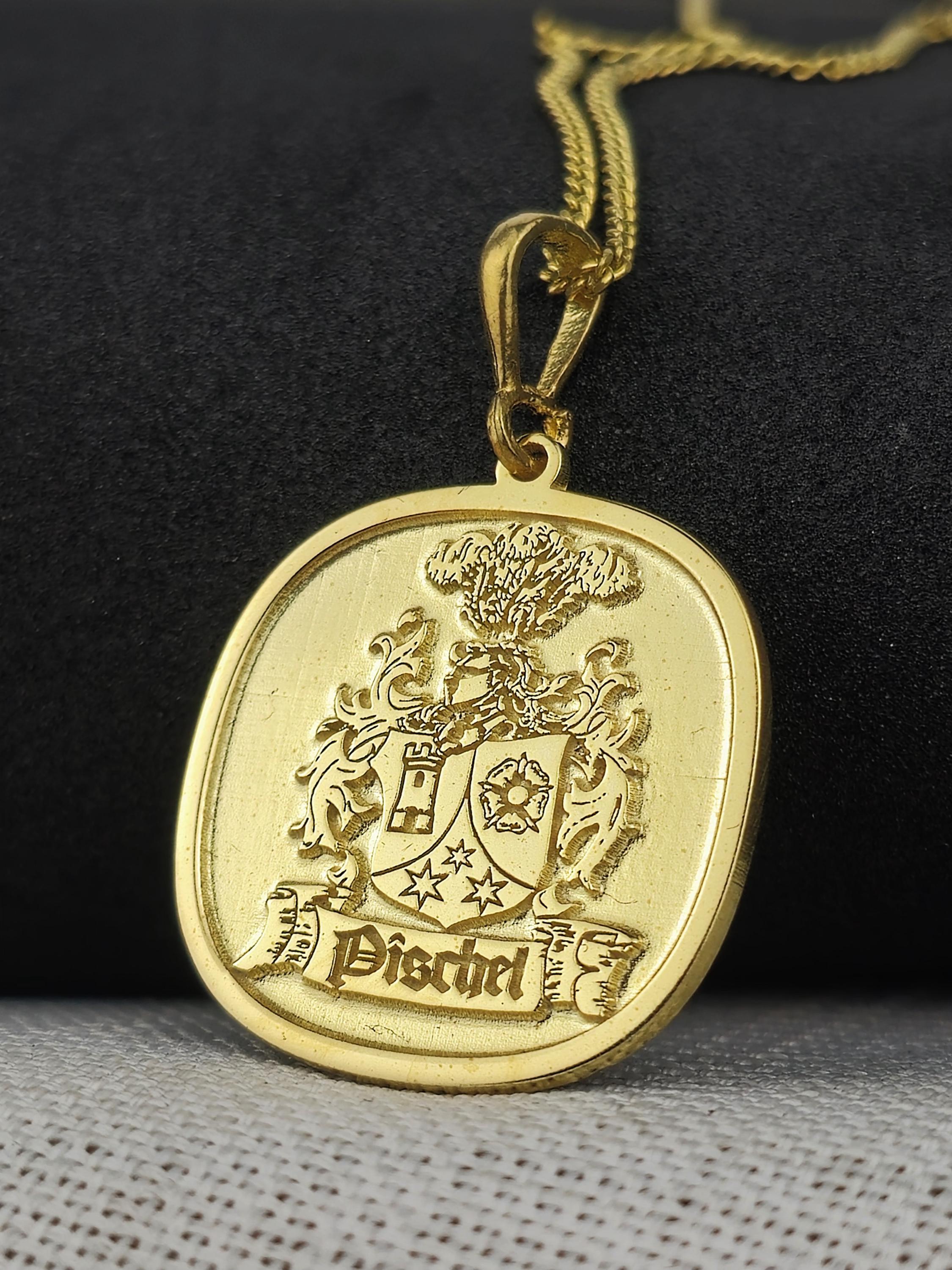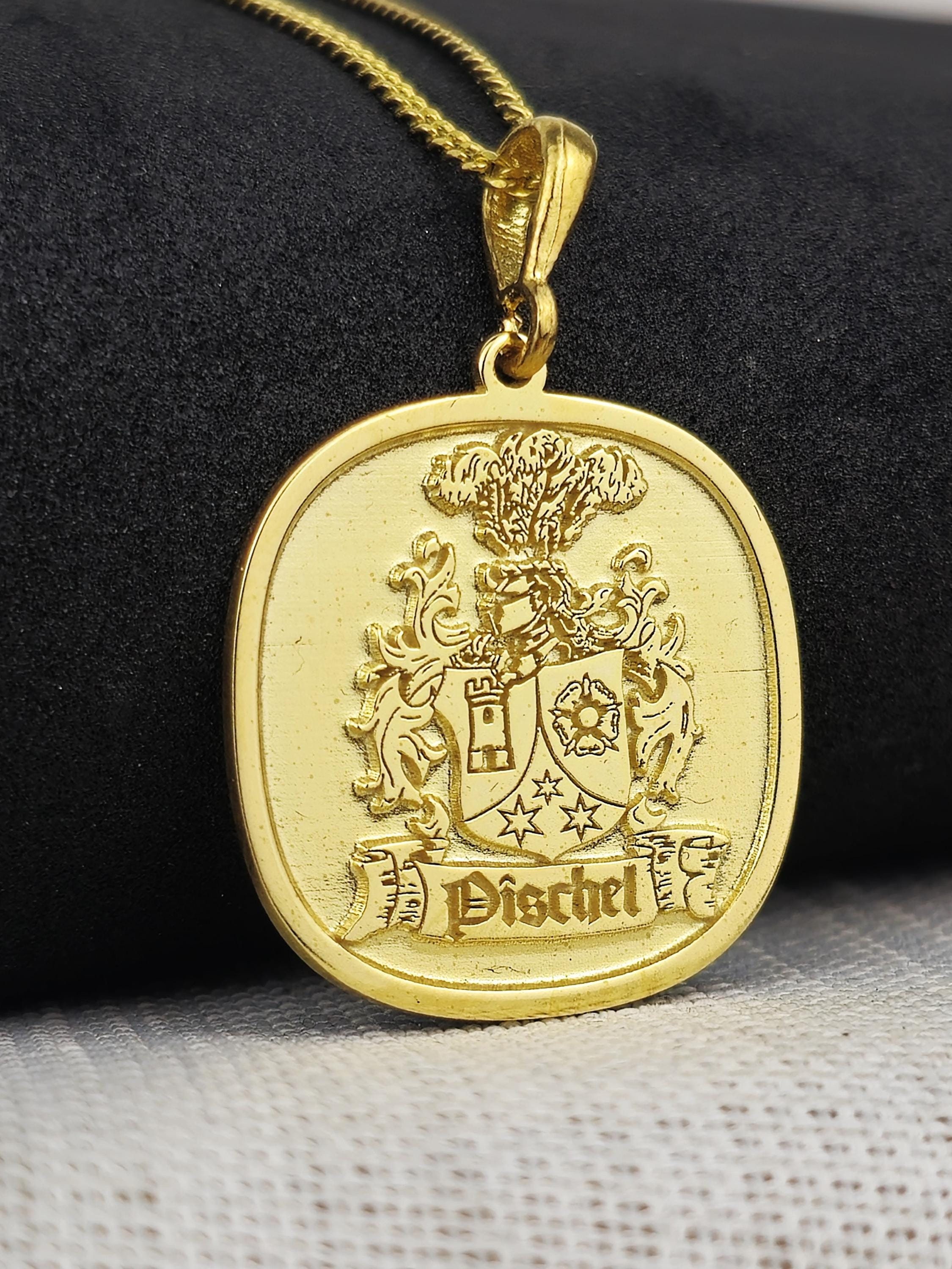A Timeless Heirloom: This gold-plated family crest necklace is more than just a piece of jewelry—it's an heirloom meant to be treasured for generations. Whether for yourself or as a heartfelt gift, this pendant is a beautiful way to carry your family’s legacy and story close to your heart.