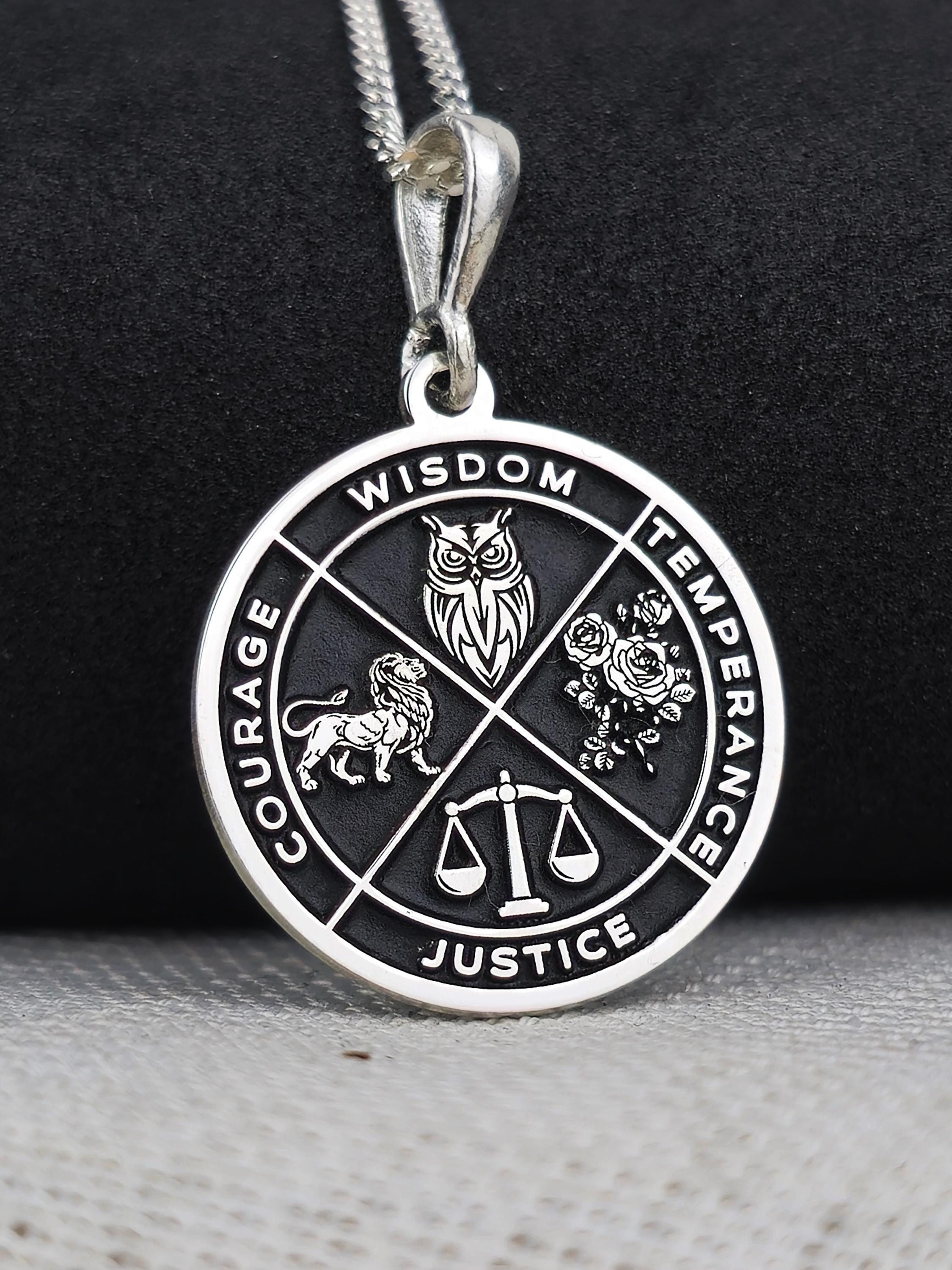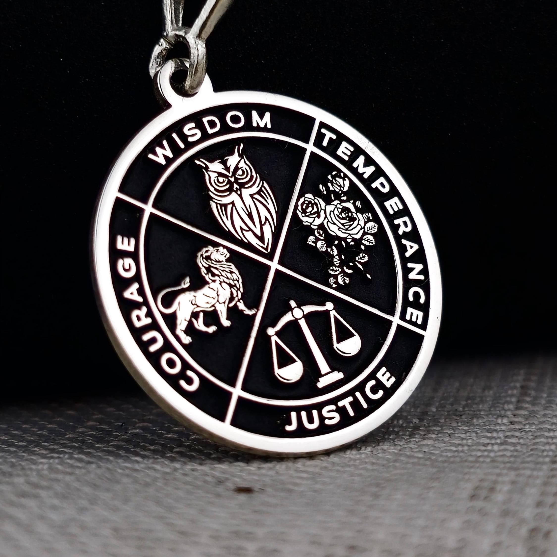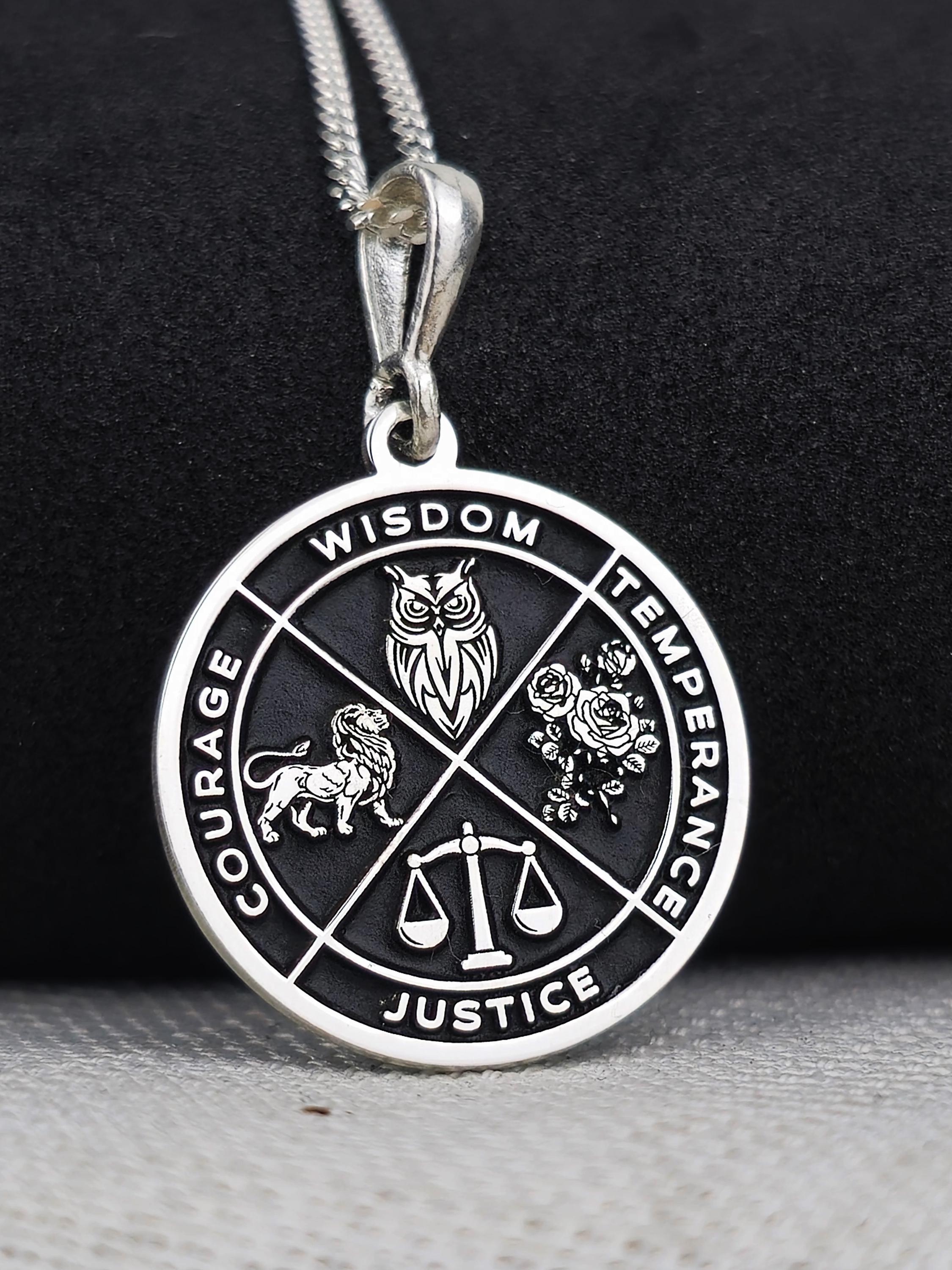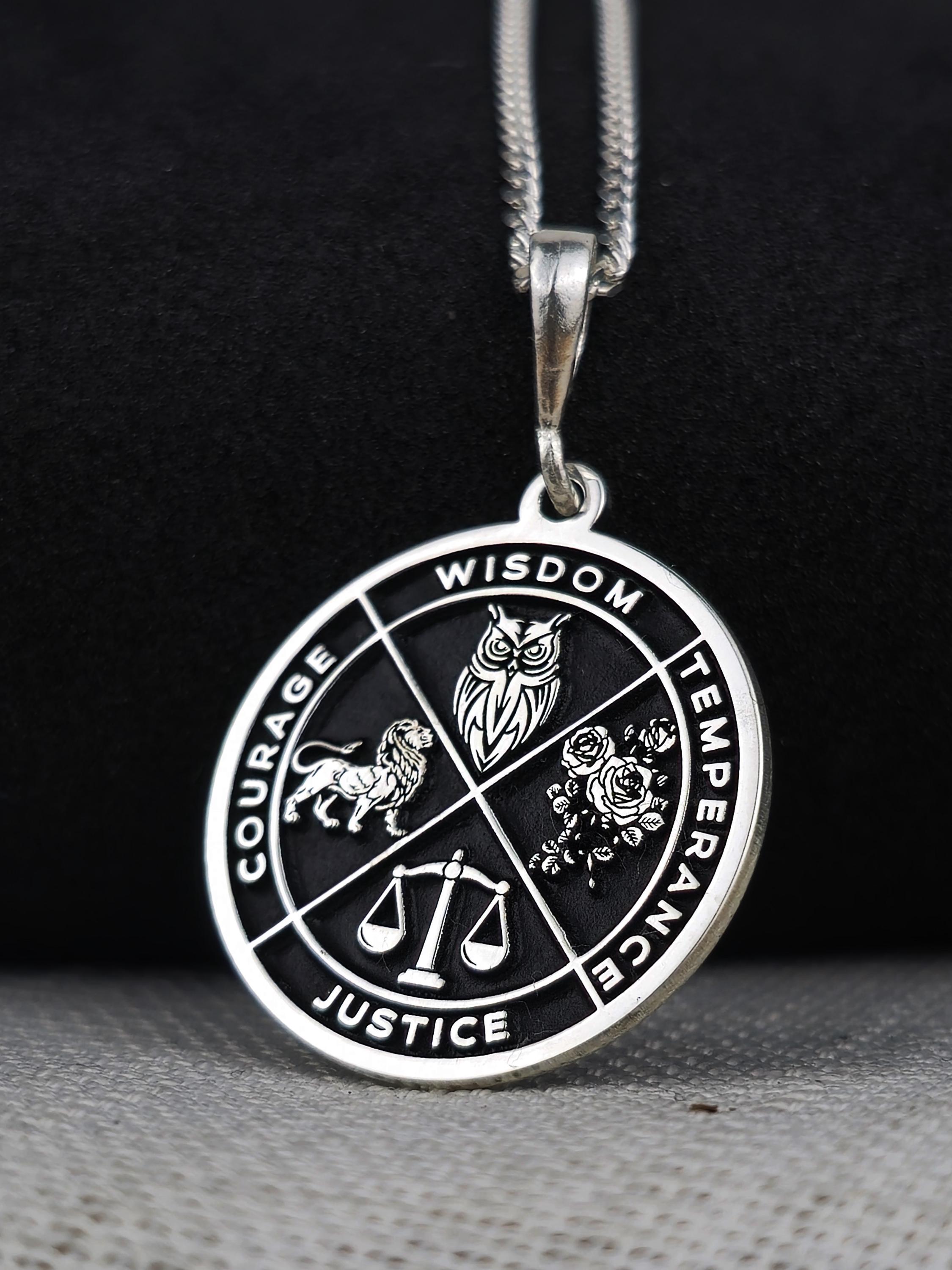 Virtue Symbol Necklace: Wisdom, Courage, Justice, Temperance