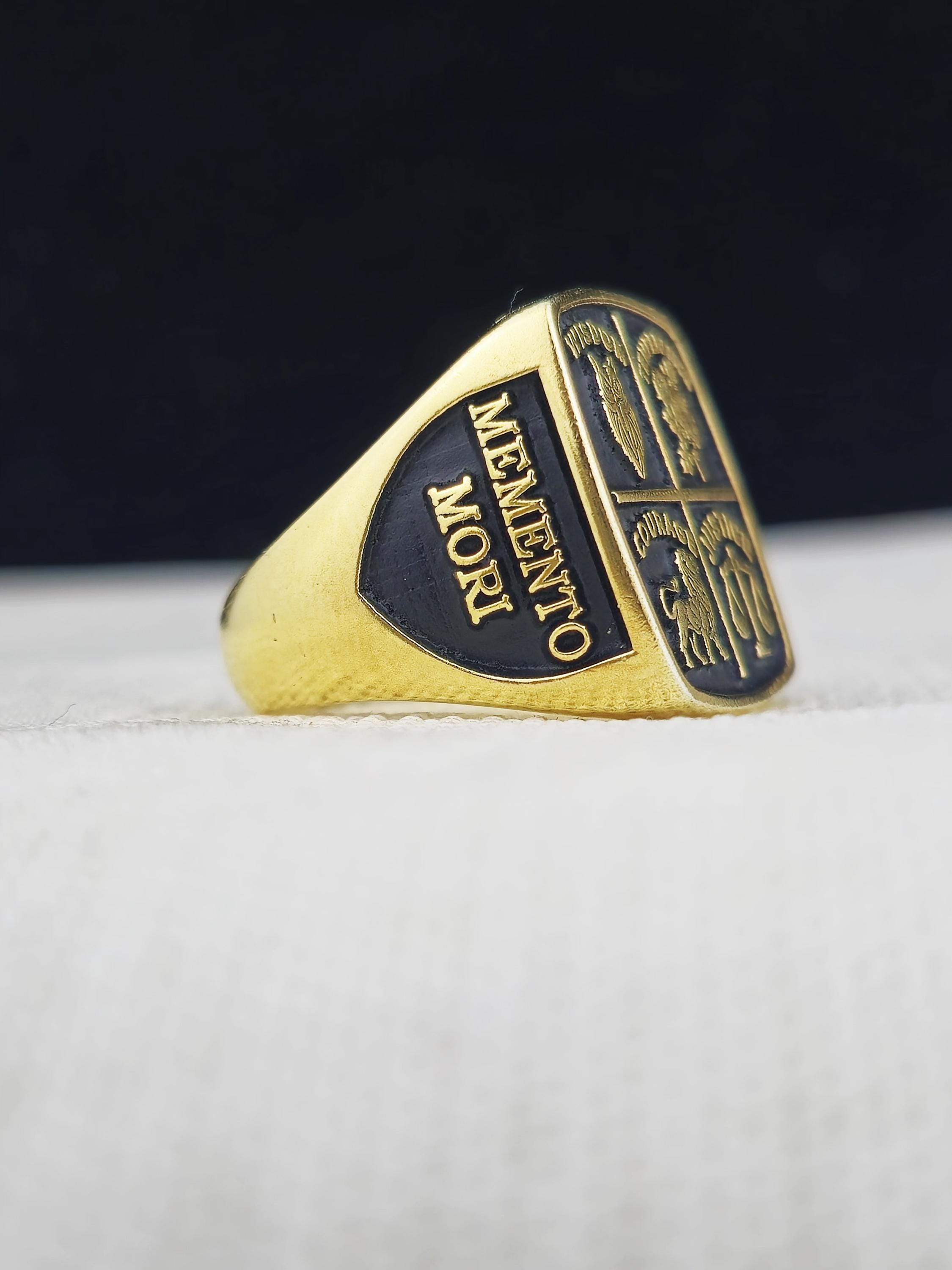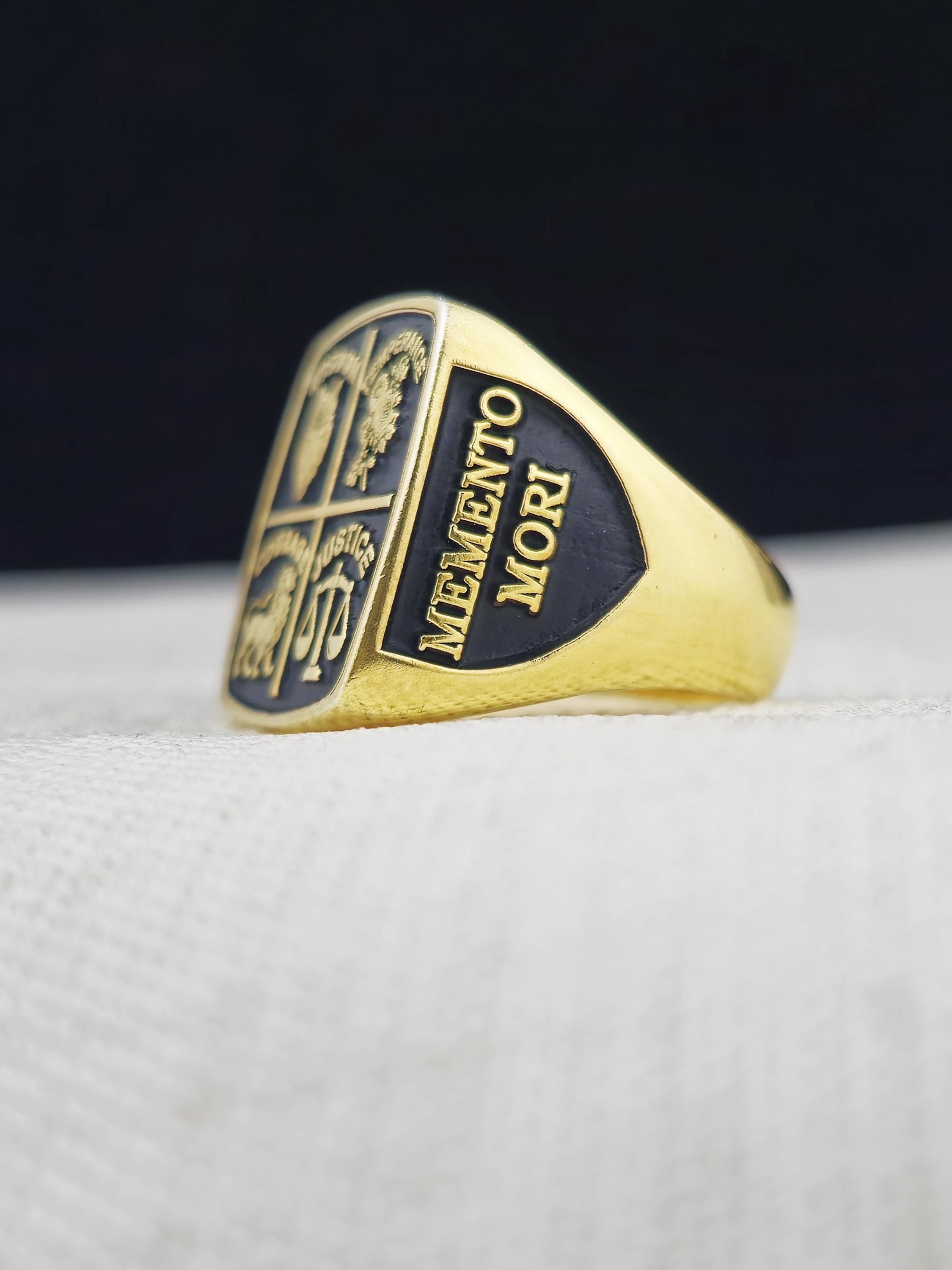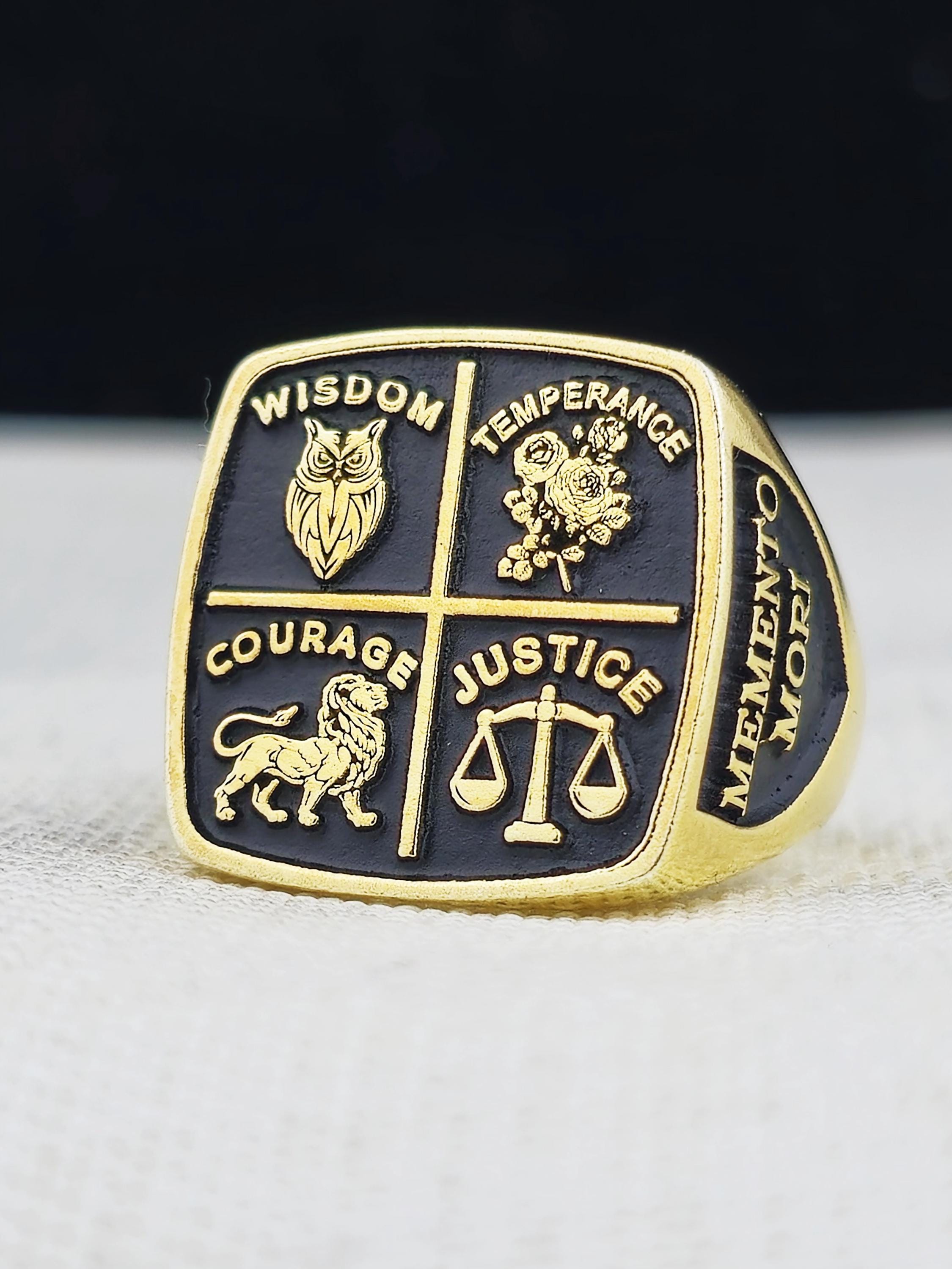 This stunning gold-plated wisdom-themed signet ring is a powerful statement piece that blends timeless symbols with modern craftsmanship. Inspired by the virtues of Wisdom, Justice, Courage, and Temperance, this ring is perfect for those who cherish meaning in their accessories.
