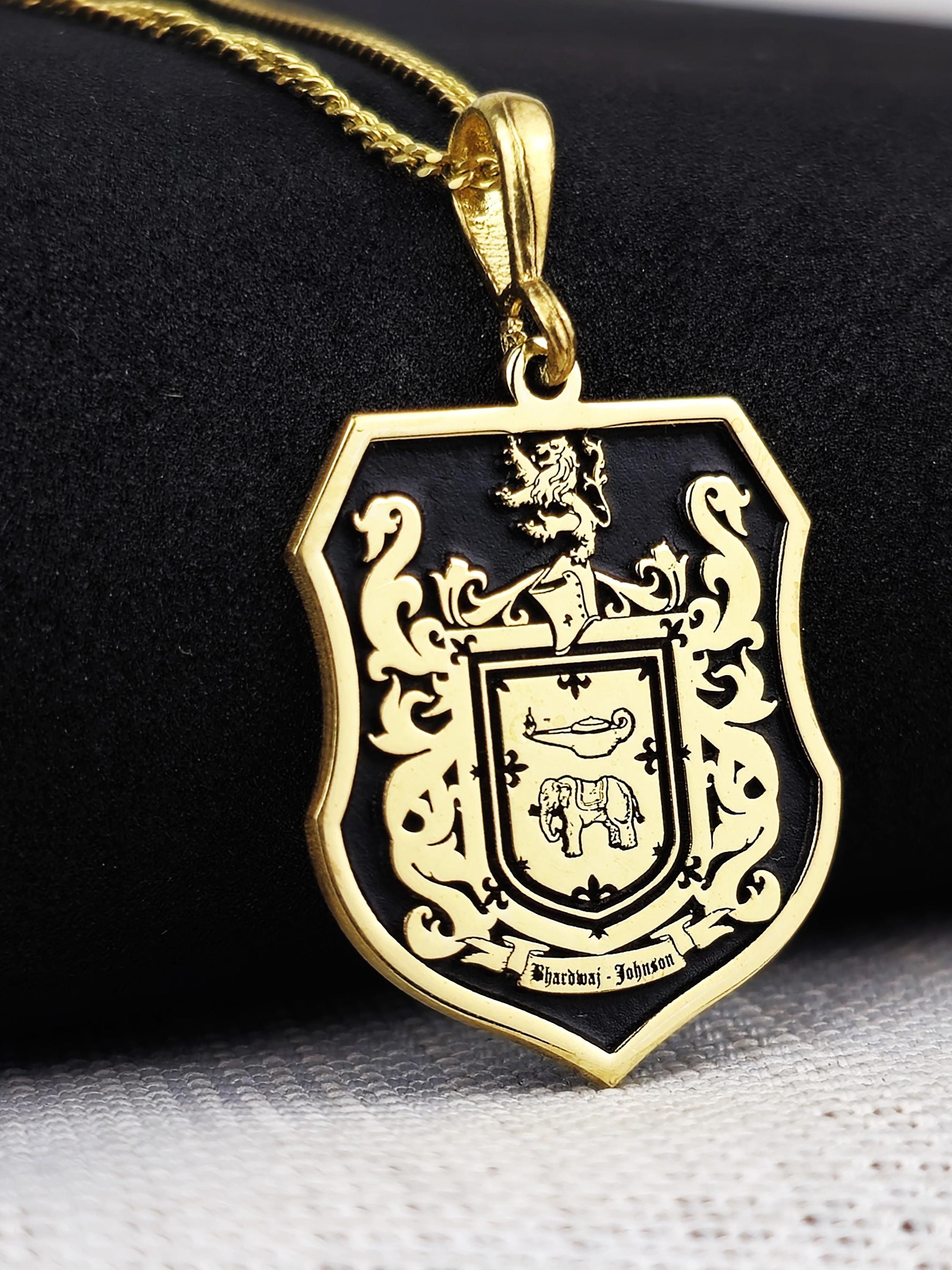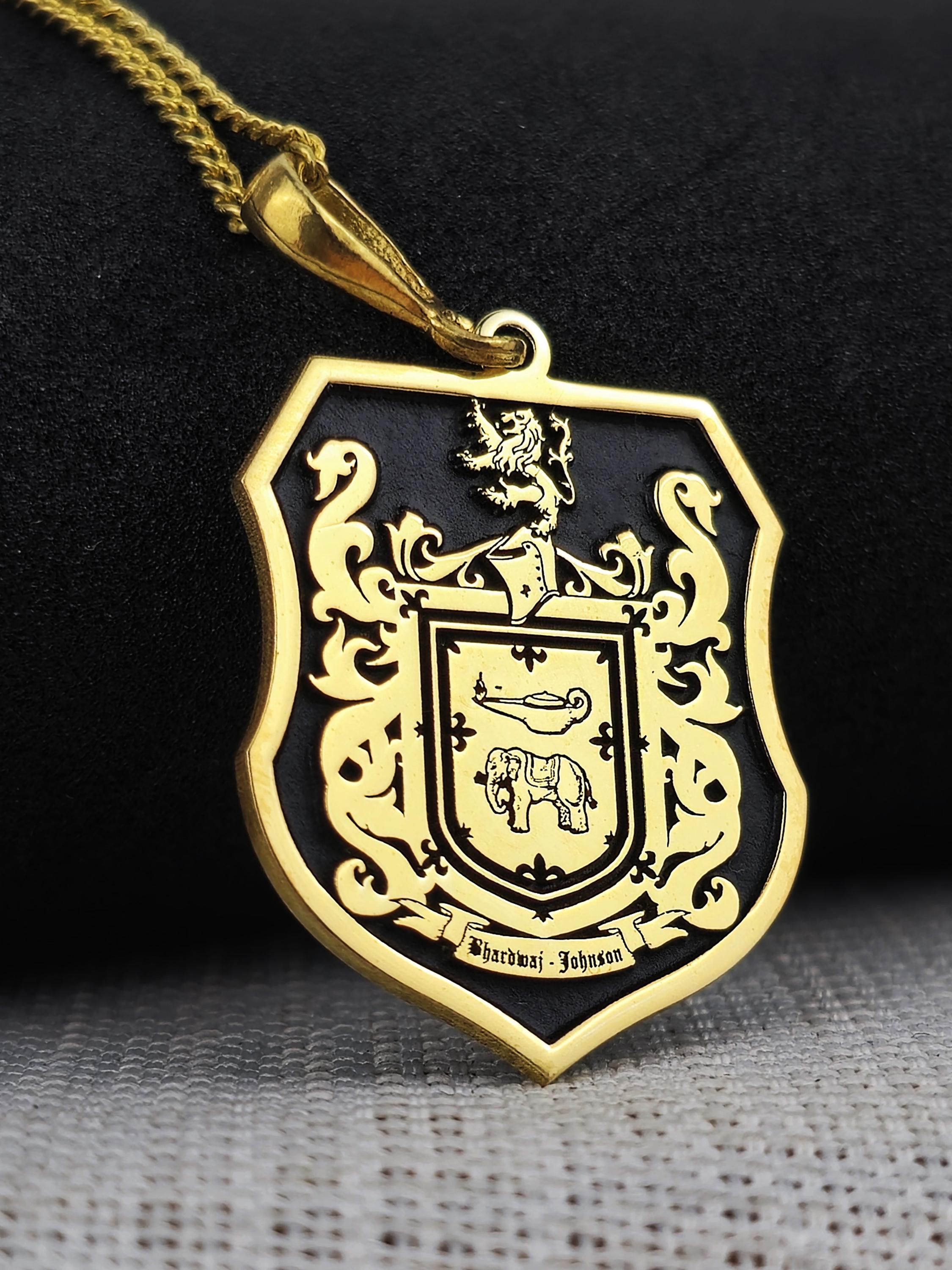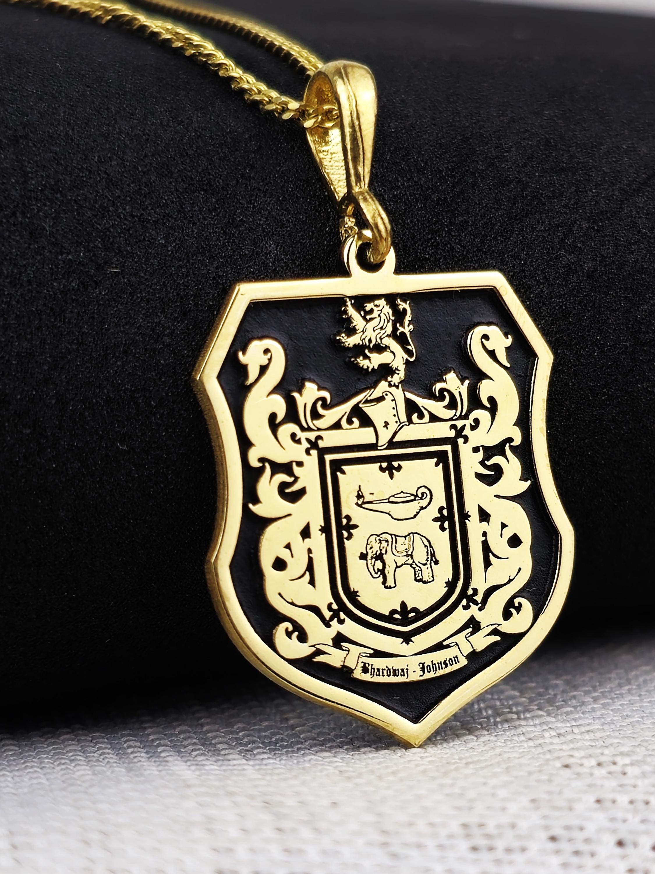 Custom Family Crest Pendant - Gold Shield Necklace for Special Occasions"