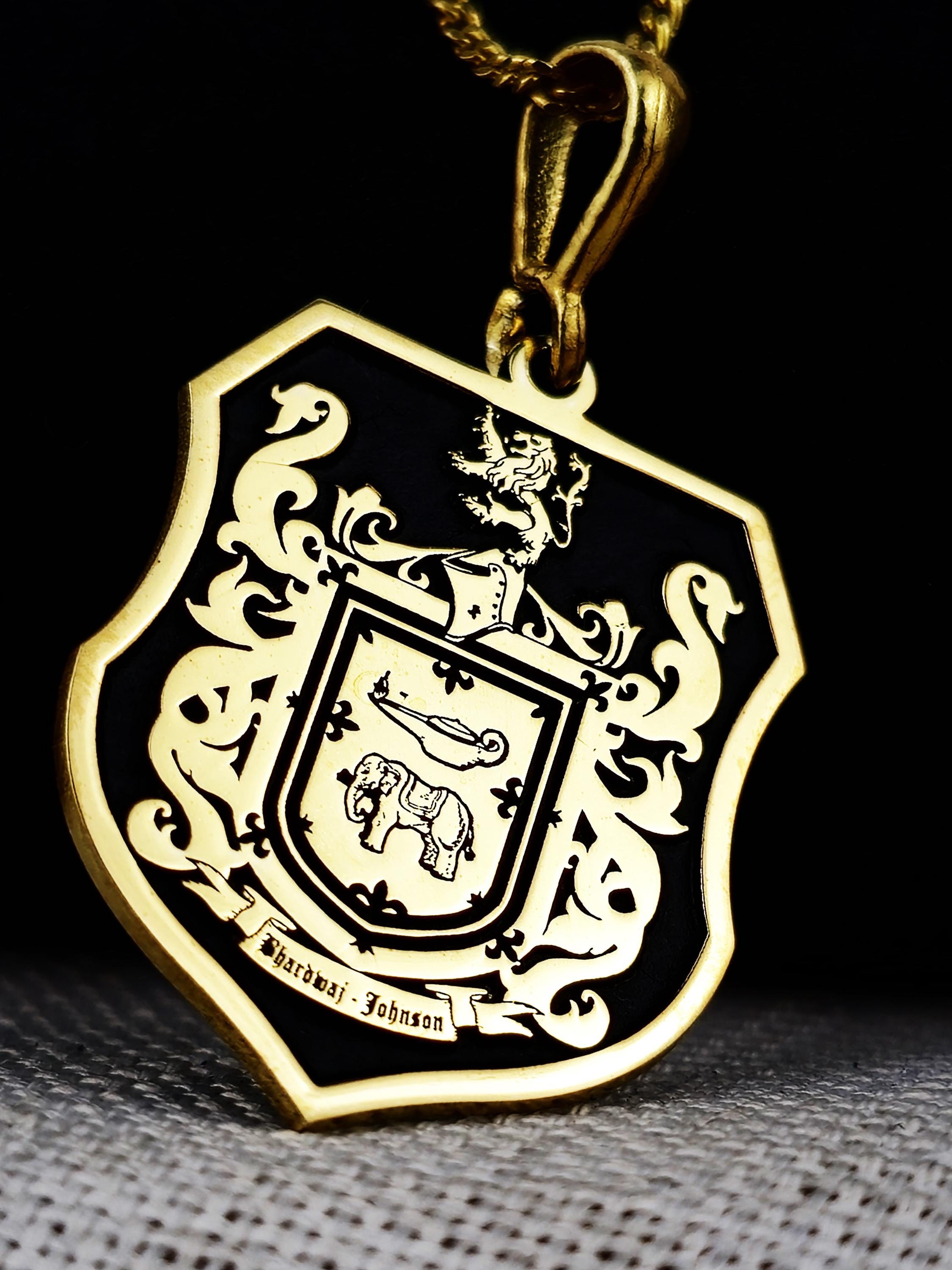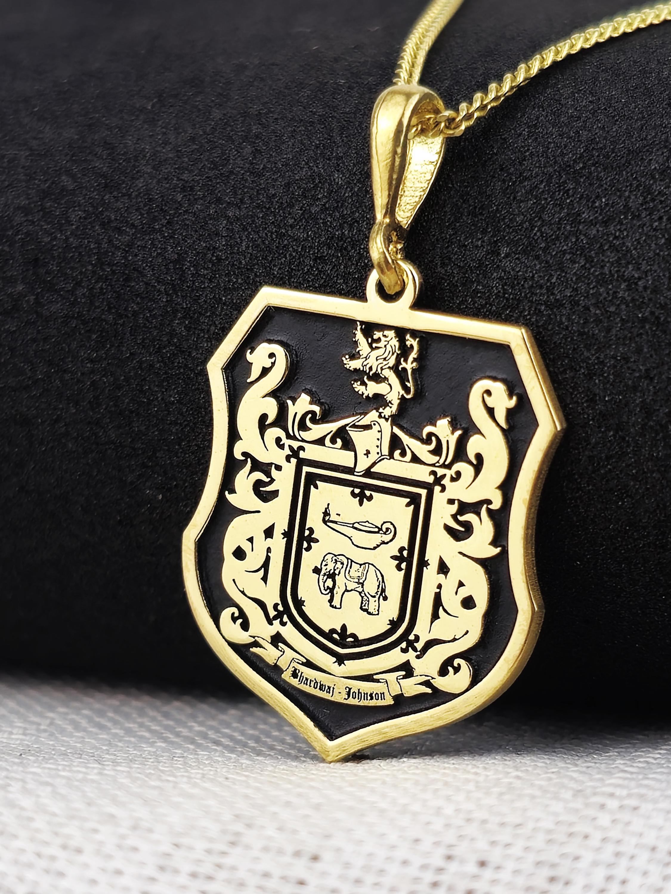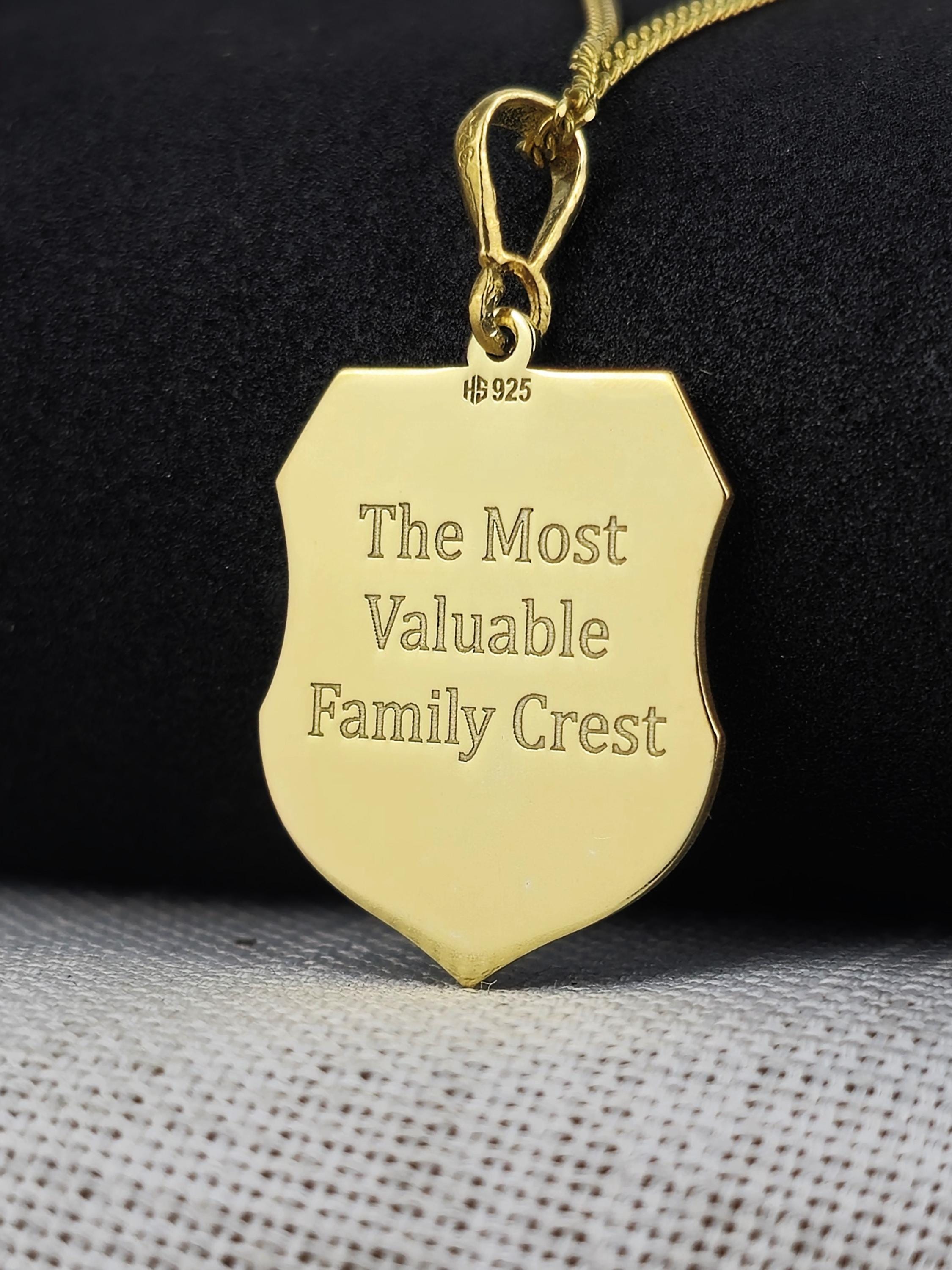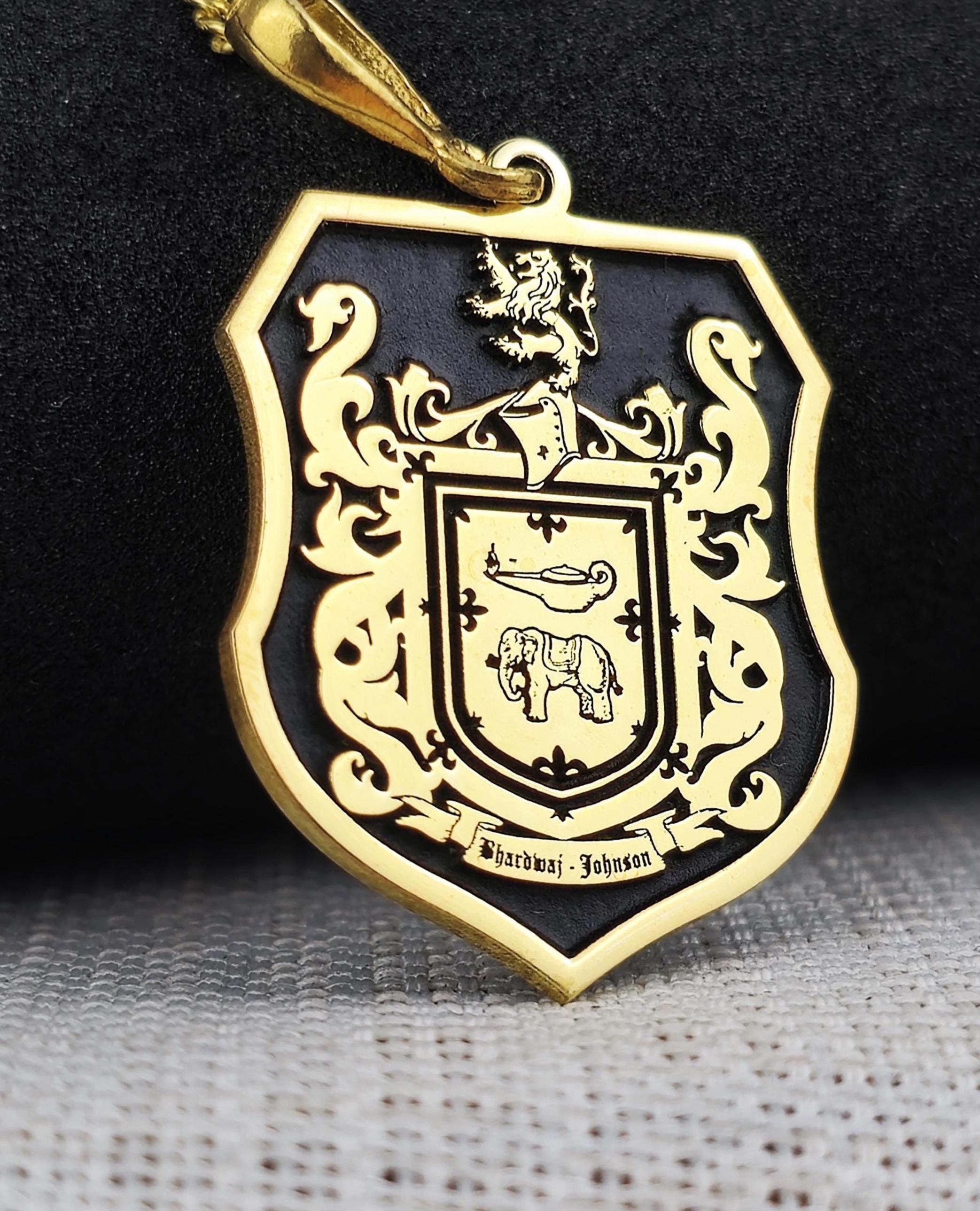 Custom Family Crest Pendant - Gold Shield Necklace for Special Occasions"