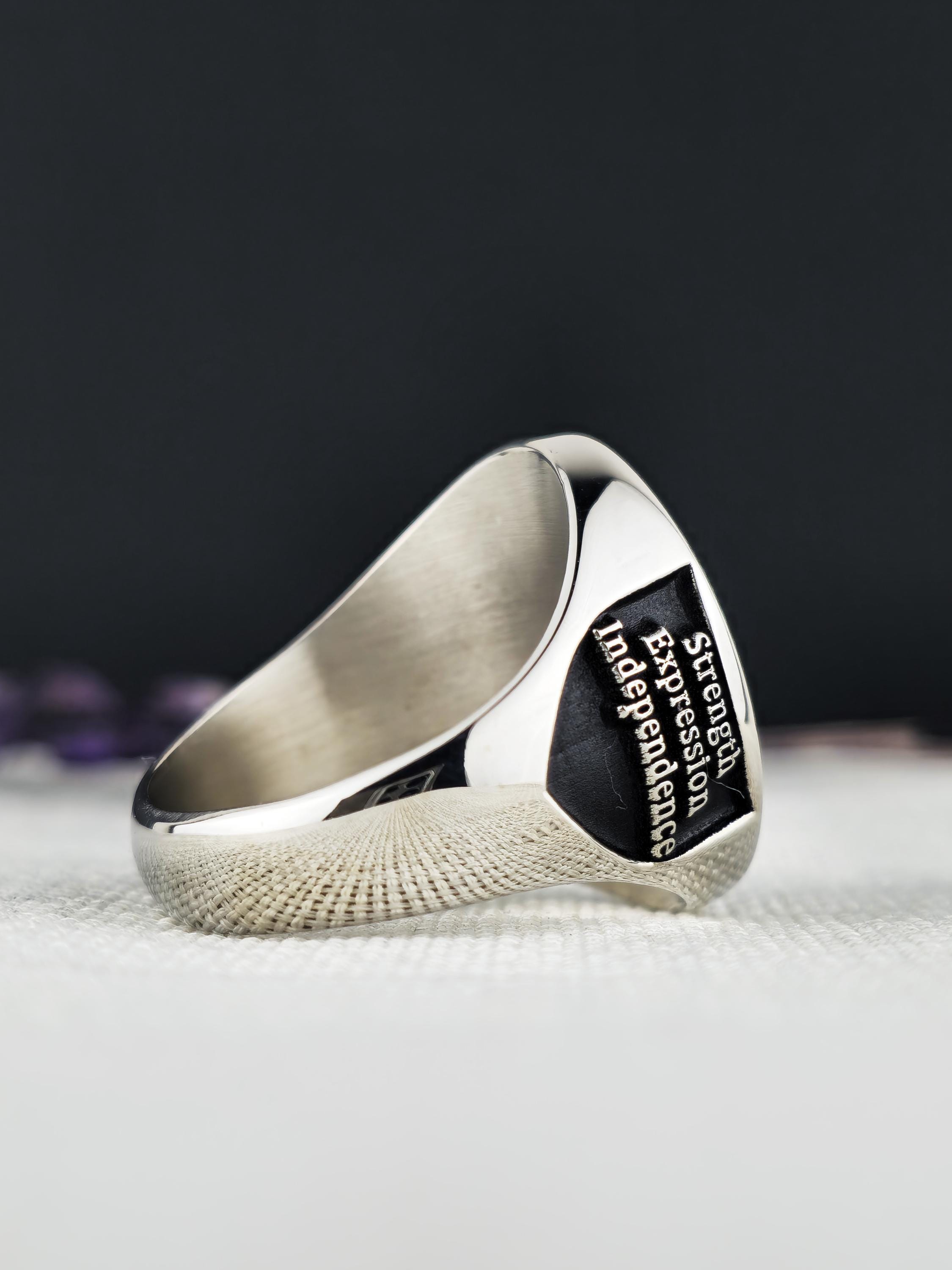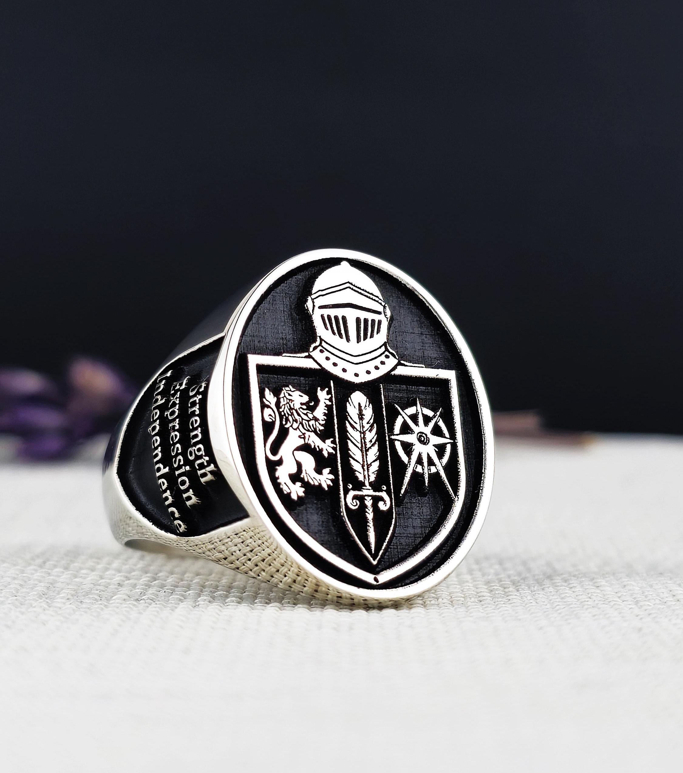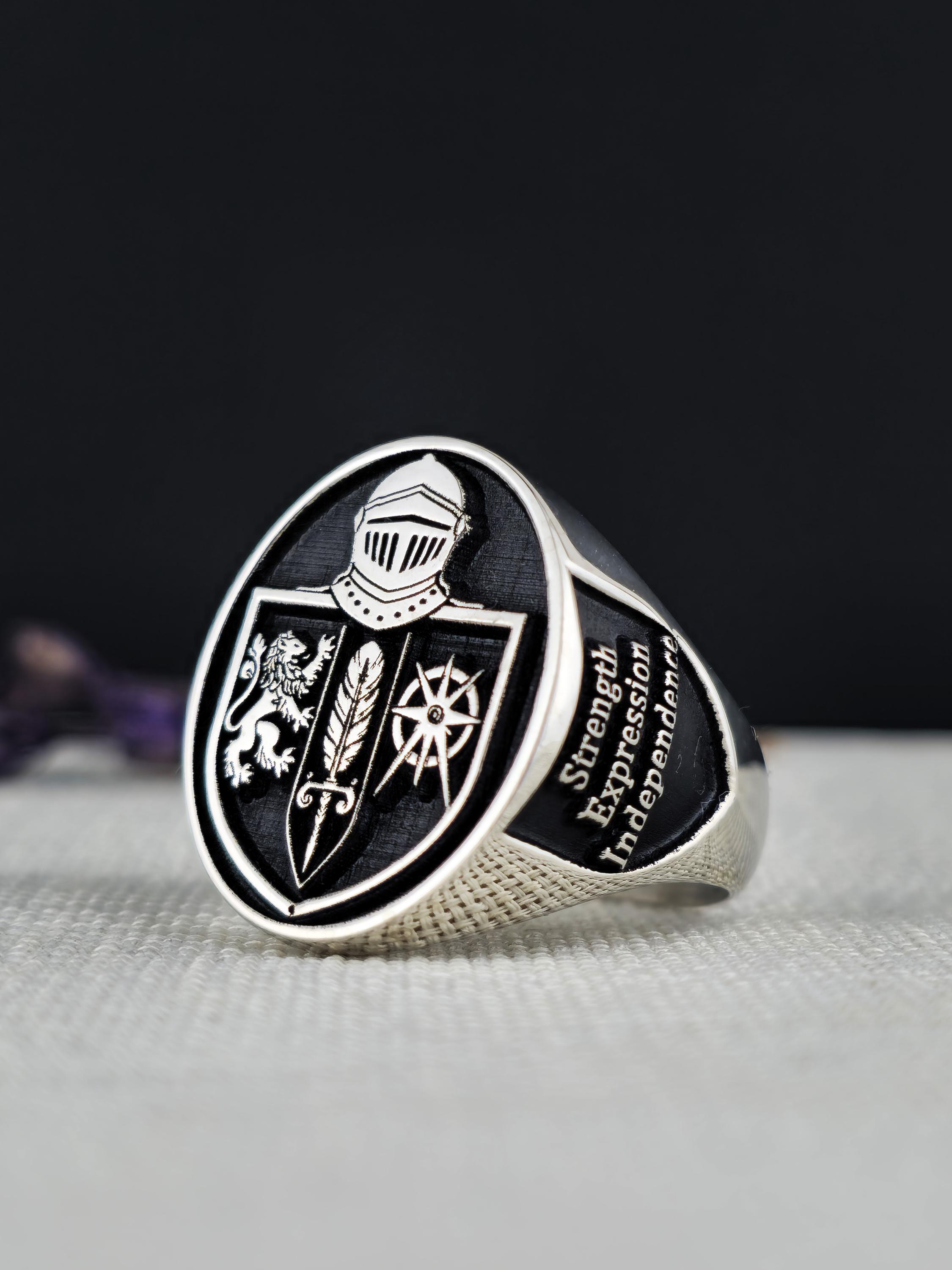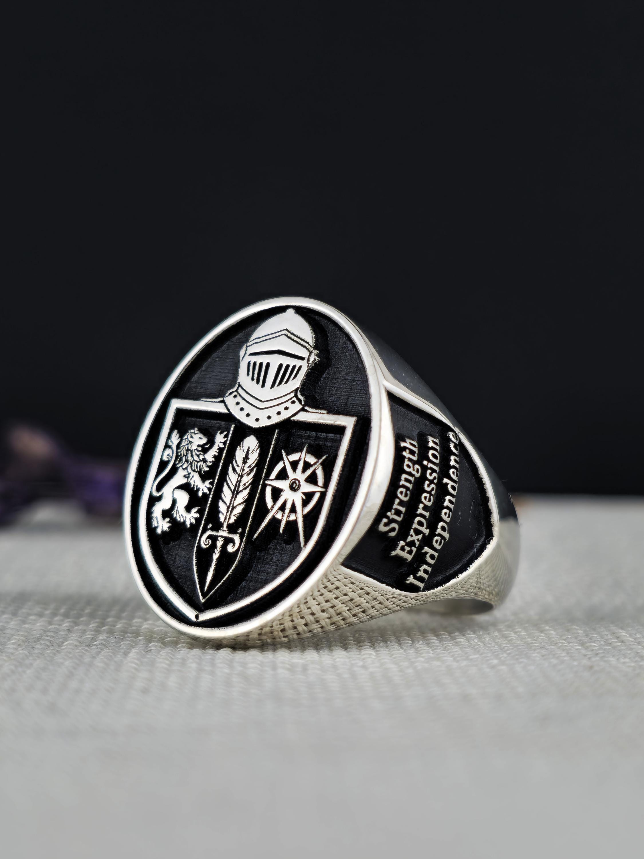 This exquisite handcrafted family crest signet ring is a symbol of heritage, strength, and legacy. Designed with precision, this oval-shaped ring is engraved with your personalized coat of arms, representing generations of history and nobility. Crafted from solid 925 sterling silver and hand-finished for a luxurious touch, this ring is a true statement piece for those who cherish their lineage.