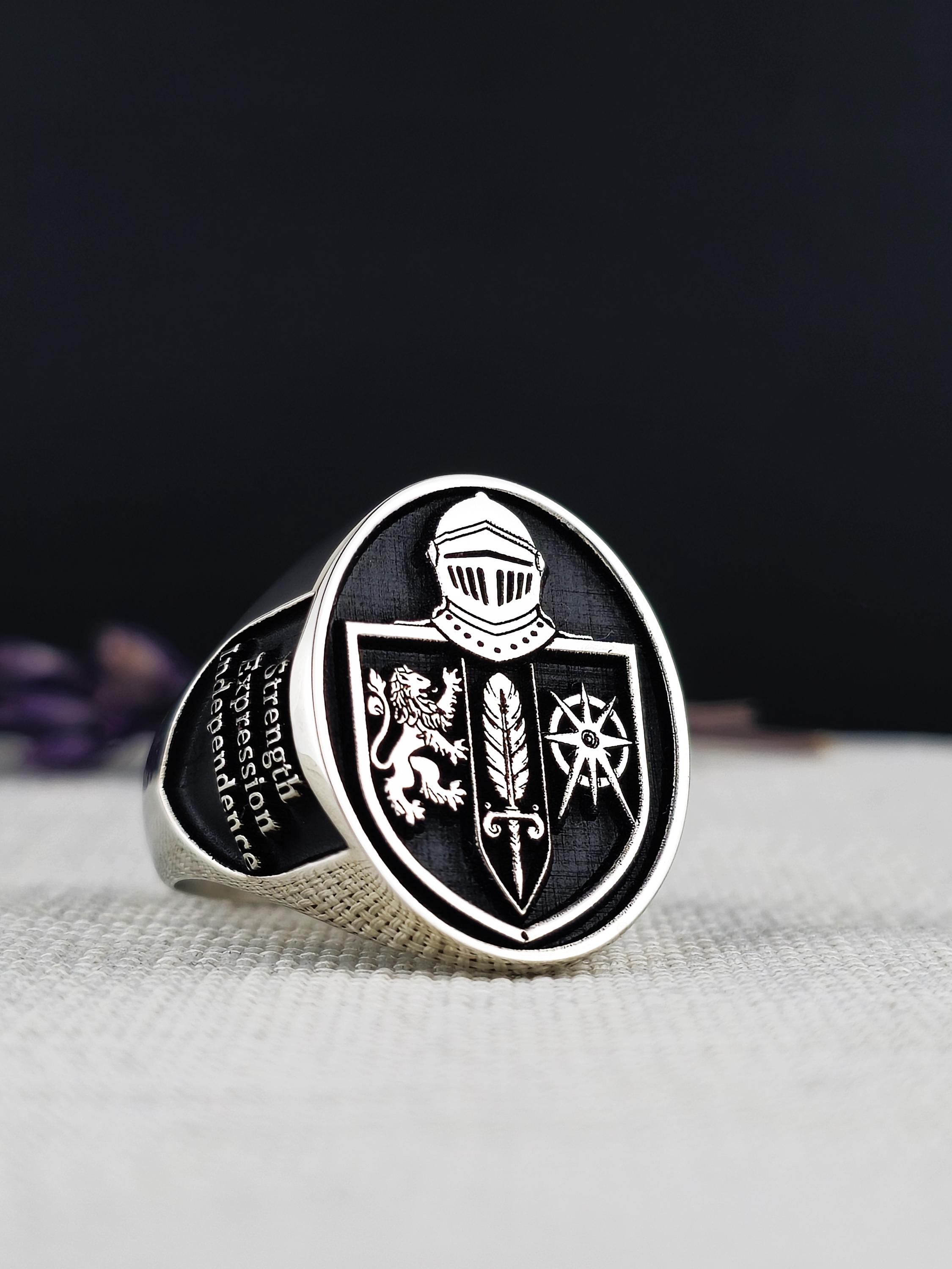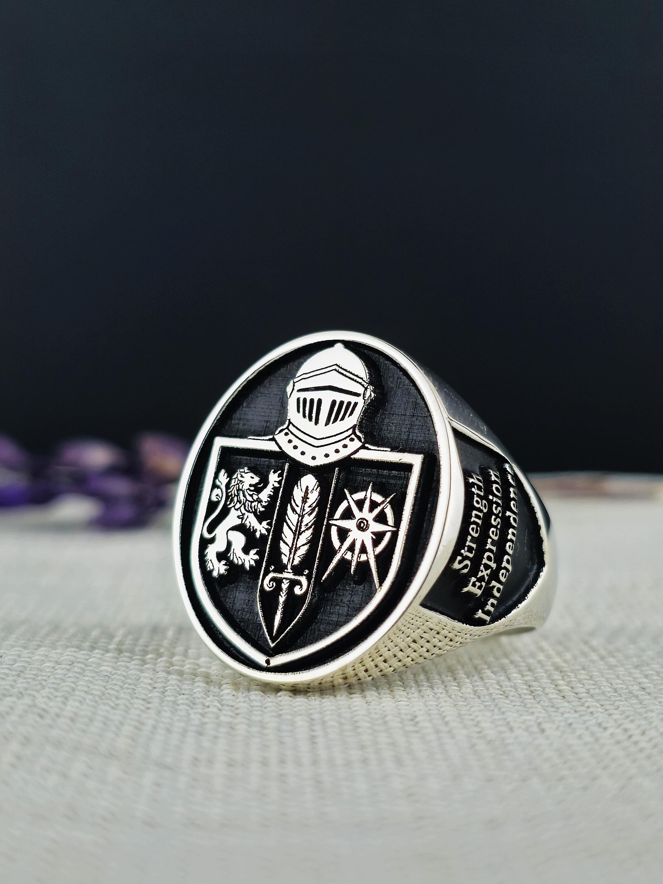 XL Oval Family Crest Ring β Custom Engraved Coat of Arms | Medieval Knight Heritage Jewelry - Noble Heritage Jewelry- Handcrafted Ring