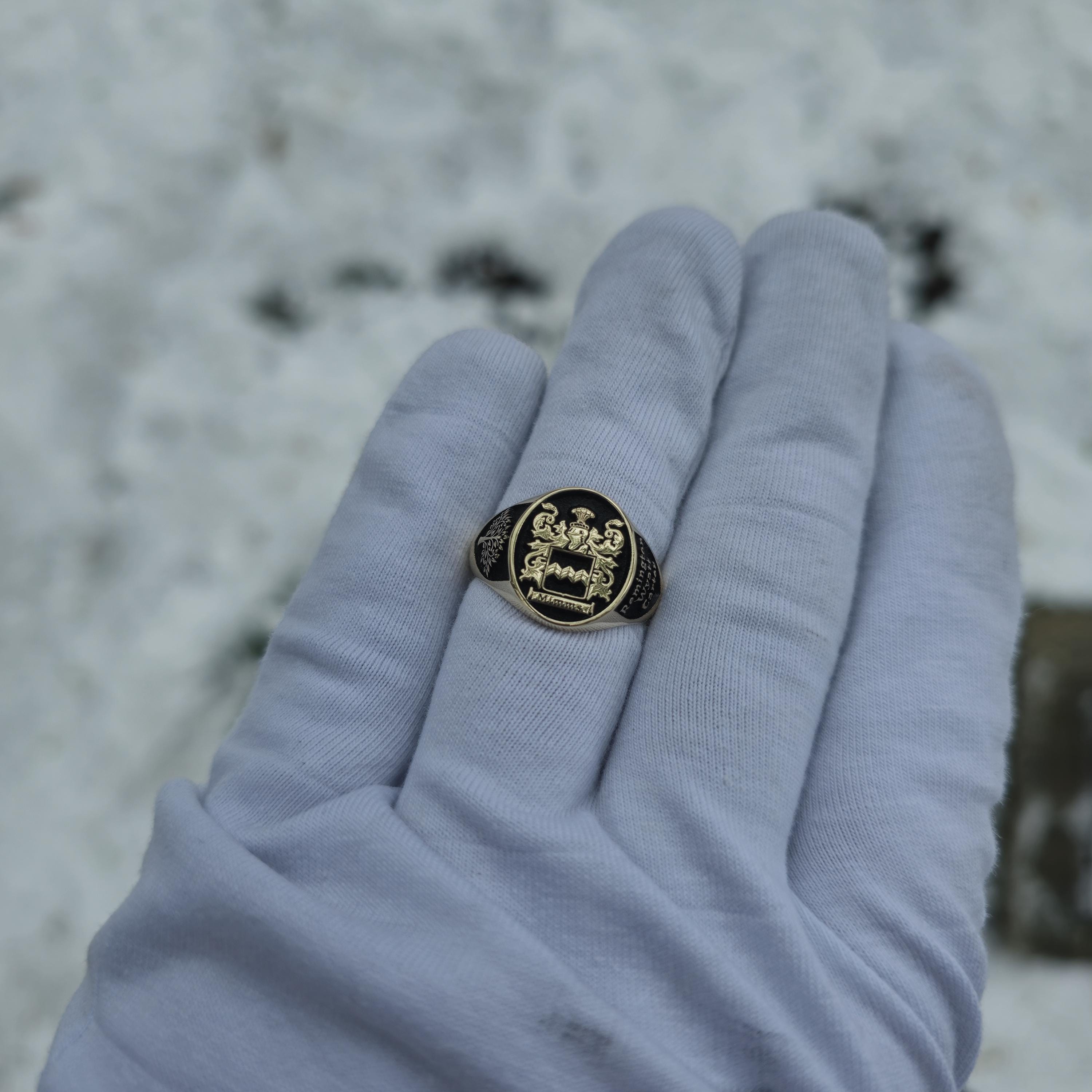 Exquisite Custom Family Crest Ring - 925 Sterling Silver Heraldic Signet