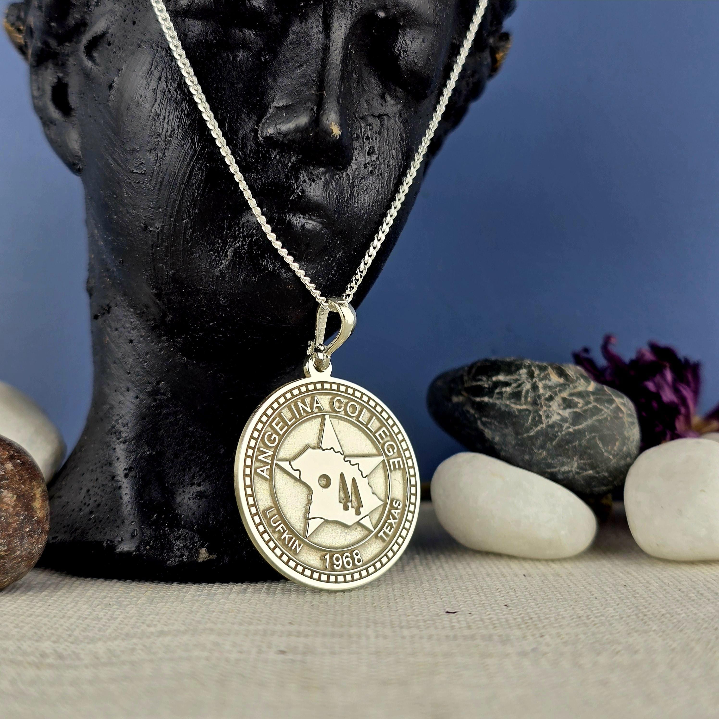 This beautifully handcrafted sterling silver pendant showcases a unique geographic symbol inspired by your educational path. A refined and elegant tribute to achievement, growth, and perseverance, this necklace is perfect for graduates, professors, and academic achievers.