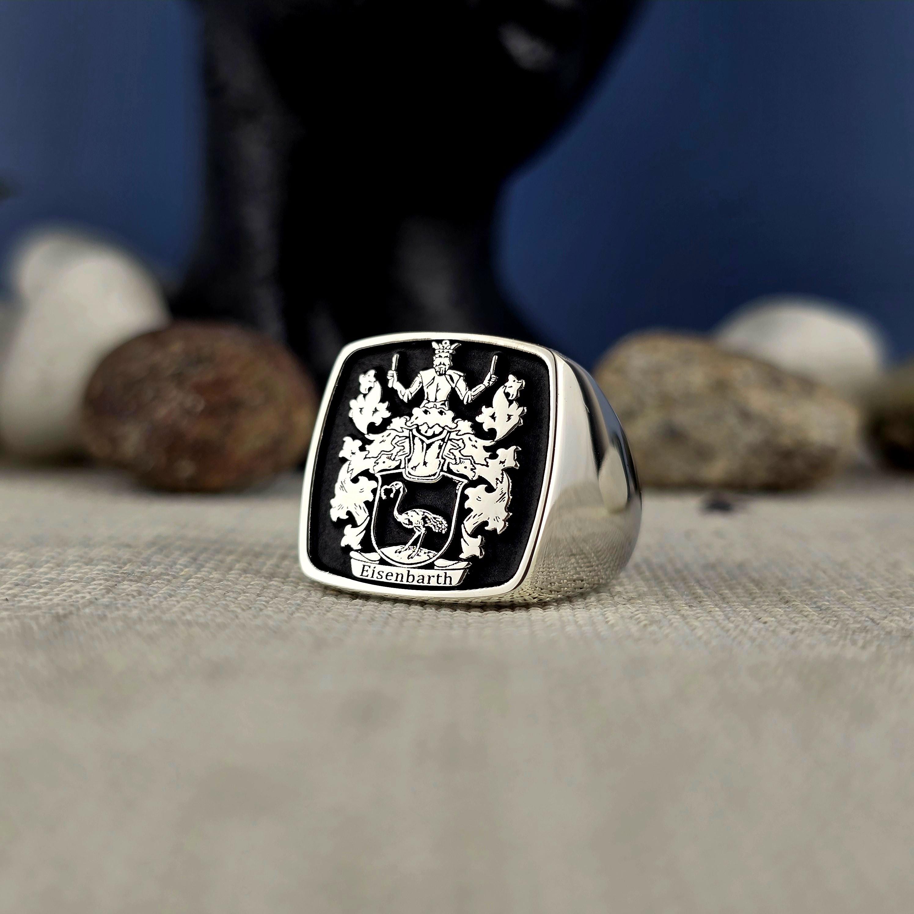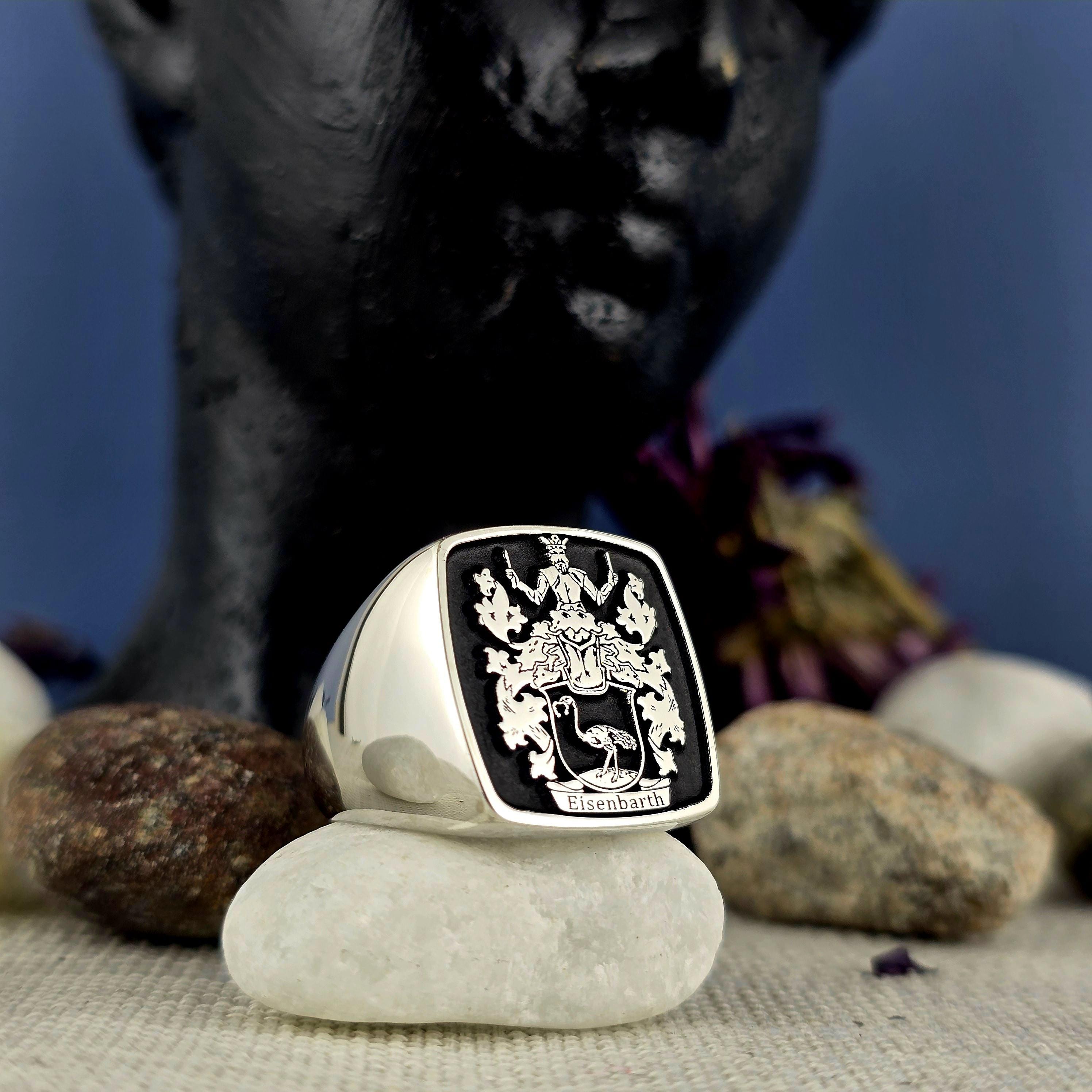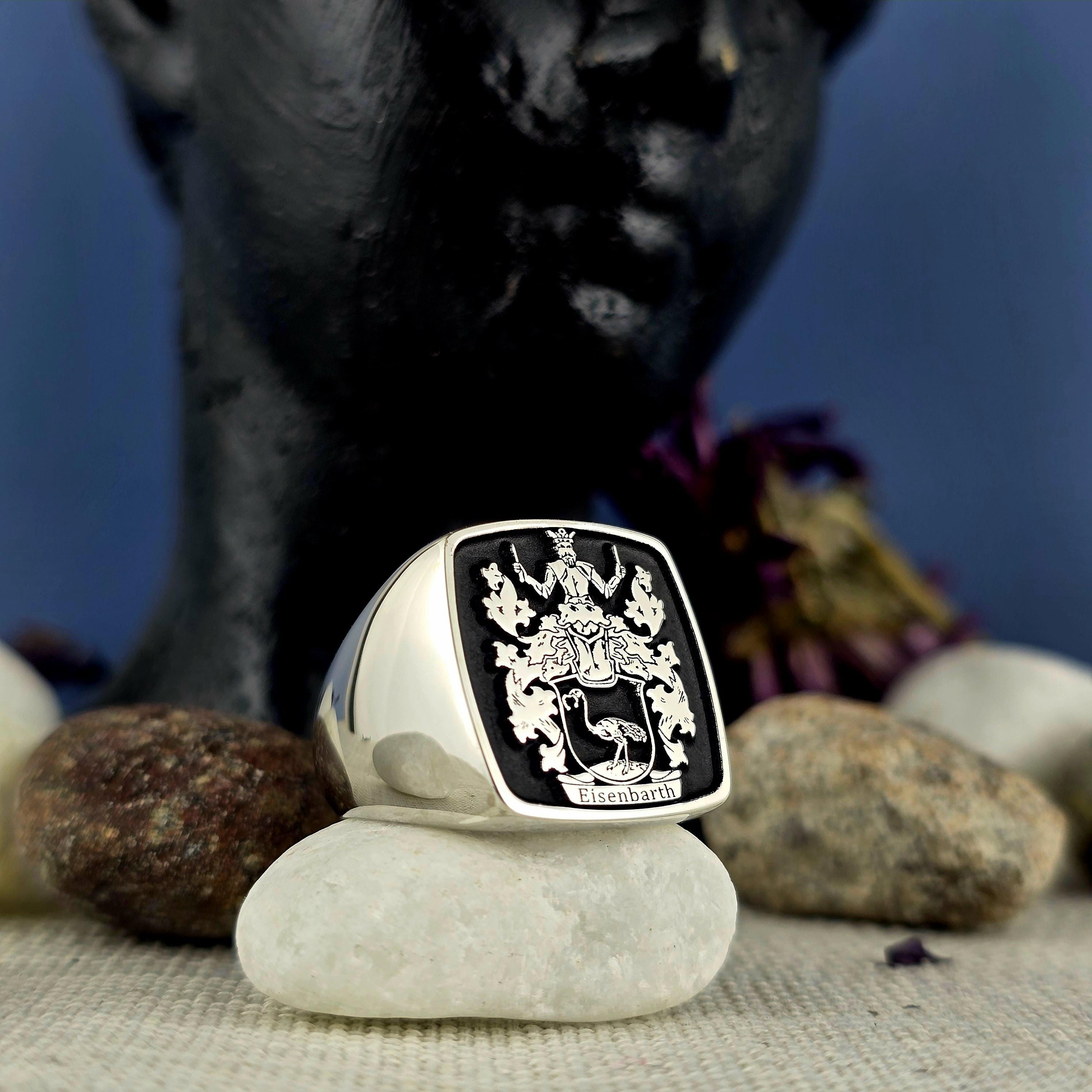 Custom Sterling Silver Square Signet Ring: Engraved Family Crest