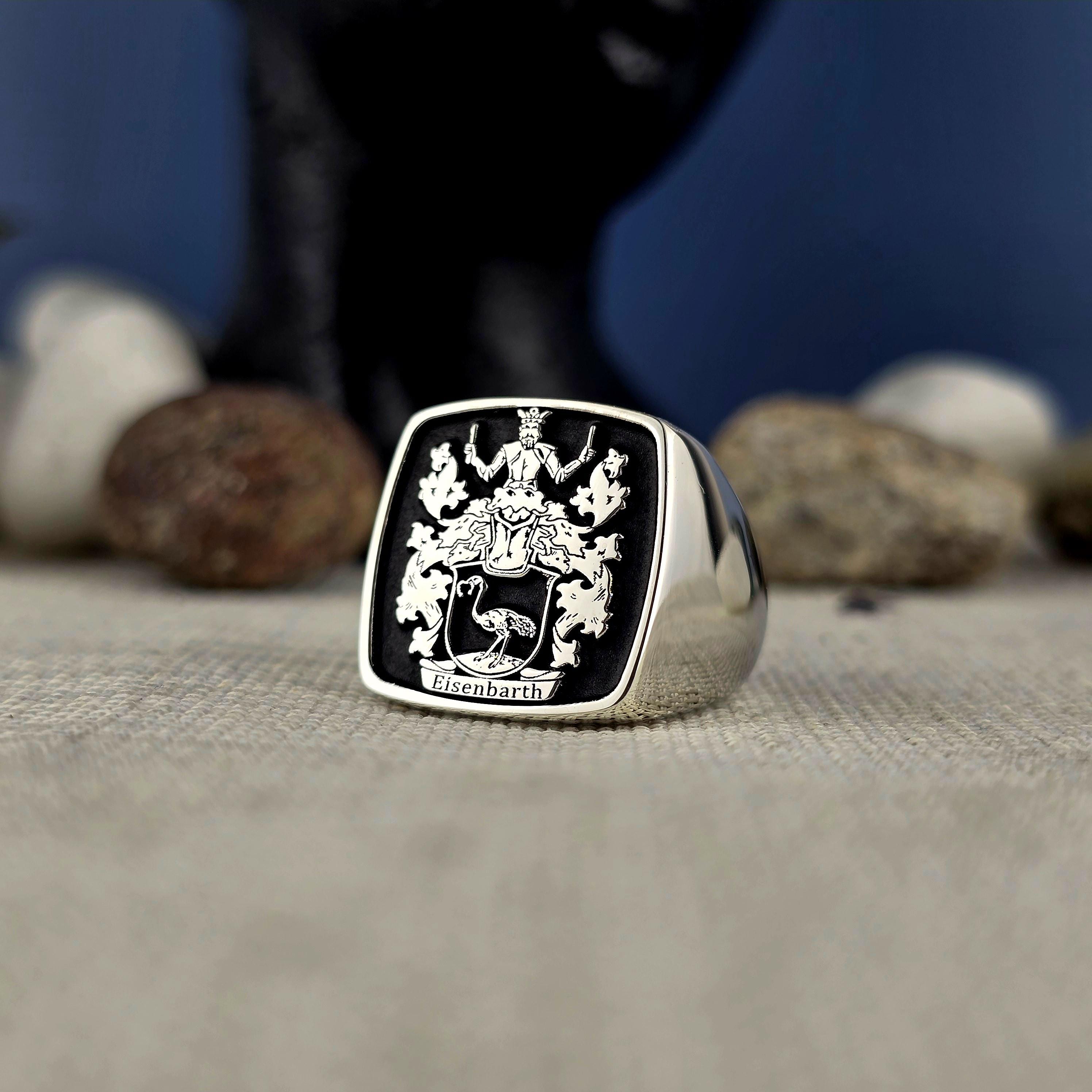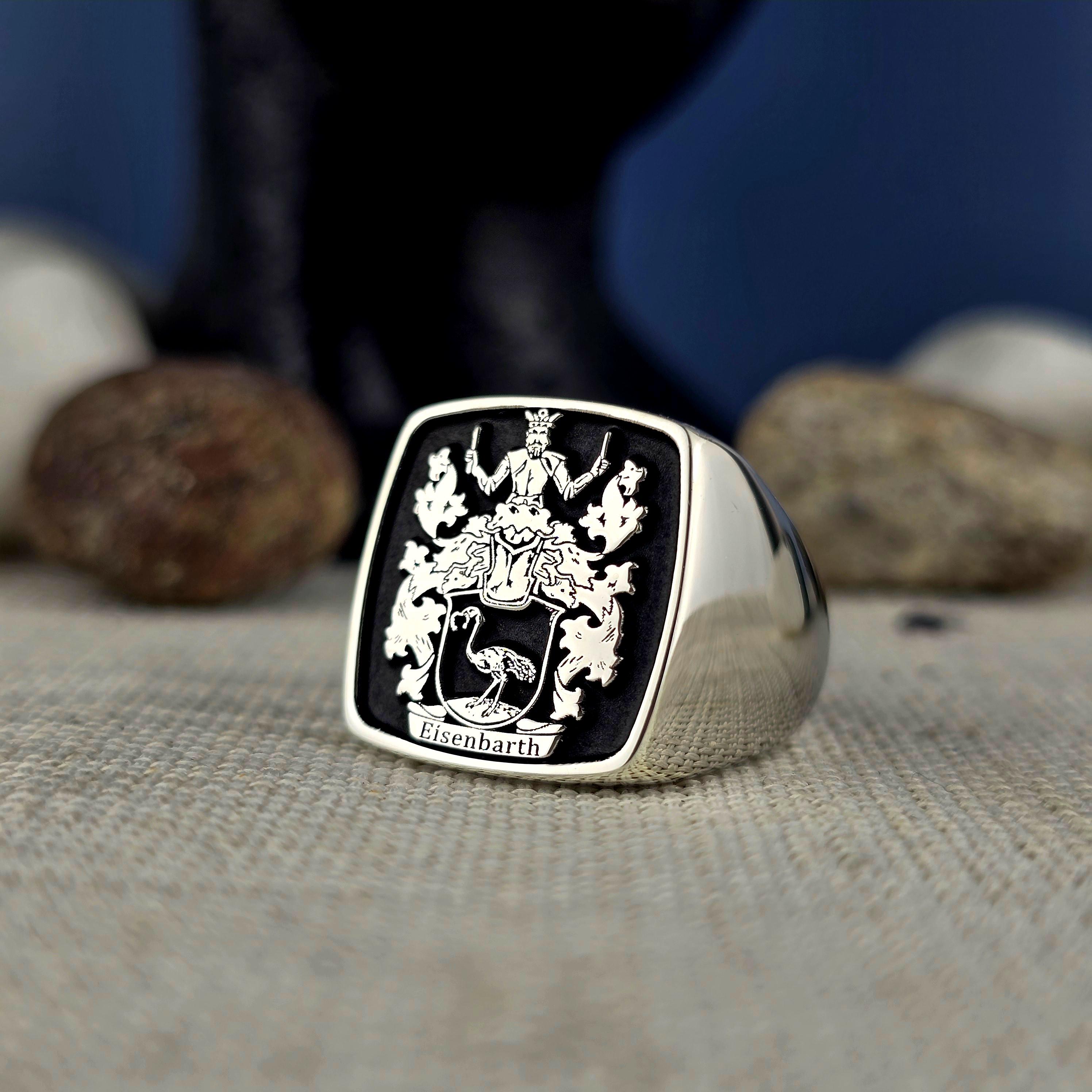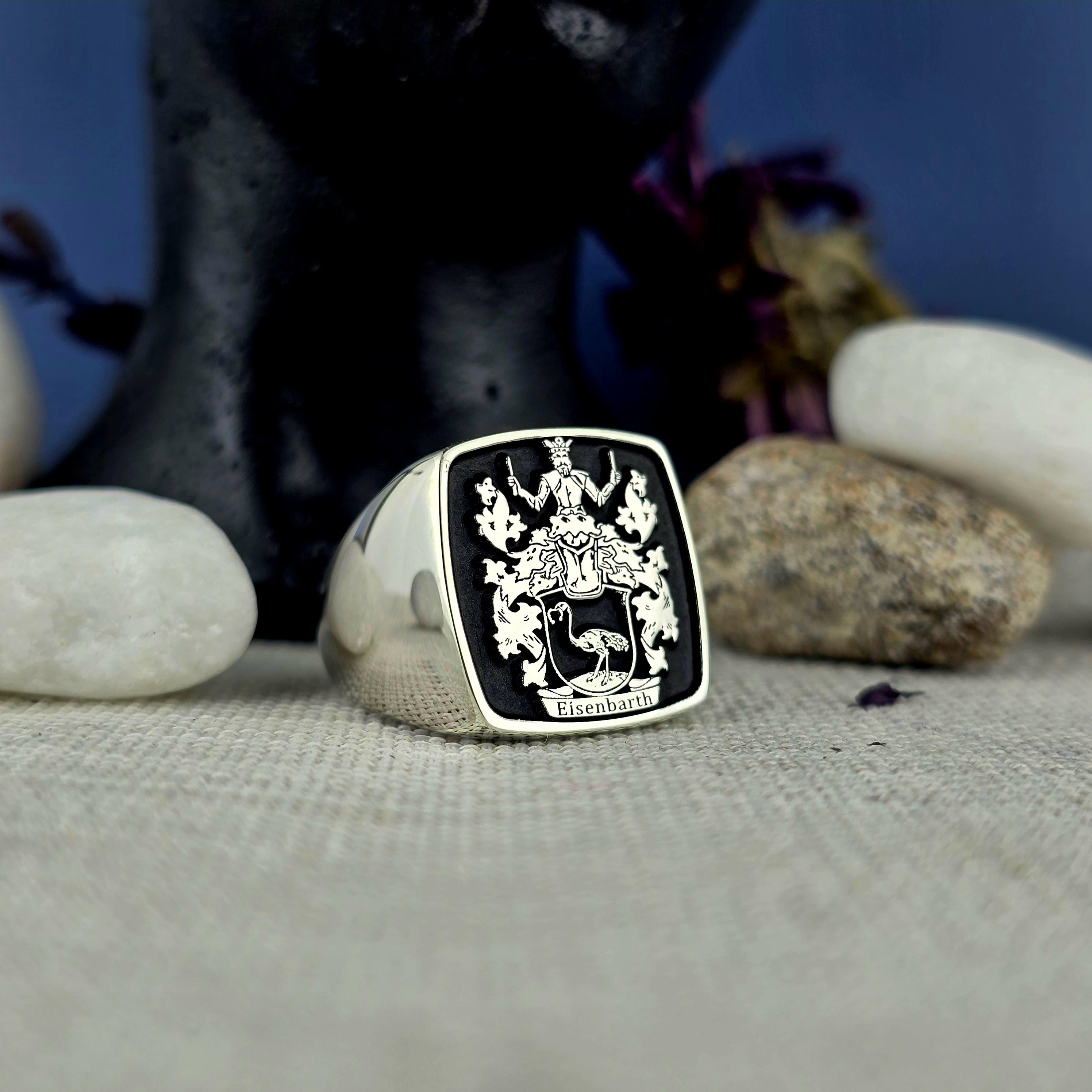 Custom Sterling Silver Square Signet Ring: Engraved Family Crest