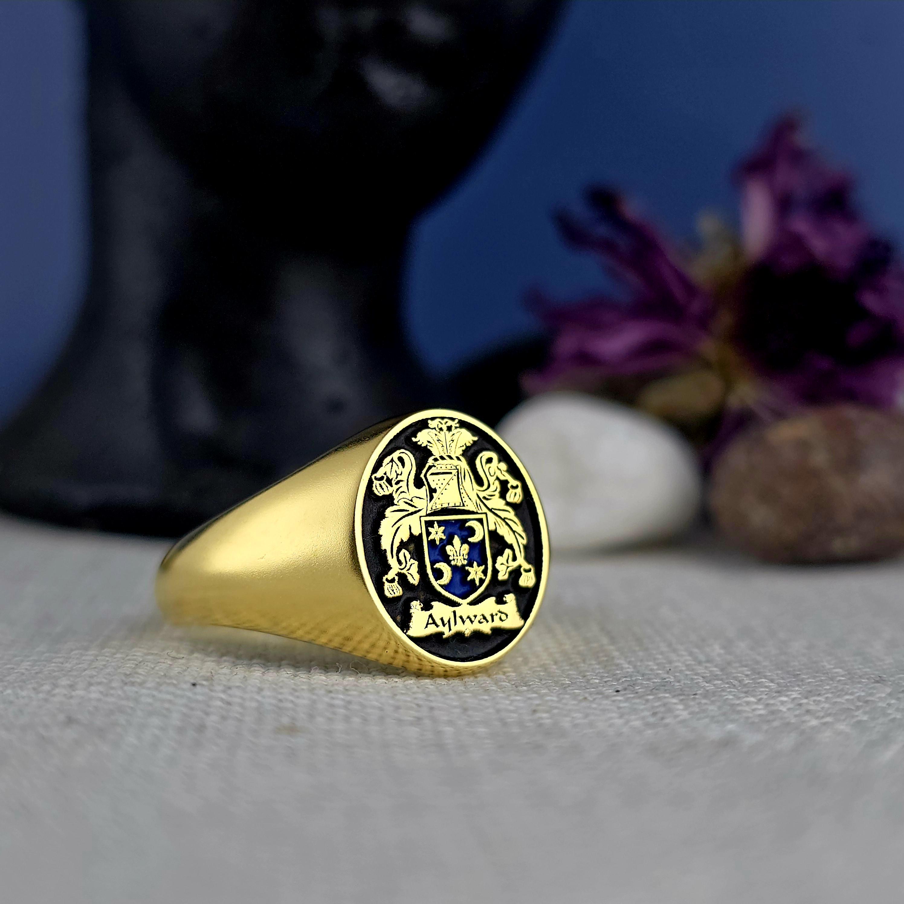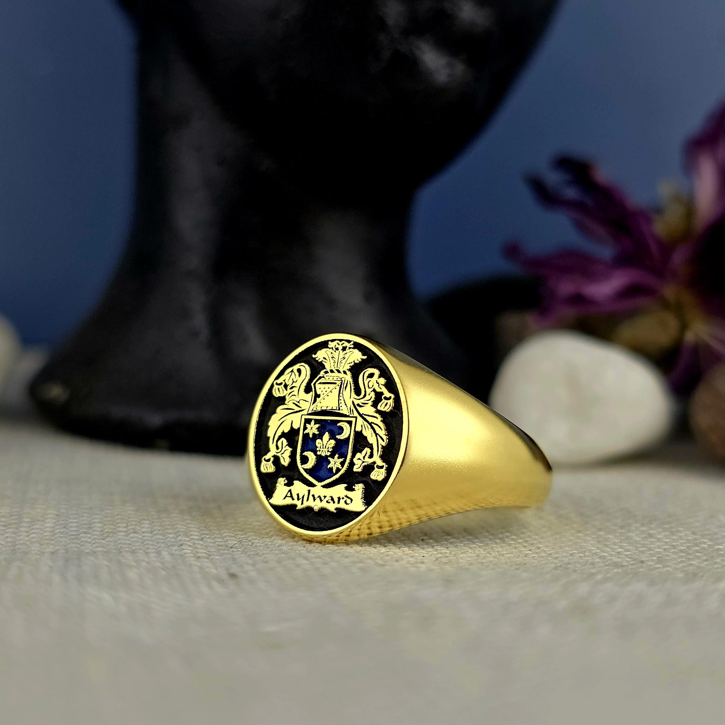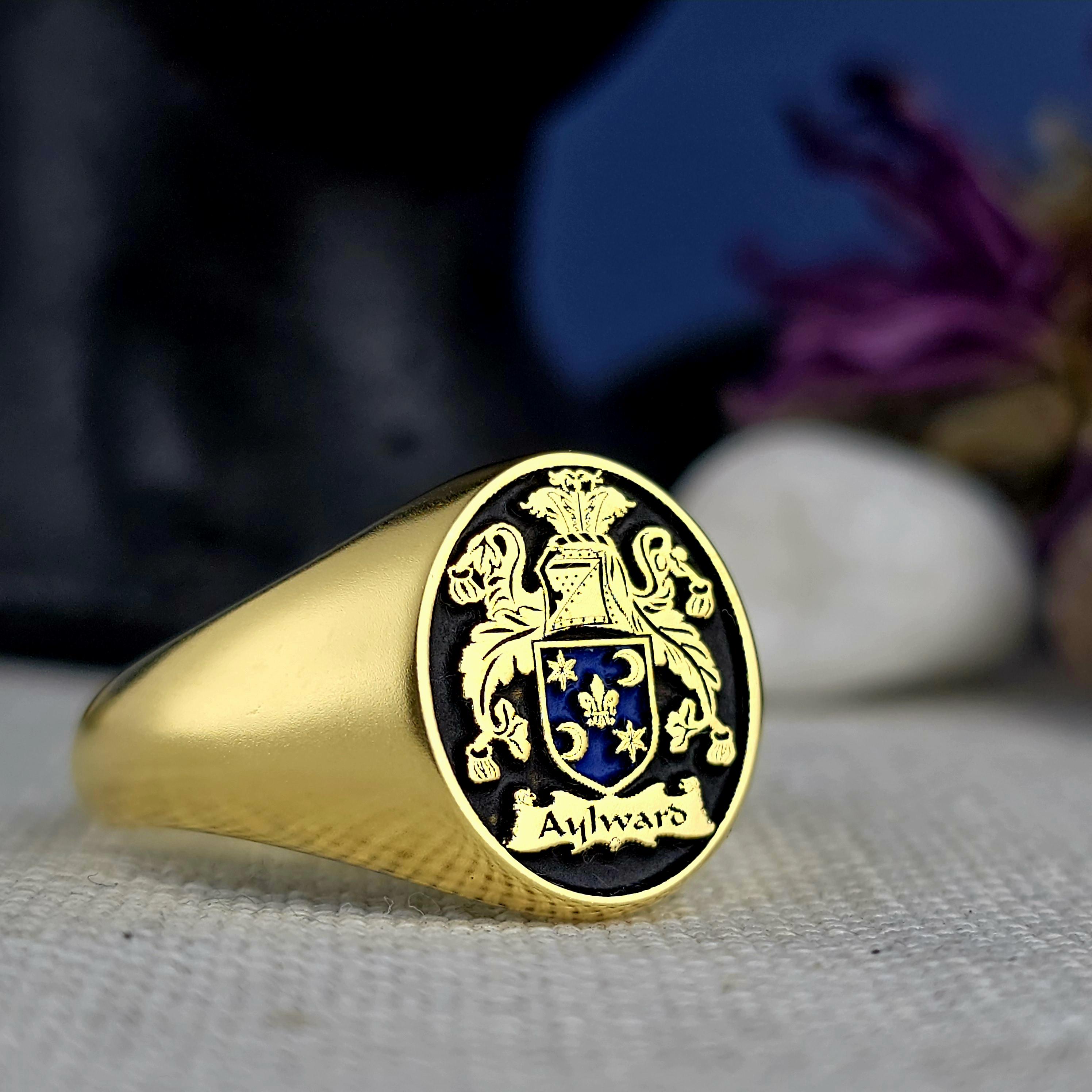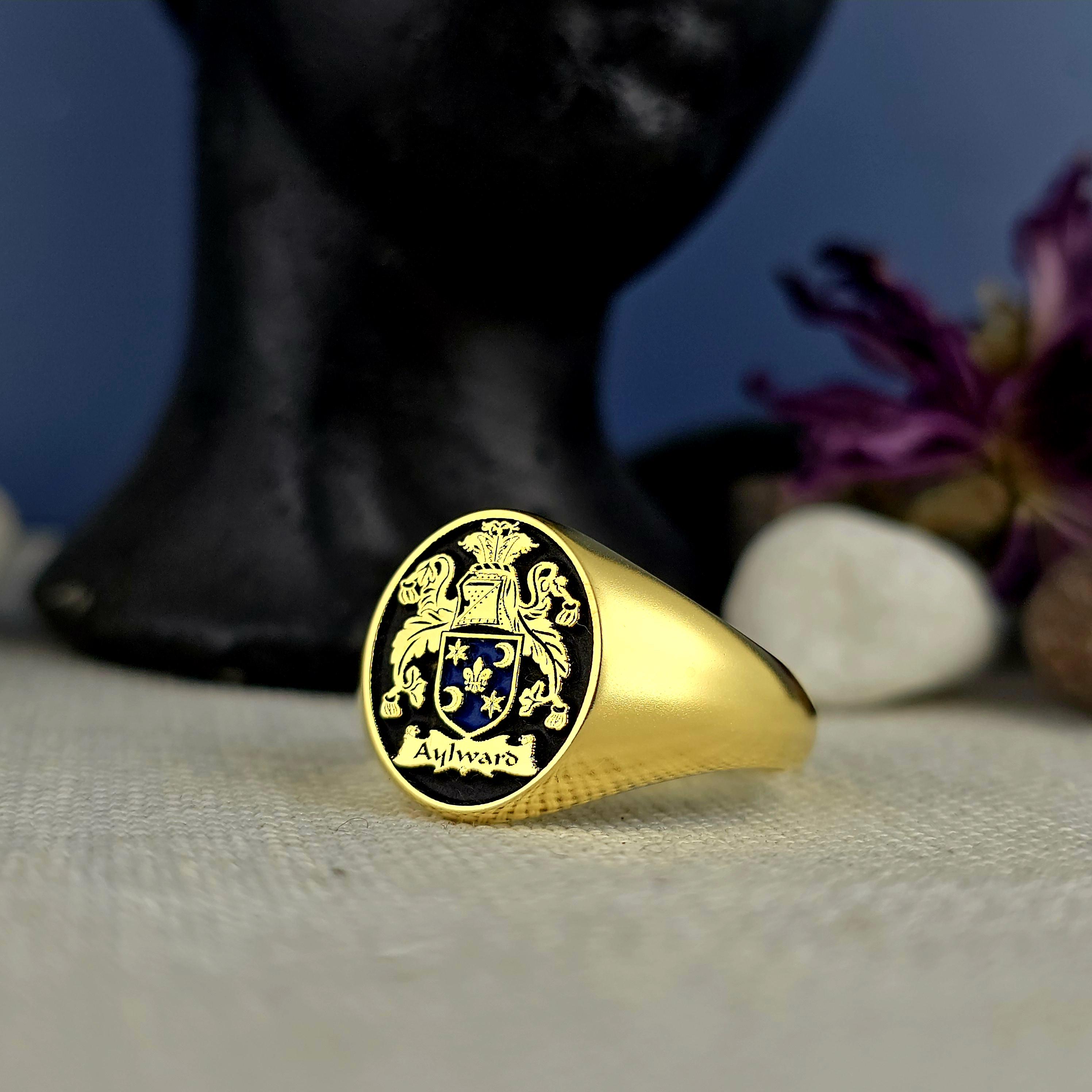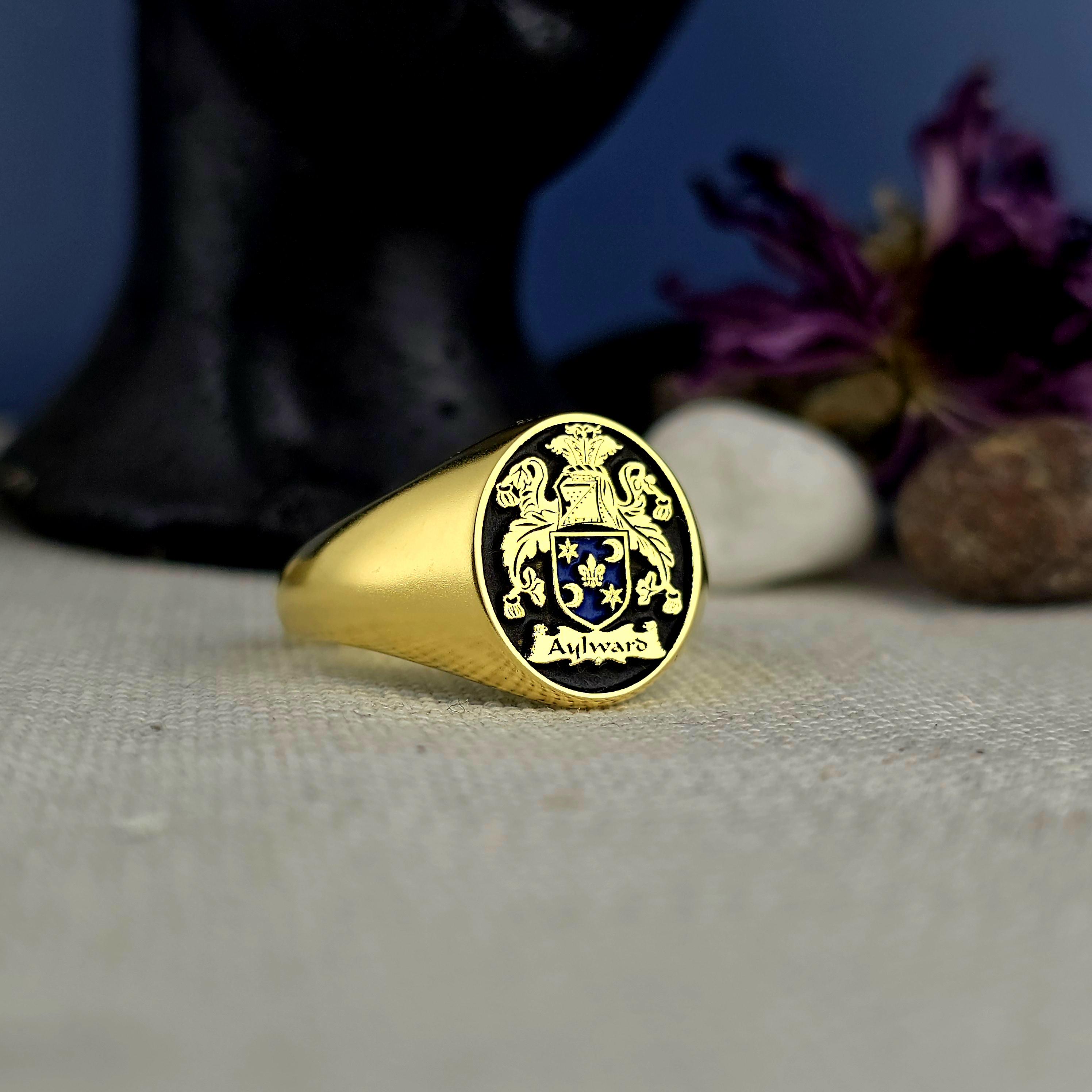 Custom Family Crest Signet Ring: Personalized Enamel Heraldic Jewelry