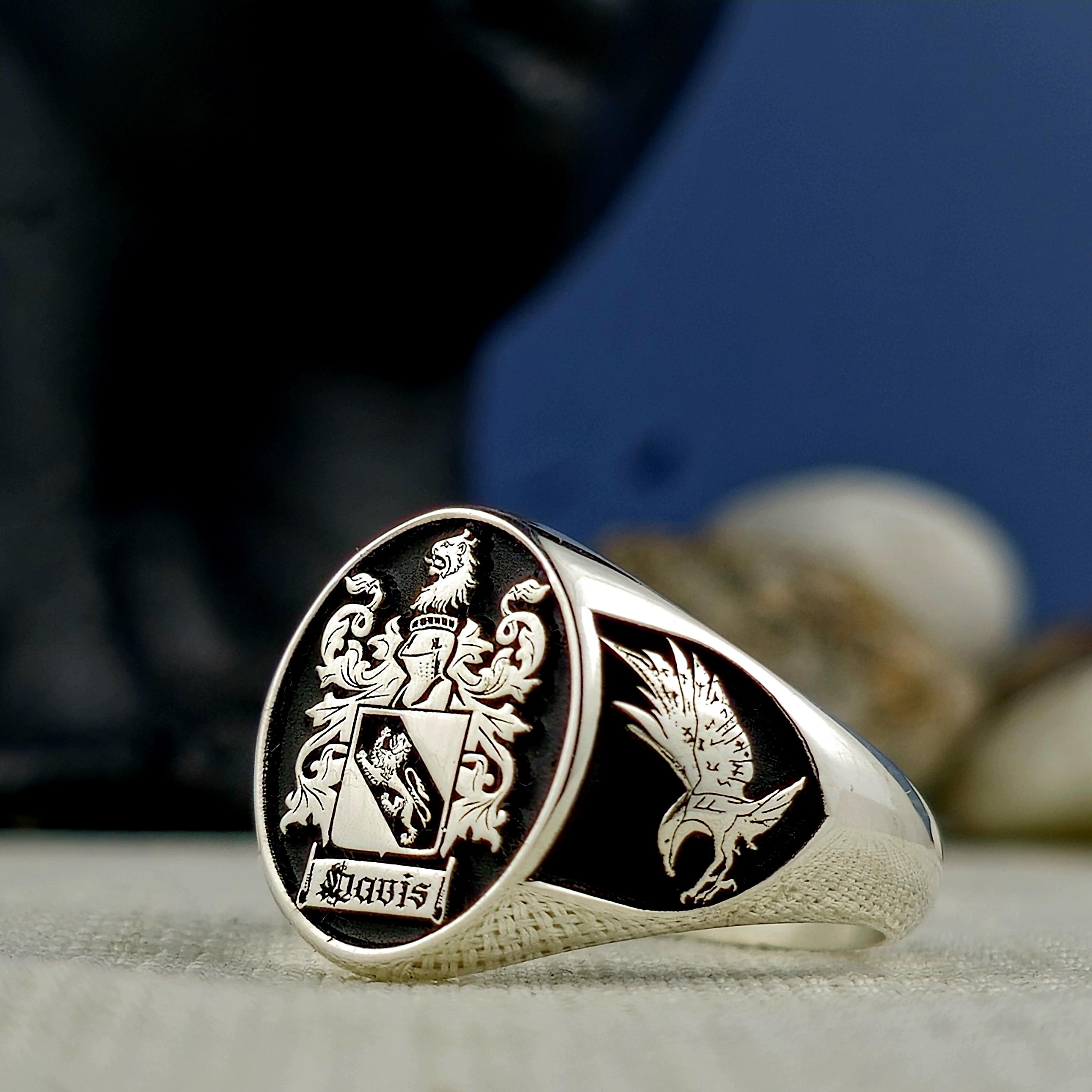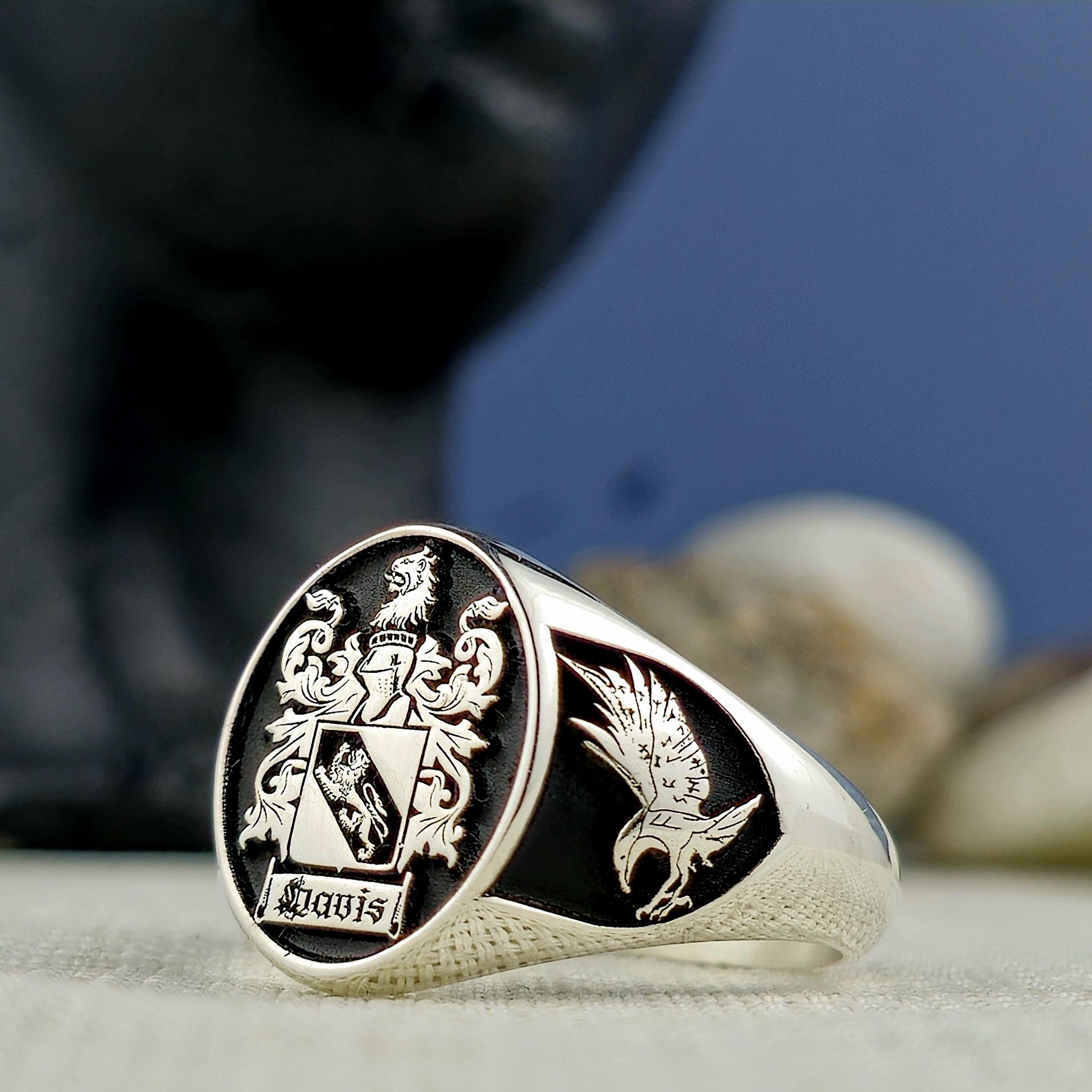✨ Wear your history with personalized elegance! This elegant silver family crest ring is the perfect choice for special occasions. Designed with the sophistication of silver, this ring immortalizes your family’s emblem or a special date. Ideal for graduations, ceremonies, or meaningful gifts, this custom-made ring combines style with personal significance.