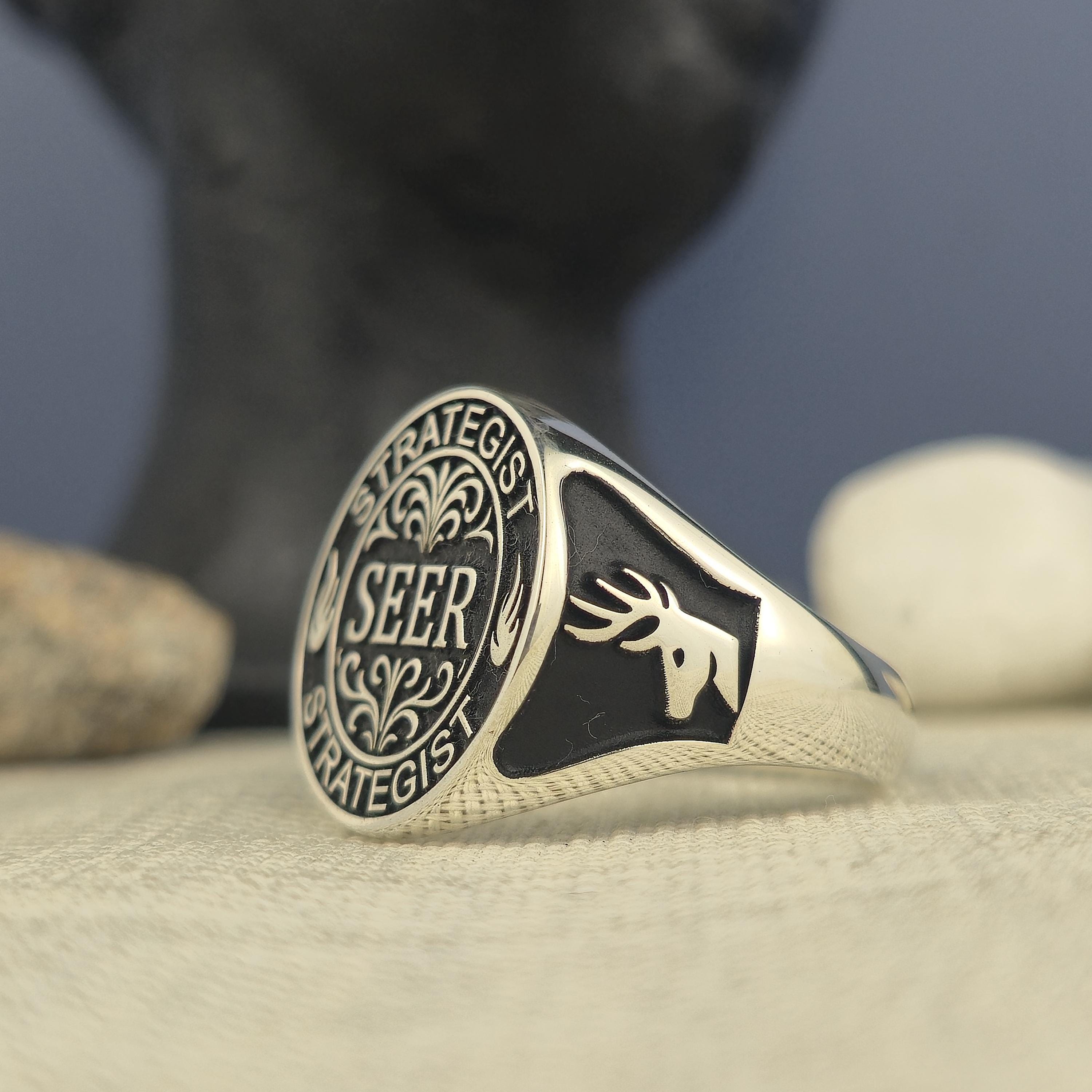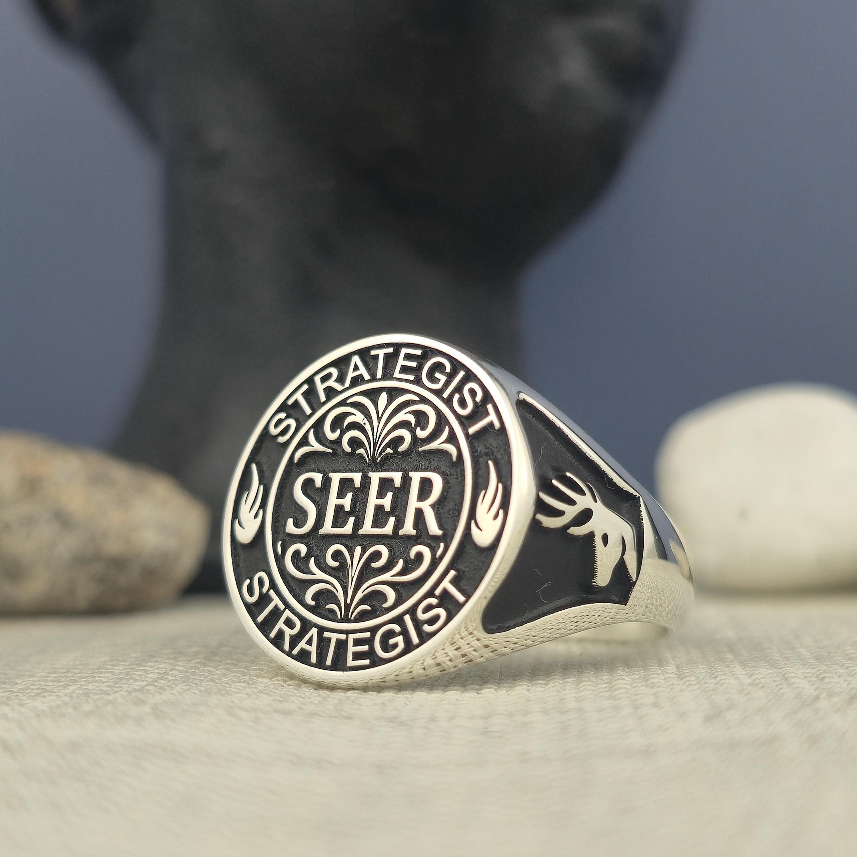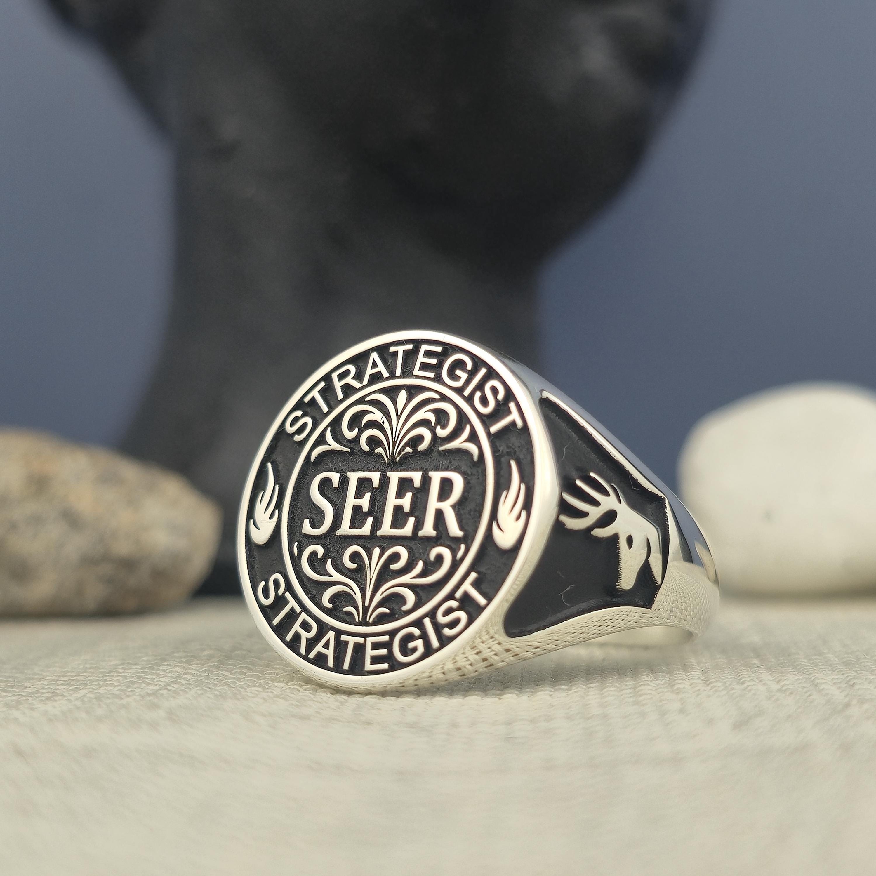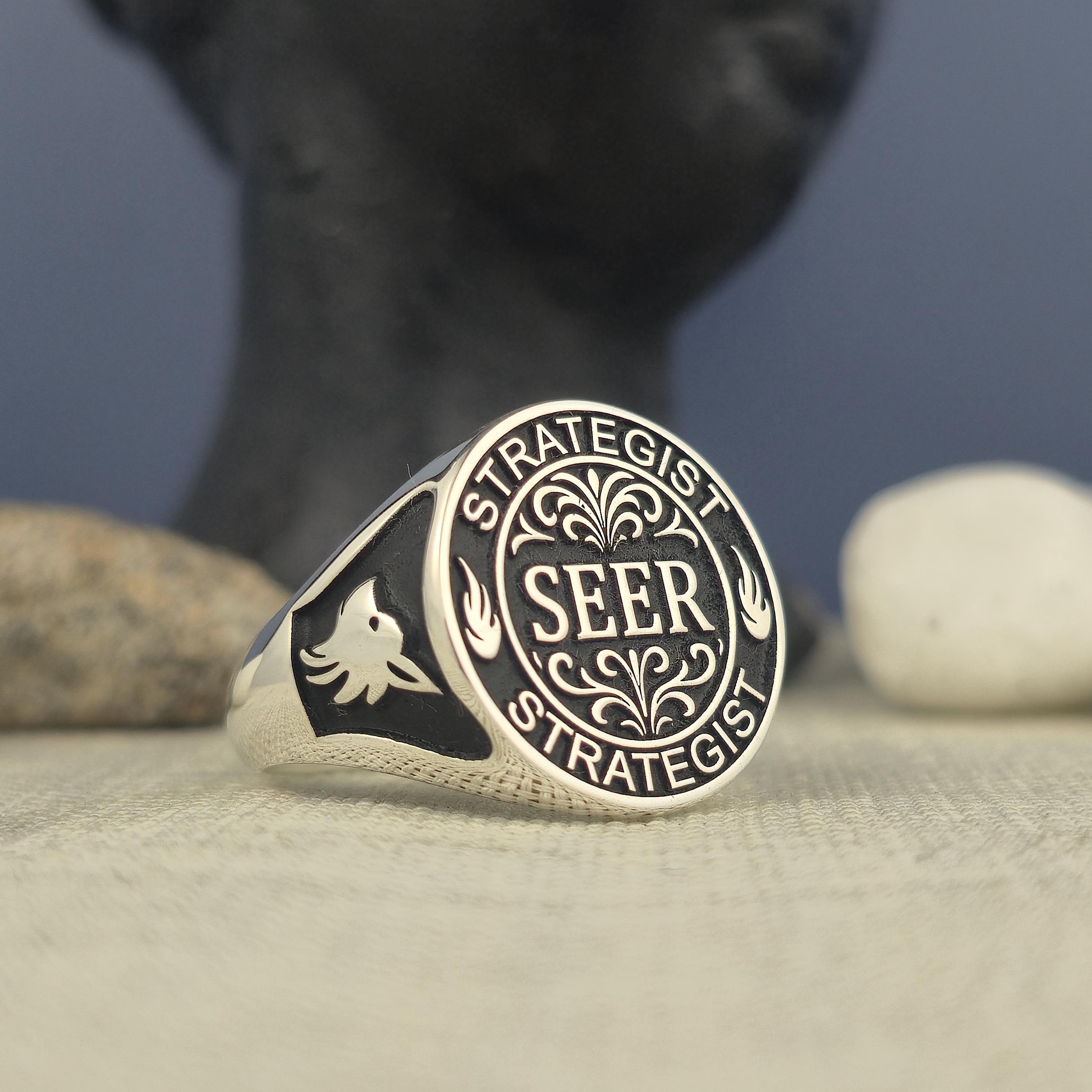 🔮 SEER / STRATEGIST Custom Signet Ring – Visionary Jewelry in 925 Sterling Silver