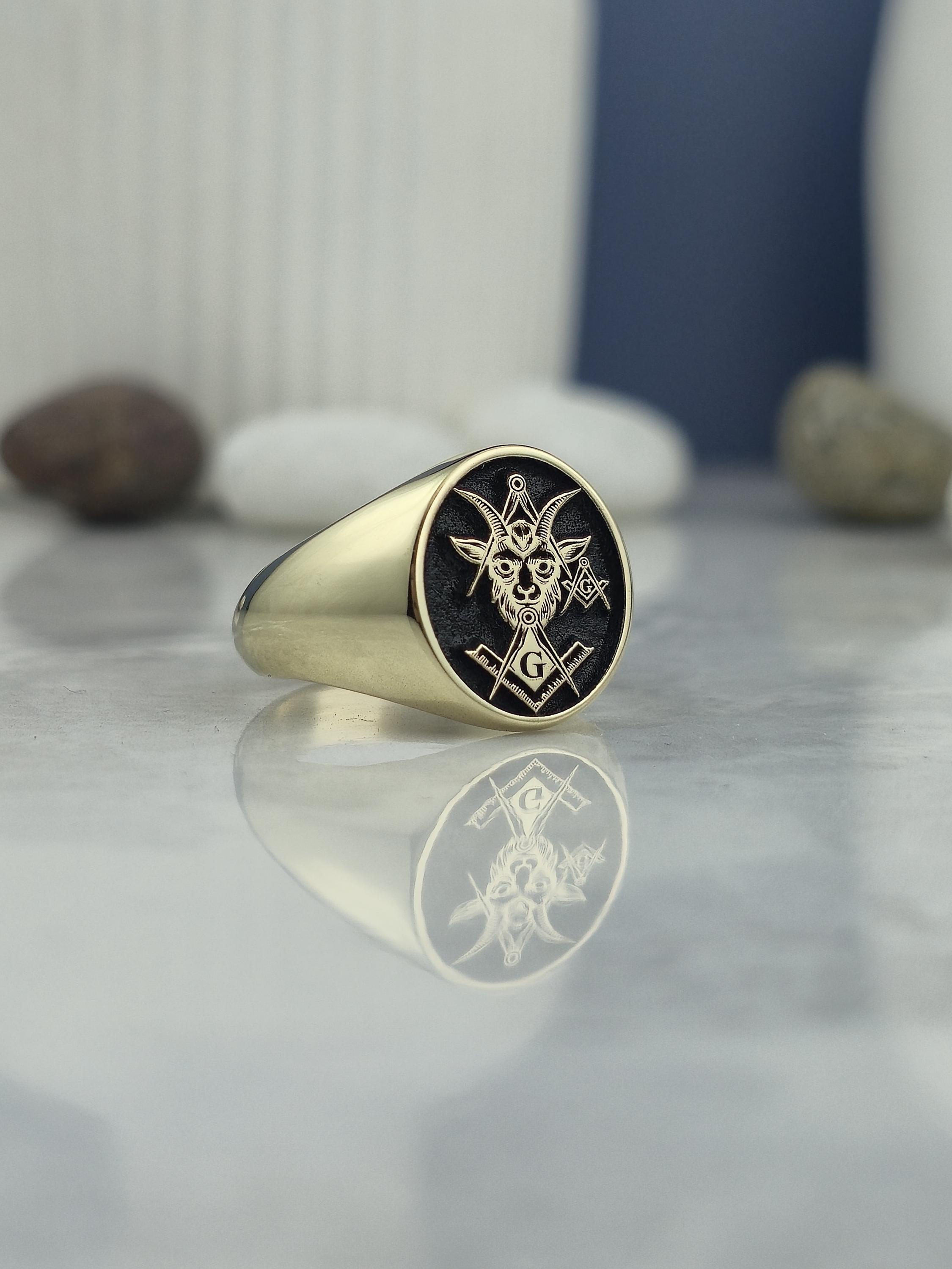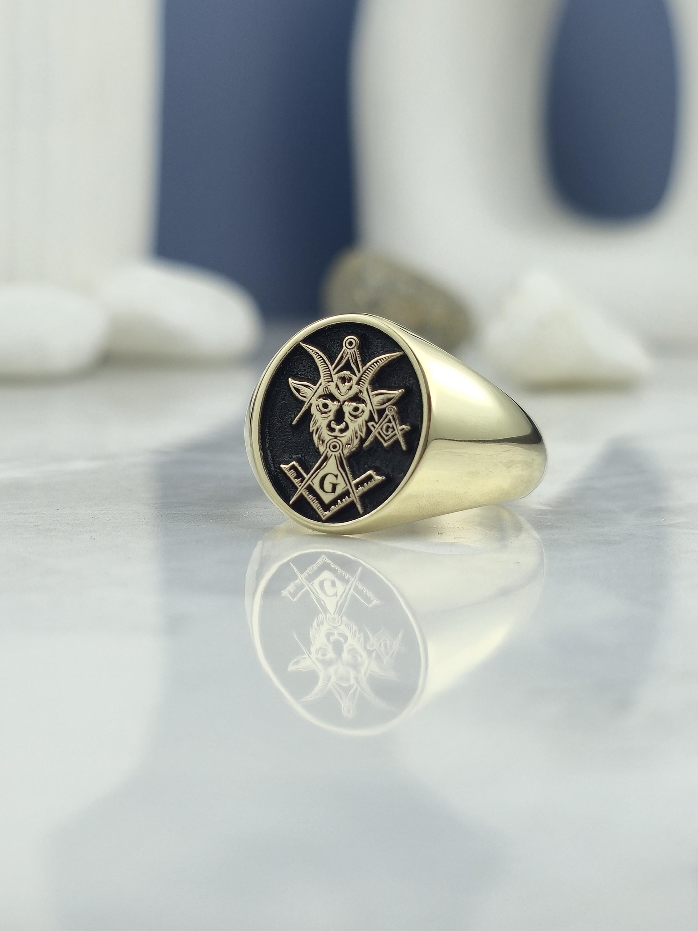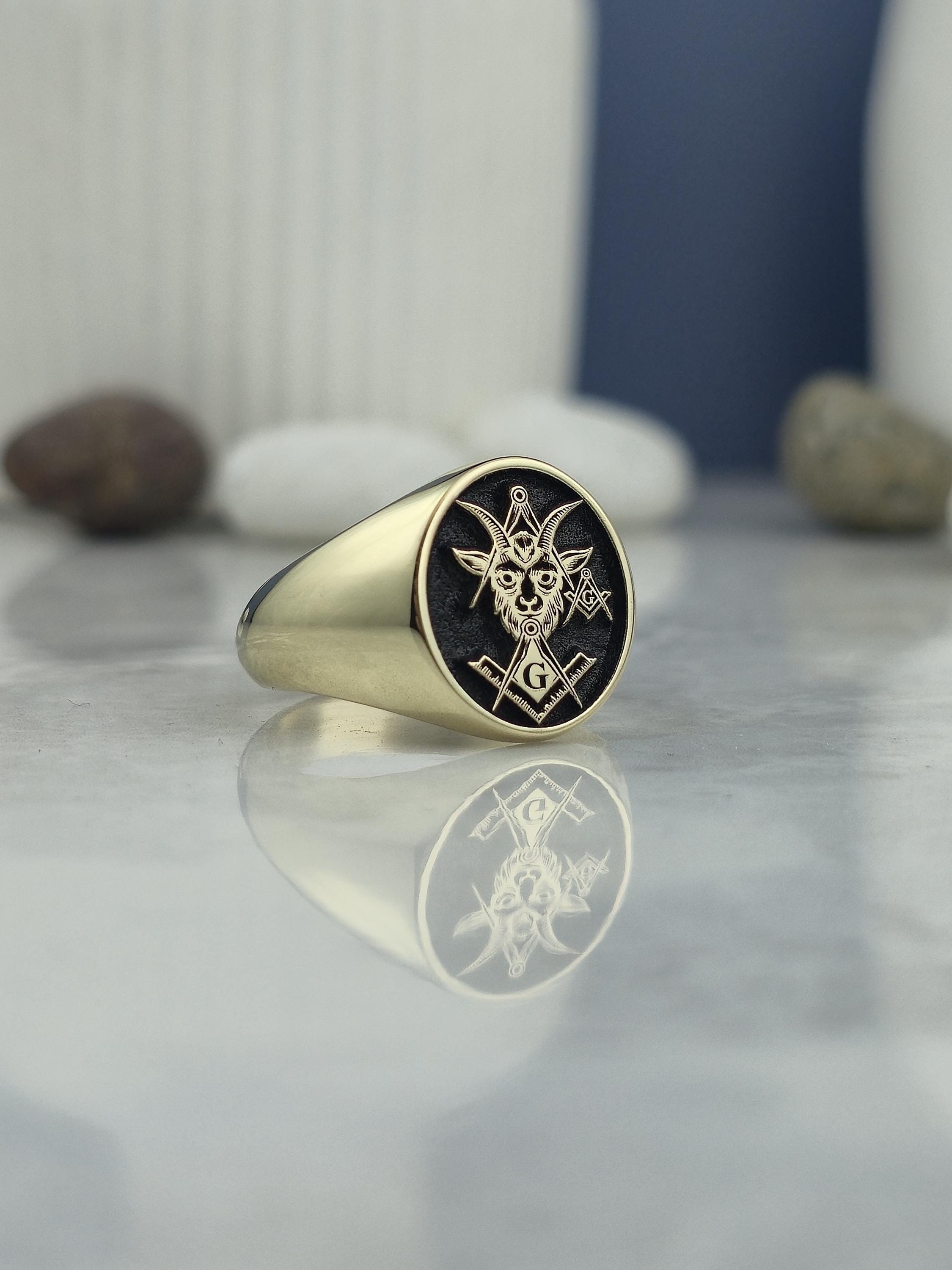 Baphomet Freemason Signet Ring: Gold Plated Sterling Silver Occult Jewelry