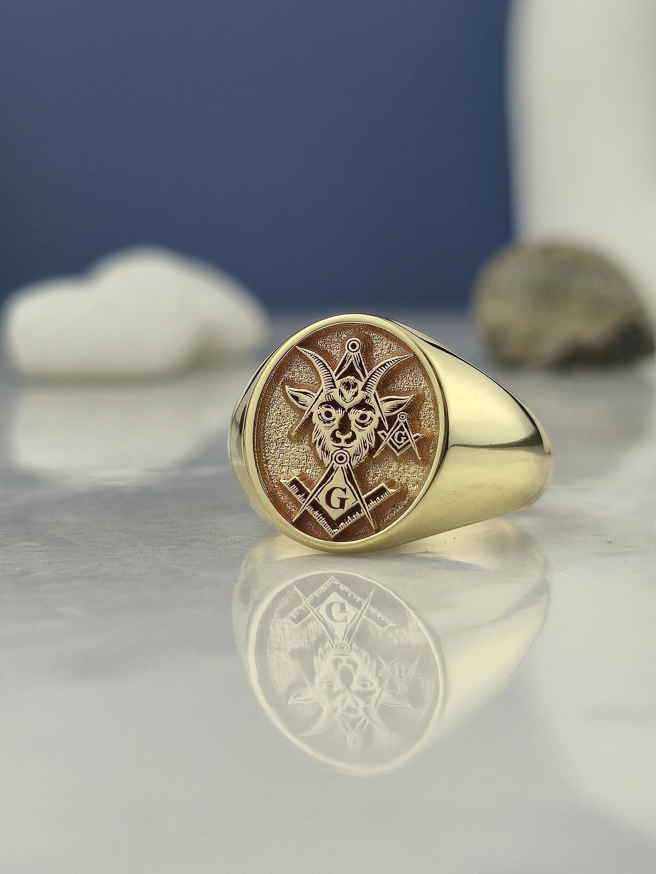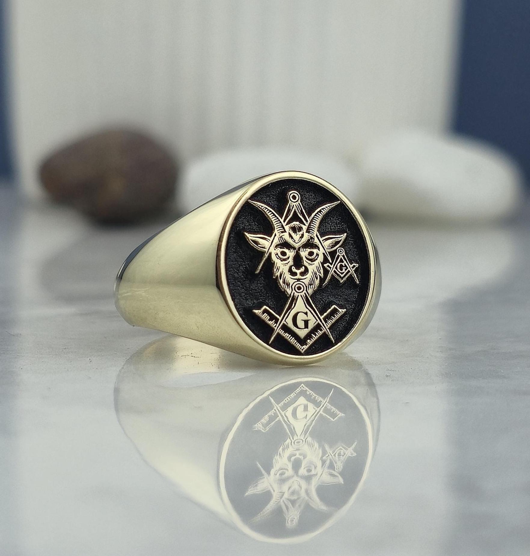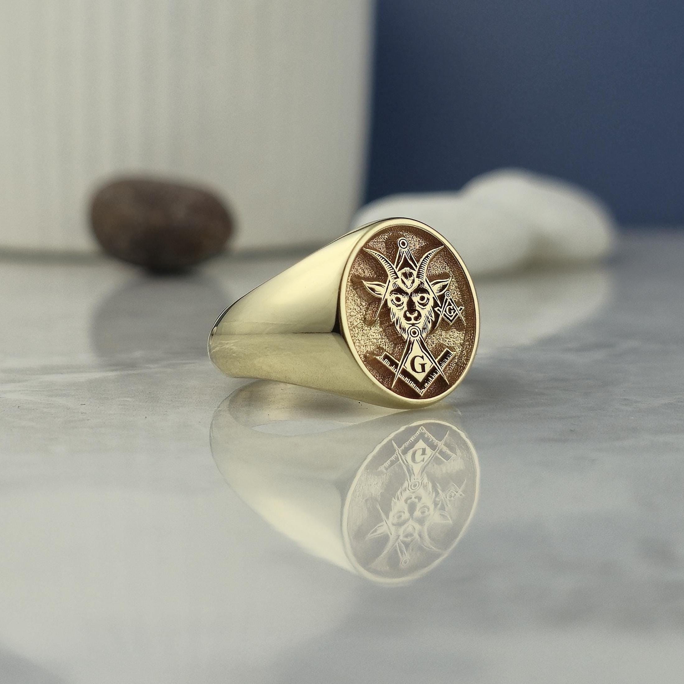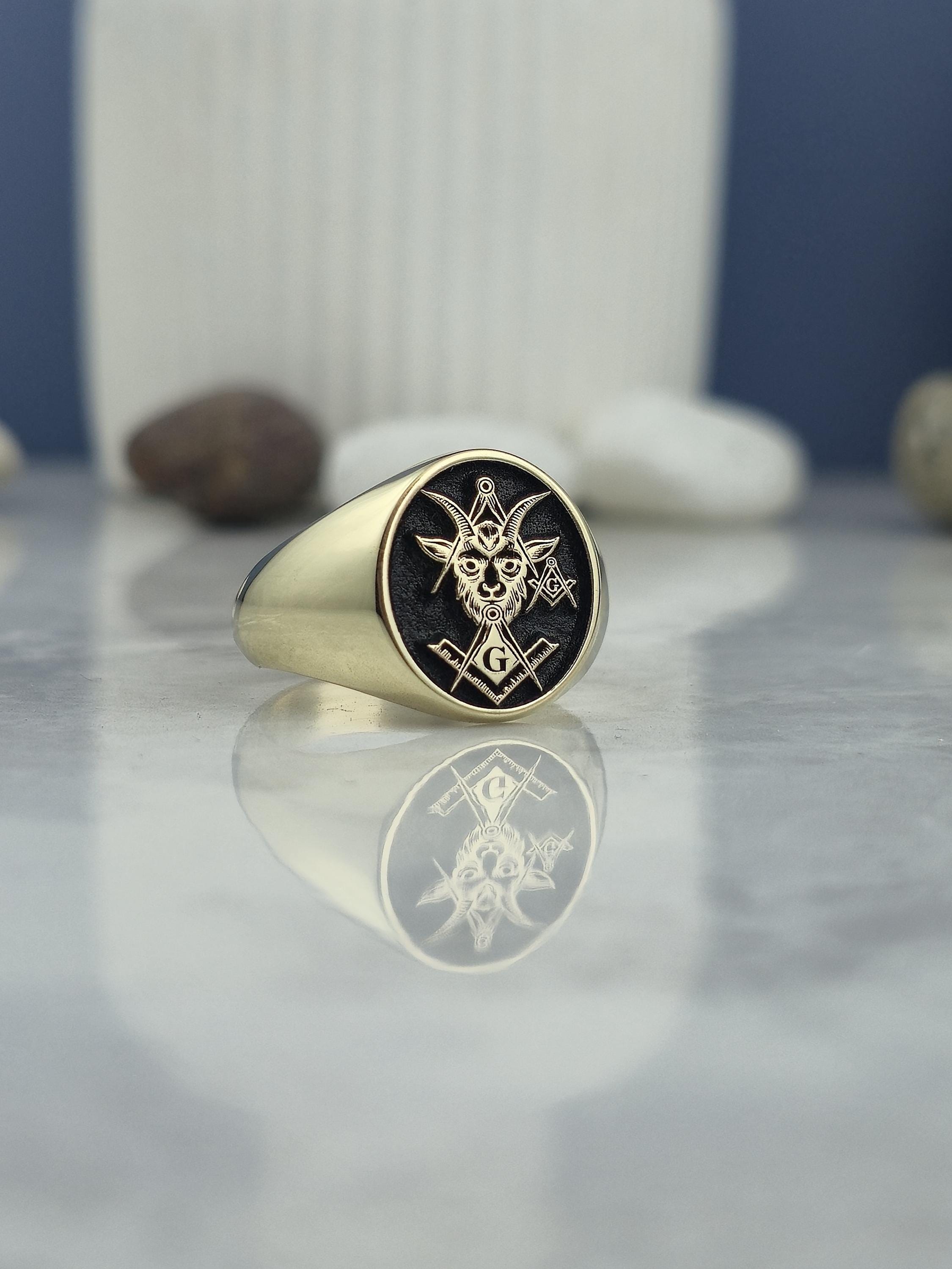 Baphomet Freemason Signet Ring: Gold Plated Sterling Silver Occult Jewelry
