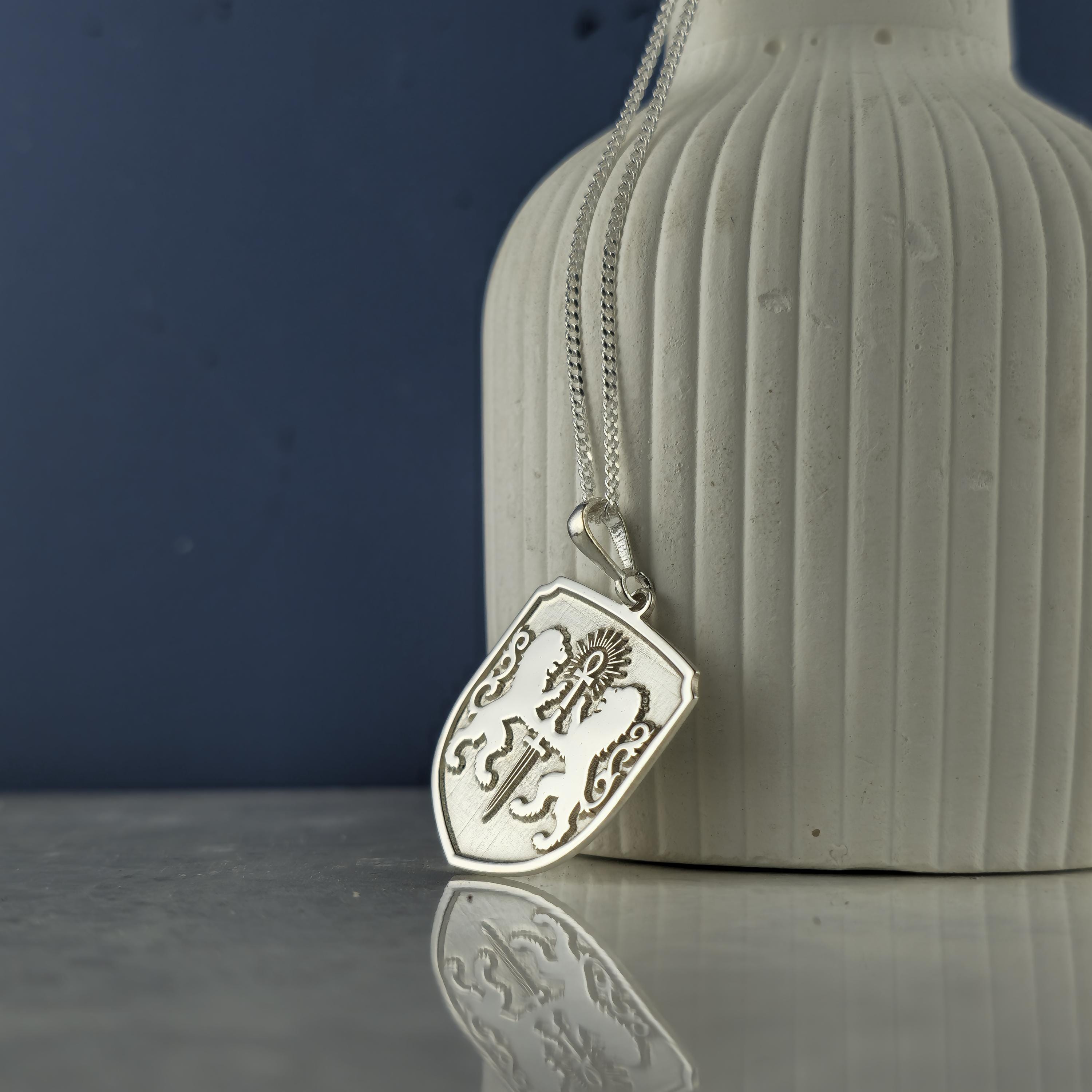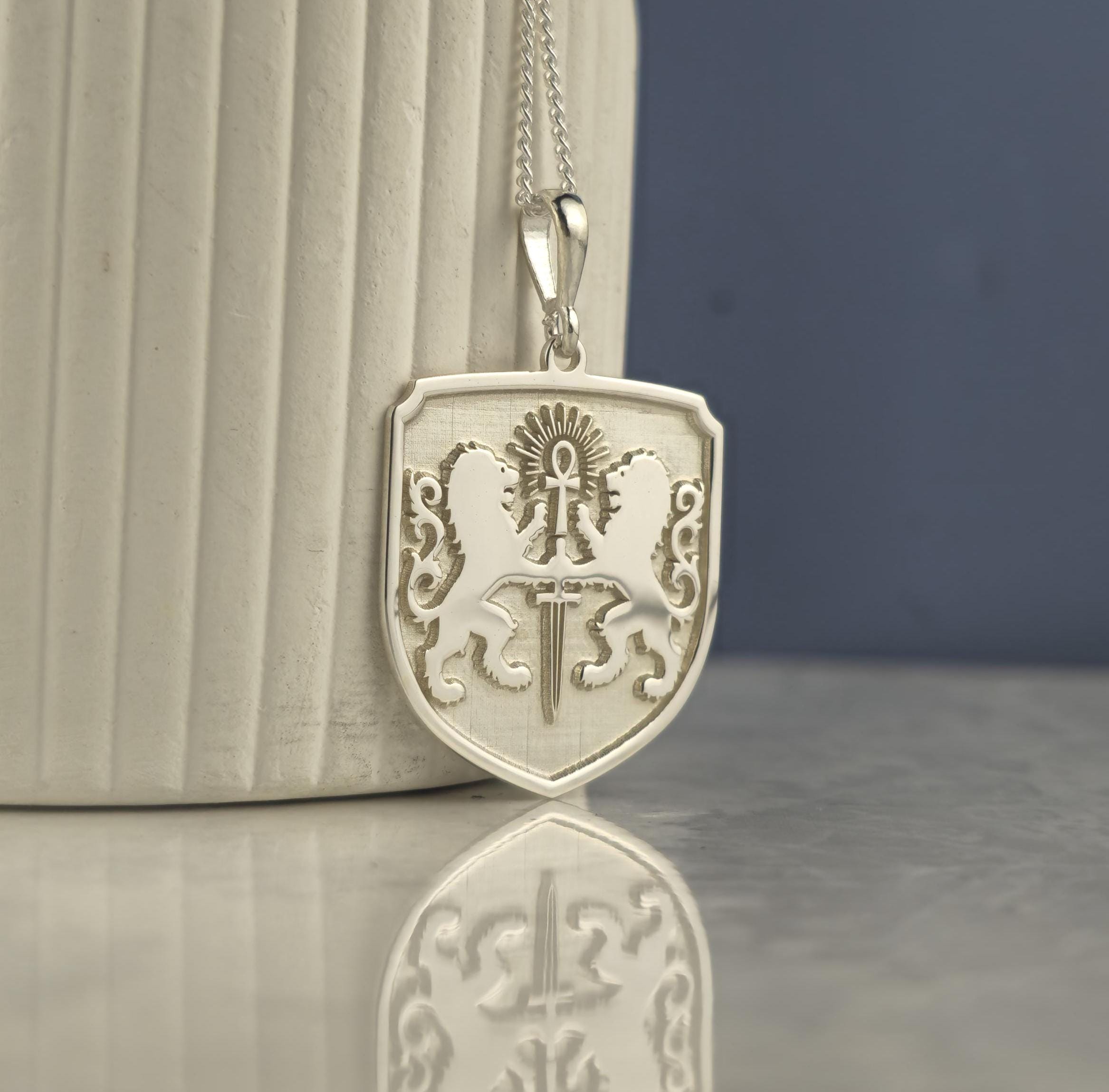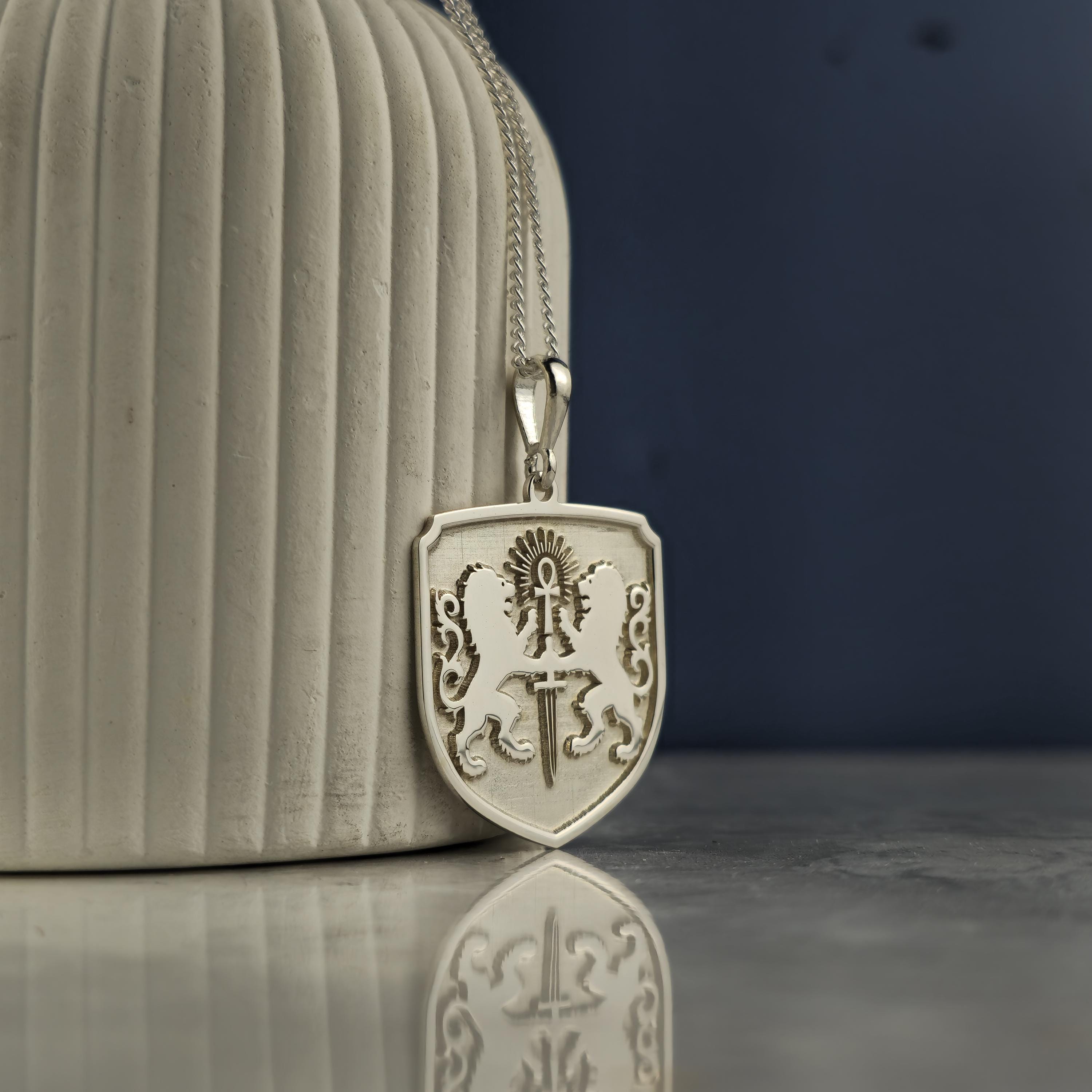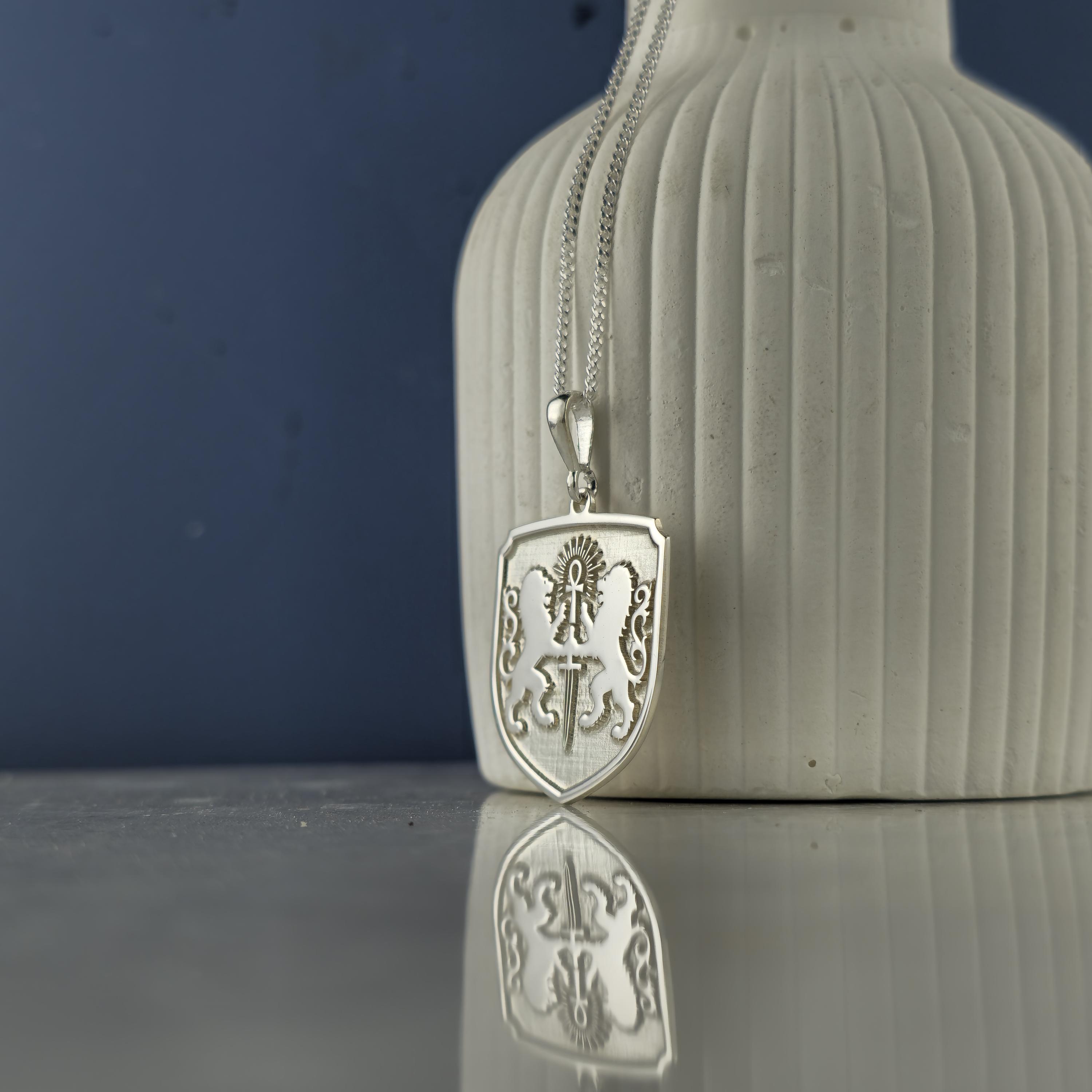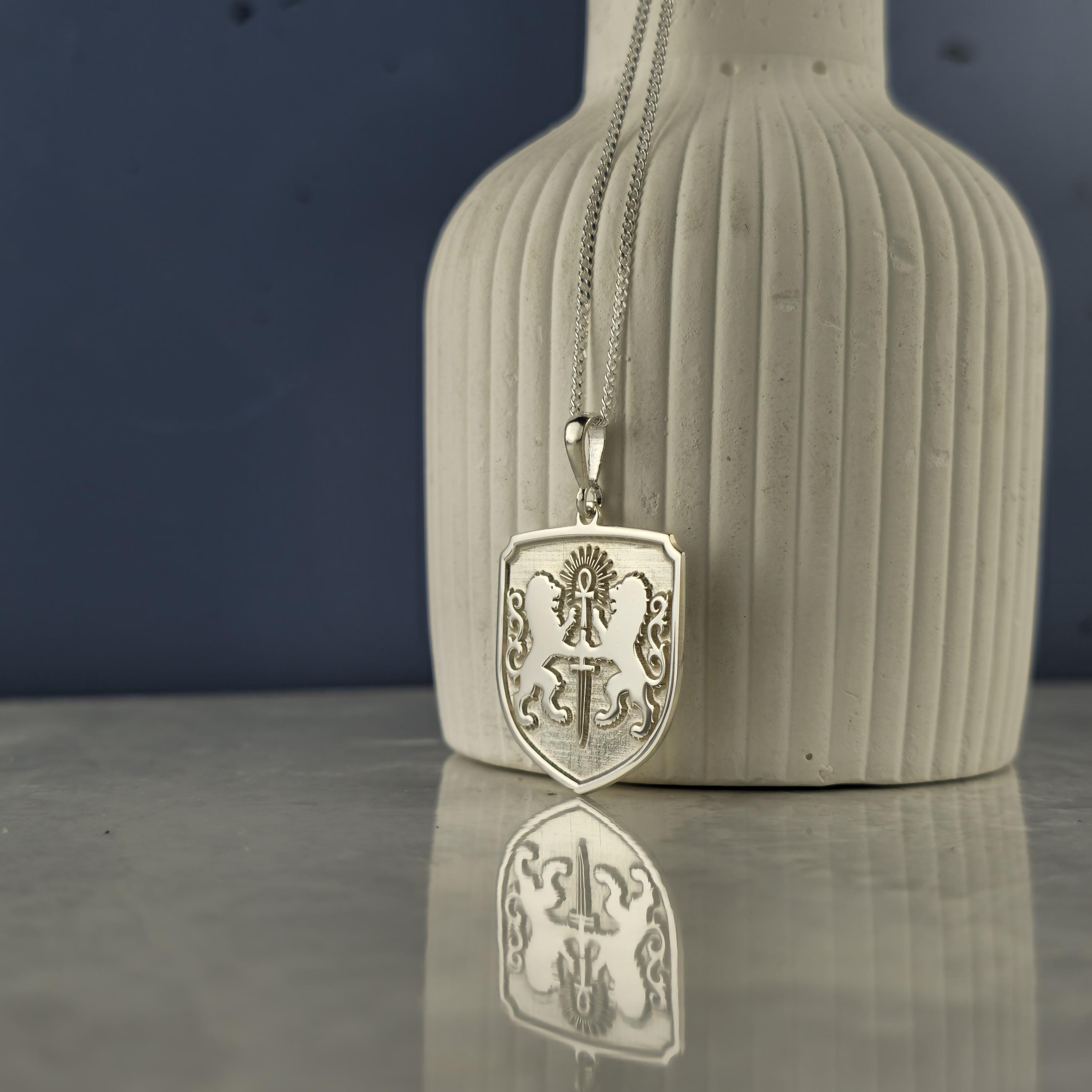 Whether you already have a family coat of arms or wish to create a personalized design with symbolic elements, we bring your history to life in wearable form. The shield-shaped pendant evokes tradition, power, and personal identity—making it an ideal gift for those who value their lineage or want to establish a new legacy.