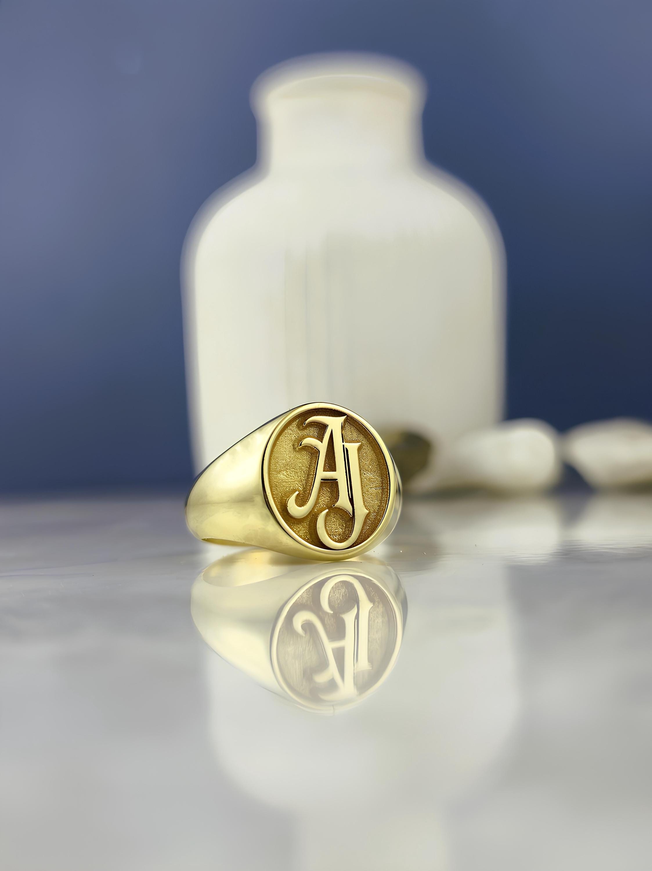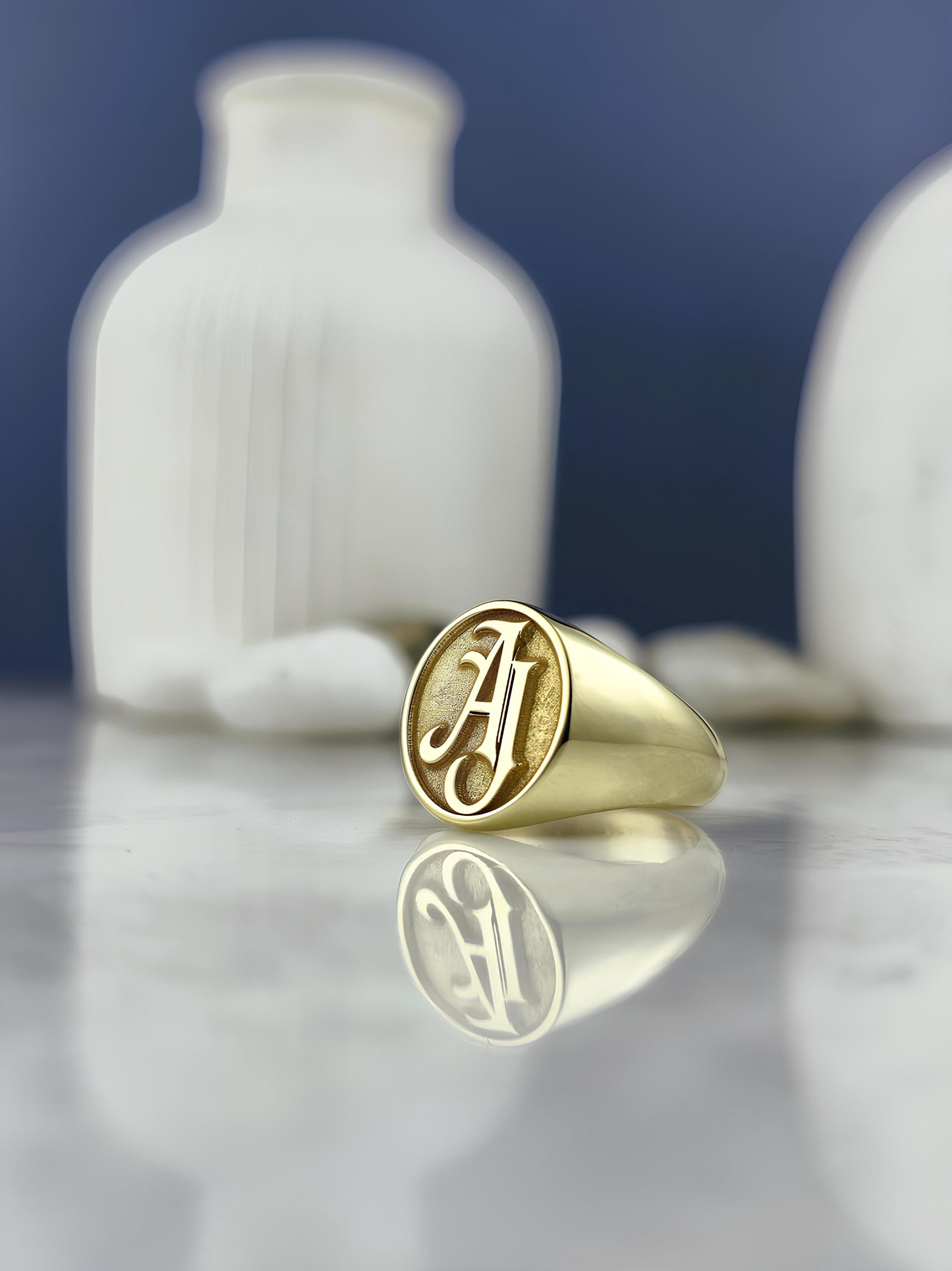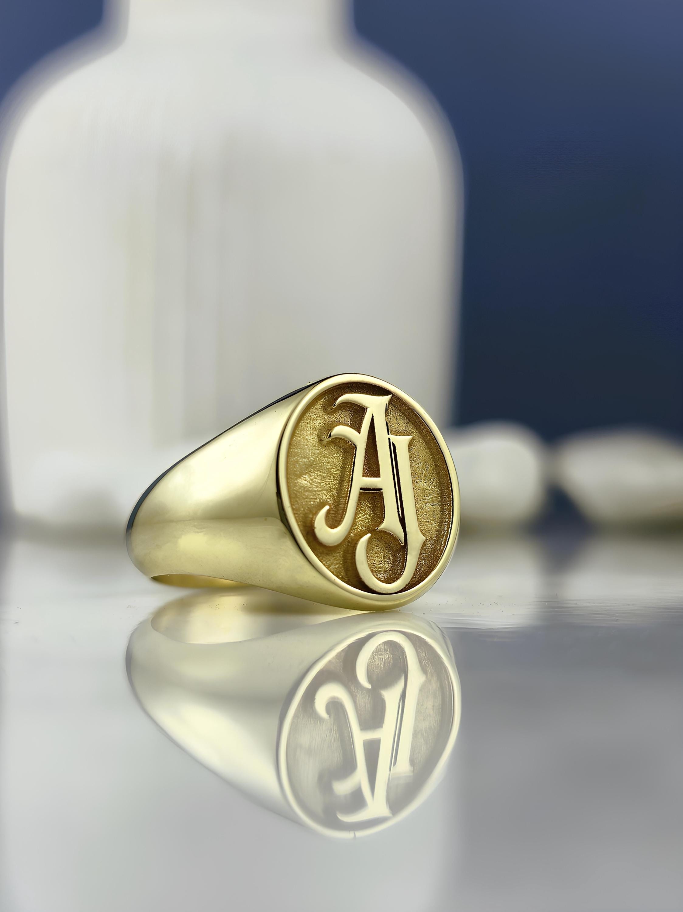 Personalized Initial Signet Ring: Engraved Monogram, Sterling Silver or Gold