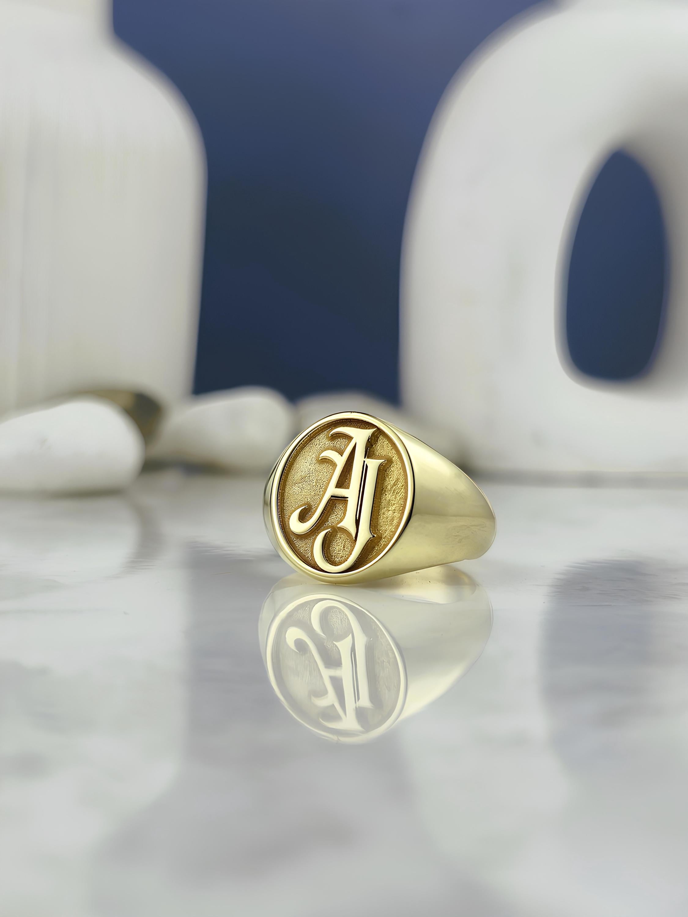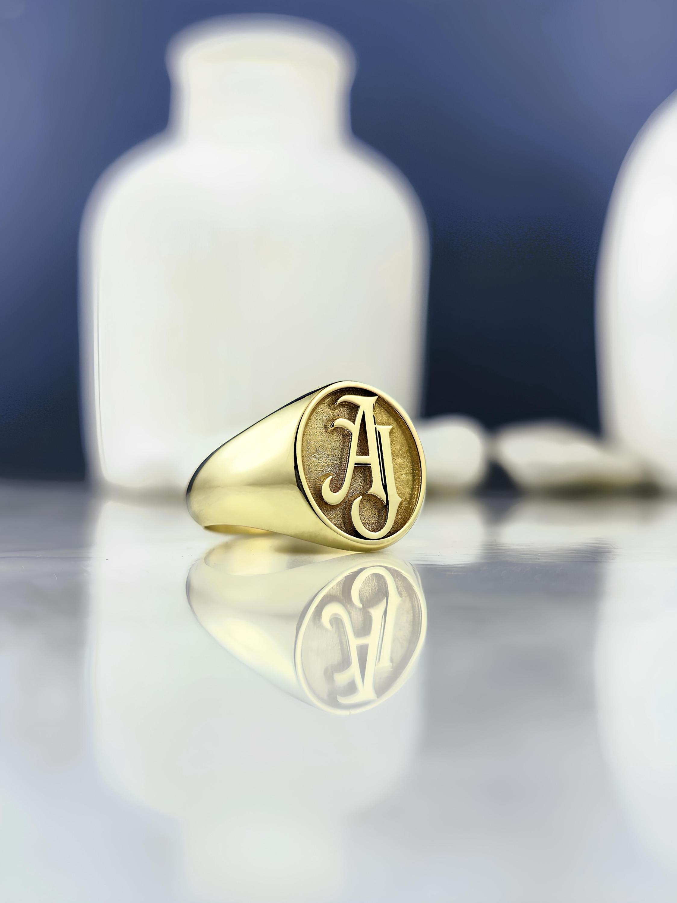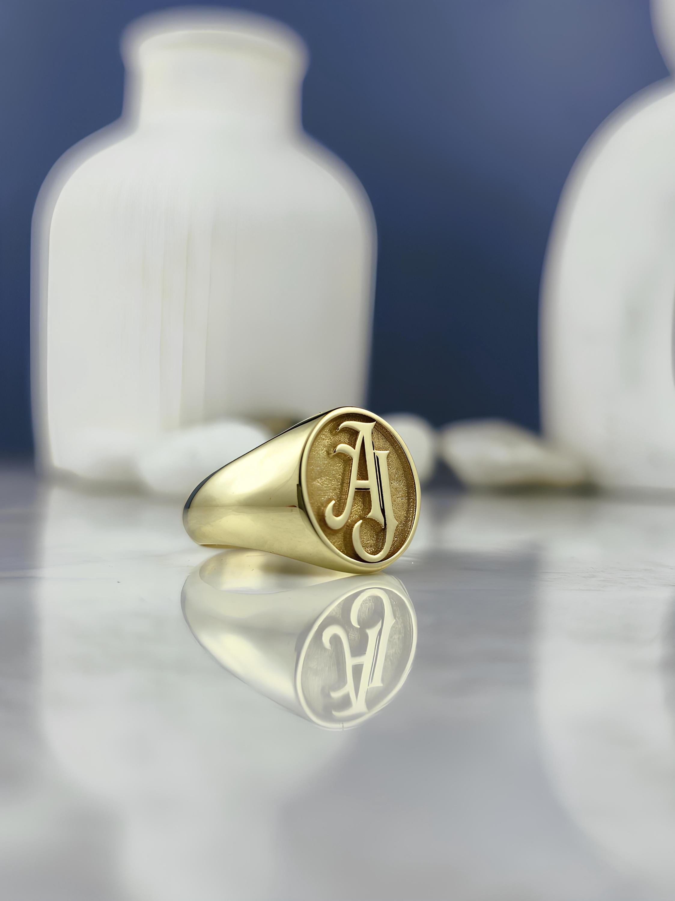 Personalized Initial Signet Ring: Engraved Monogram, Sterling Silver or Gold
