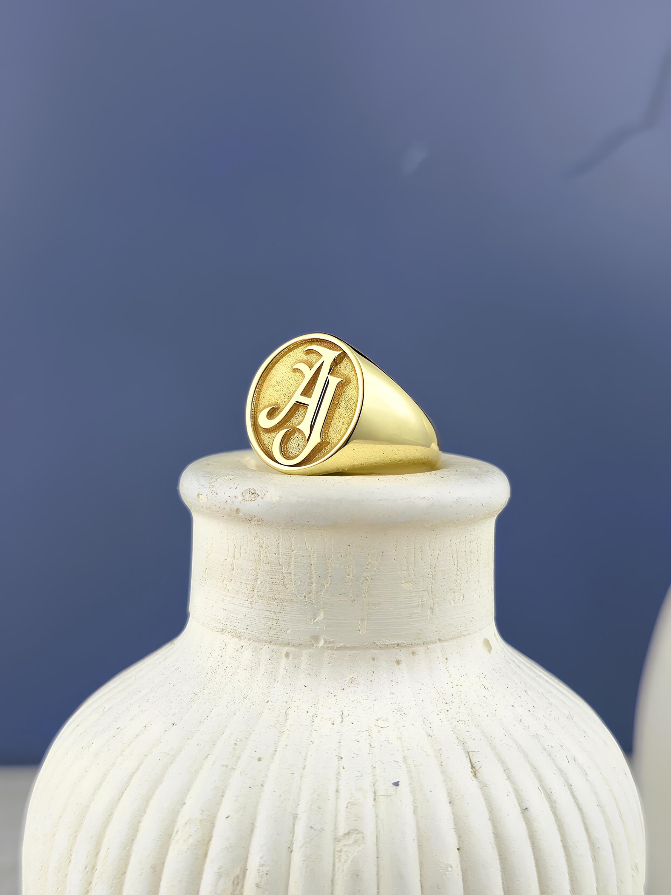 This personalized monogram signet ring ✨ is a timeless piece of jewelry that blends elegance and individuality. Each ring is handcrafted with care 🛠️, customized with the initials of your choice, and made to last for generations. Available in sterling silver 💍, vermeil, gold plated, or solid 10k, 14k, and 18k gold 🌟, this versatile piece offers both durability and luxury. The bold yet refined engraved initials 🔠 transform this signet ring into a meaningful keepsake that represents love, family, and personal style. Designed as a unisex accessory 👩❤️👨, it is perfect for daily wear, stacking with other rings, or saving for special occasions. Whether you are searching for a thoughtful gift for her 🎁, a stylish gift for him 🎁, or a unique anniversary gift ❤️, this monogram signet ring makes an unforgettable choice. Each order arrives in a beautifully prepared box 🎀, ready to surprise your loved one.