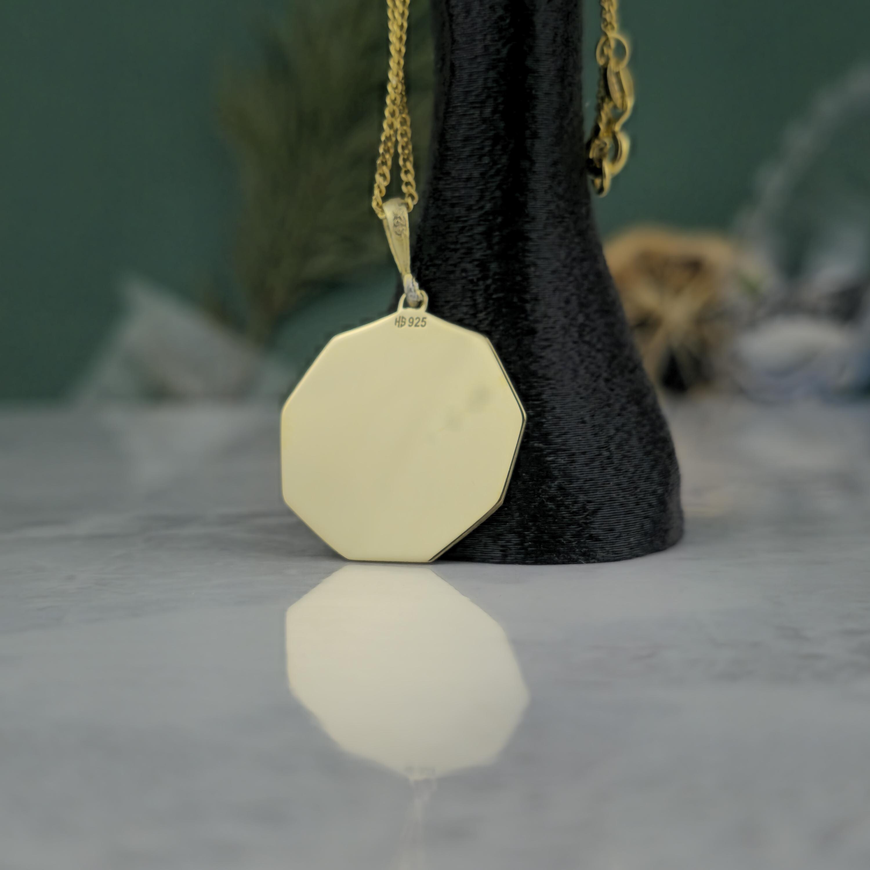 All Seeing Eye Octagon Pendant Necklace – Gold Plated 925 Sterling Silver