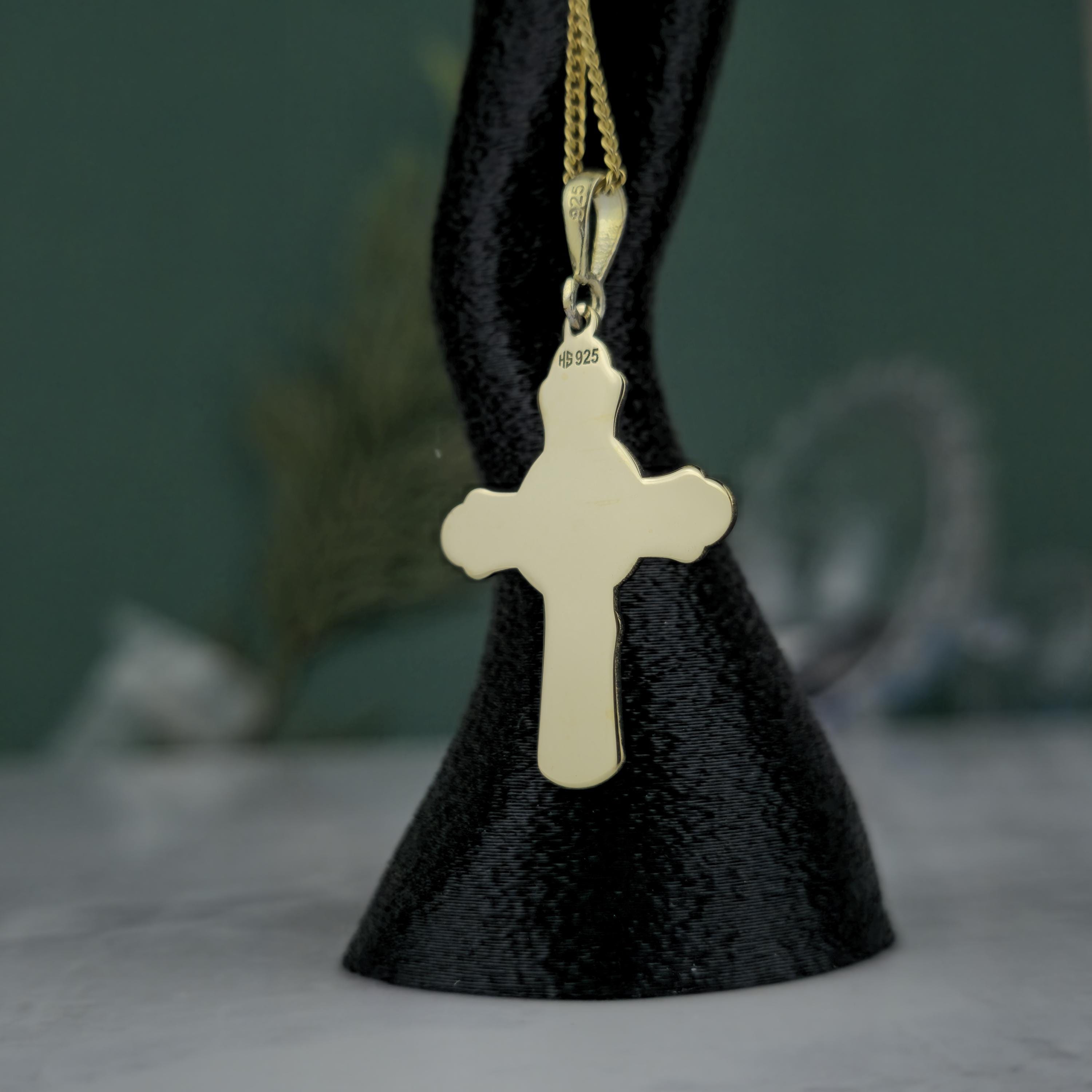 Virgin Mary Cross Necklace – Gold Plated Sterling Silver Pendant
