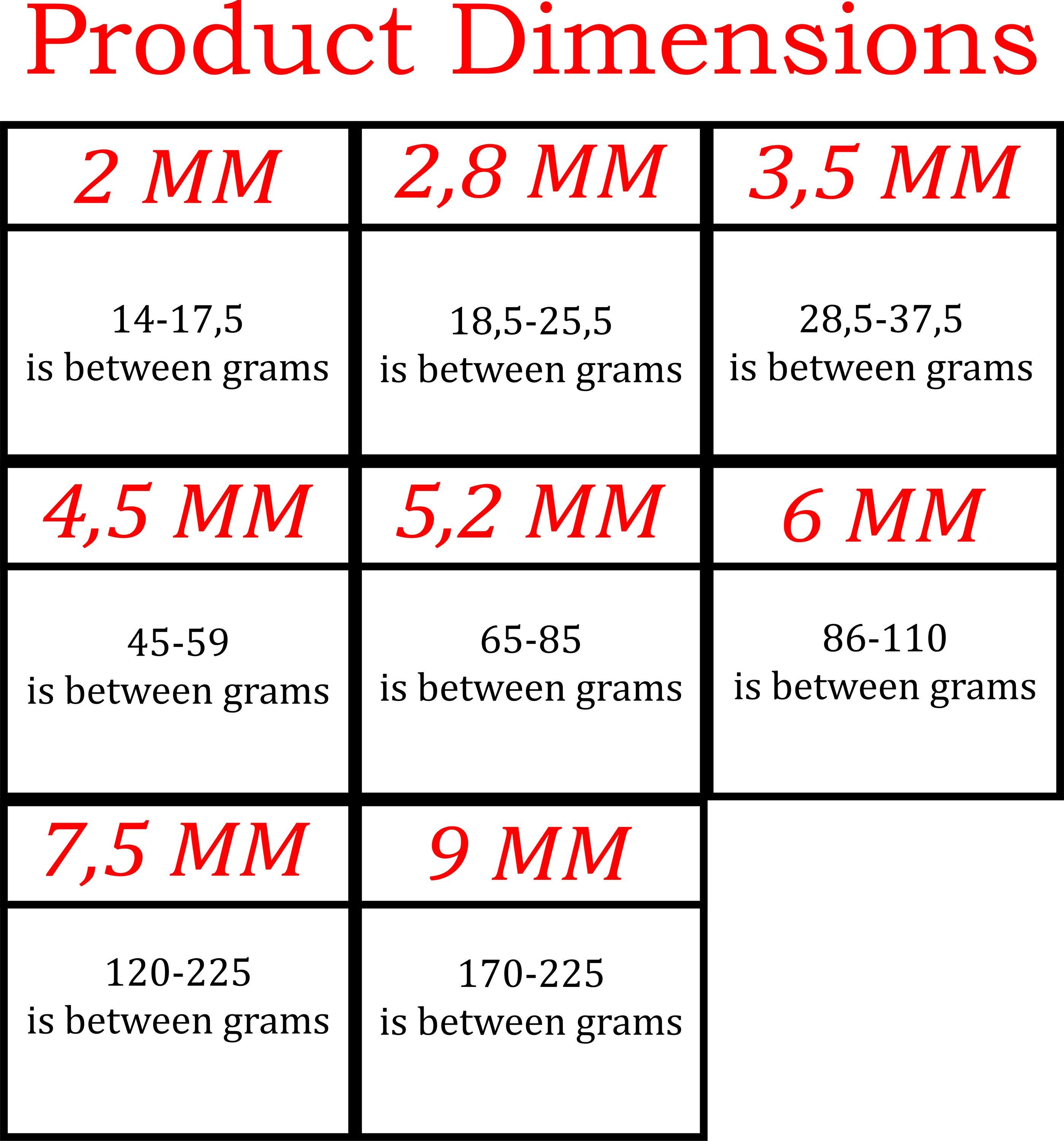 Weights are approximate; actual weight depends on the chosen length (e.g., 50–70 cm). You can contact us for a custom calculation.