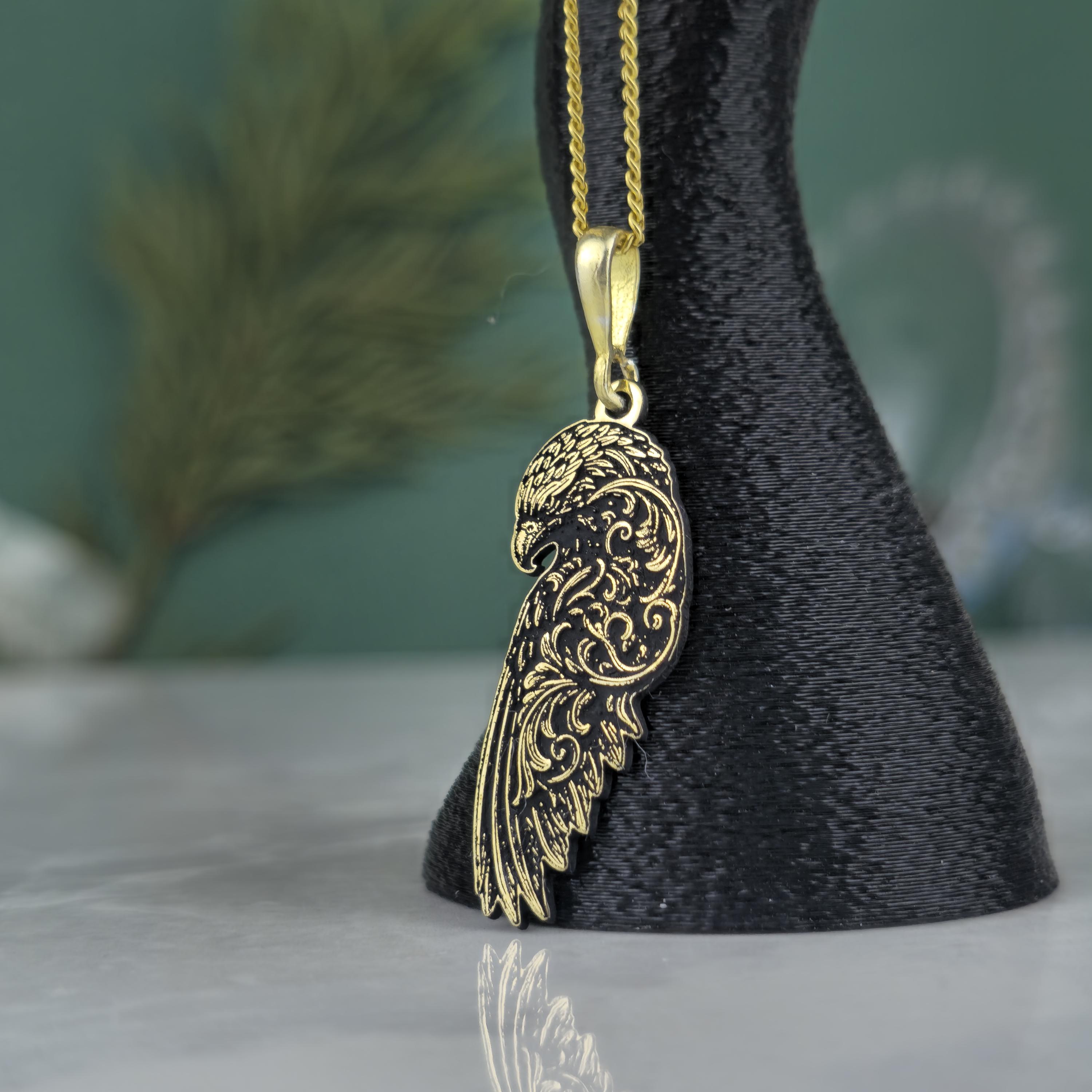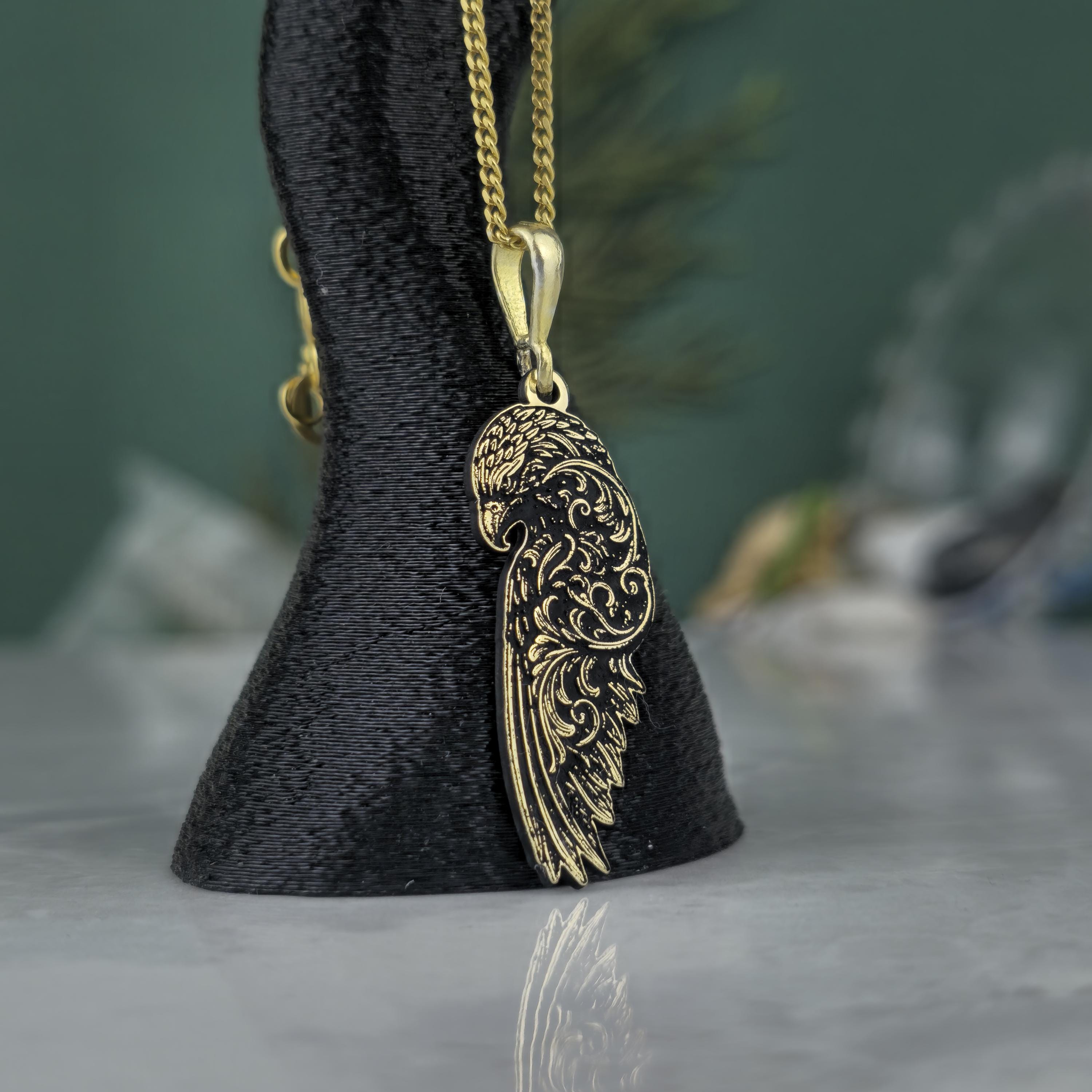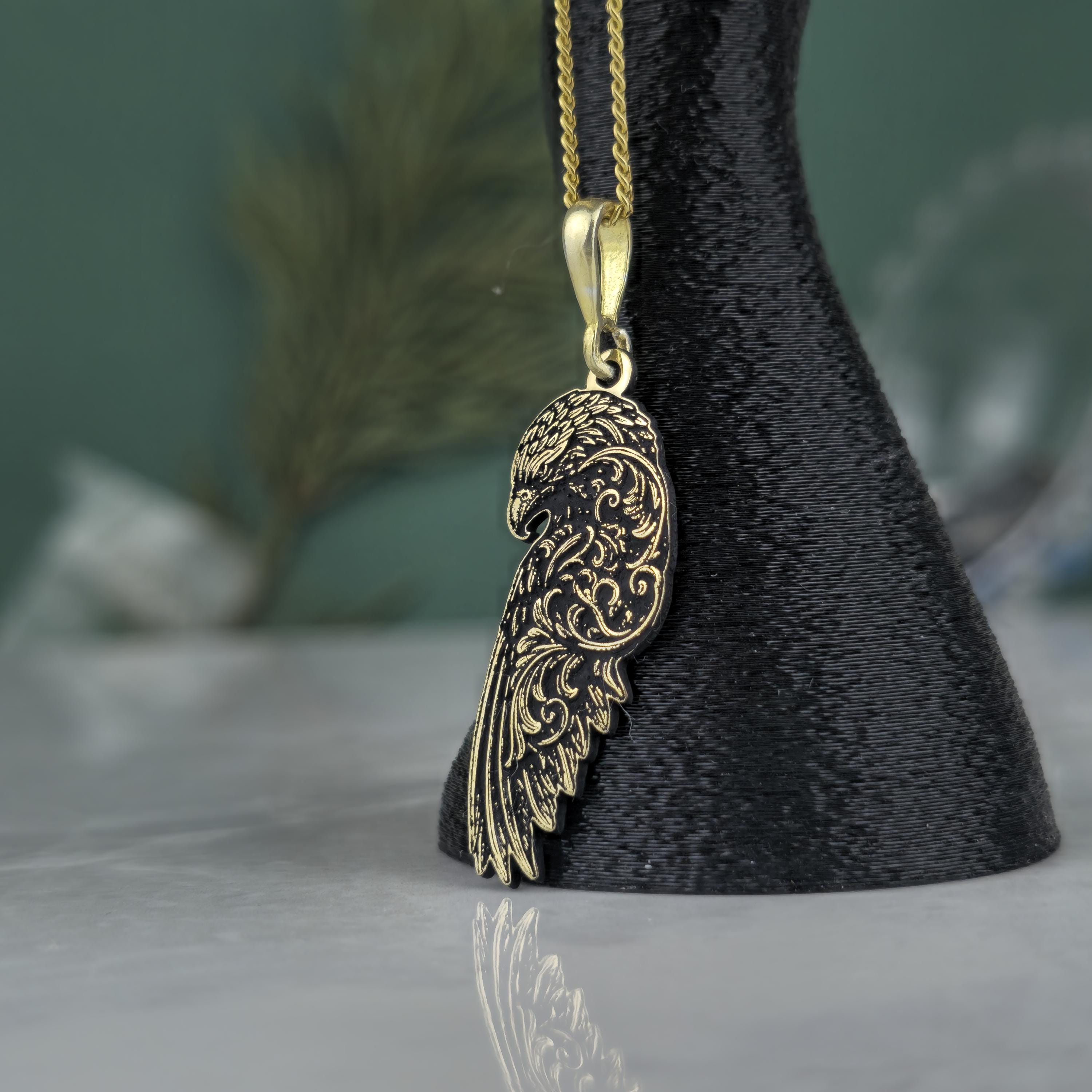 Unleash the spirit of the Norse legends with this Viking Raven Wing Pendant, inspired by the ancient symbols of courage, freedom, and divine guidance. Crafted from 925 sterling silver and finished with rich gold plating, this pendant features detailed scrollwork reminiscent of Valkyries and Odin’s ravens, making it a meaningful amulet for strength, wisdom, and protection.