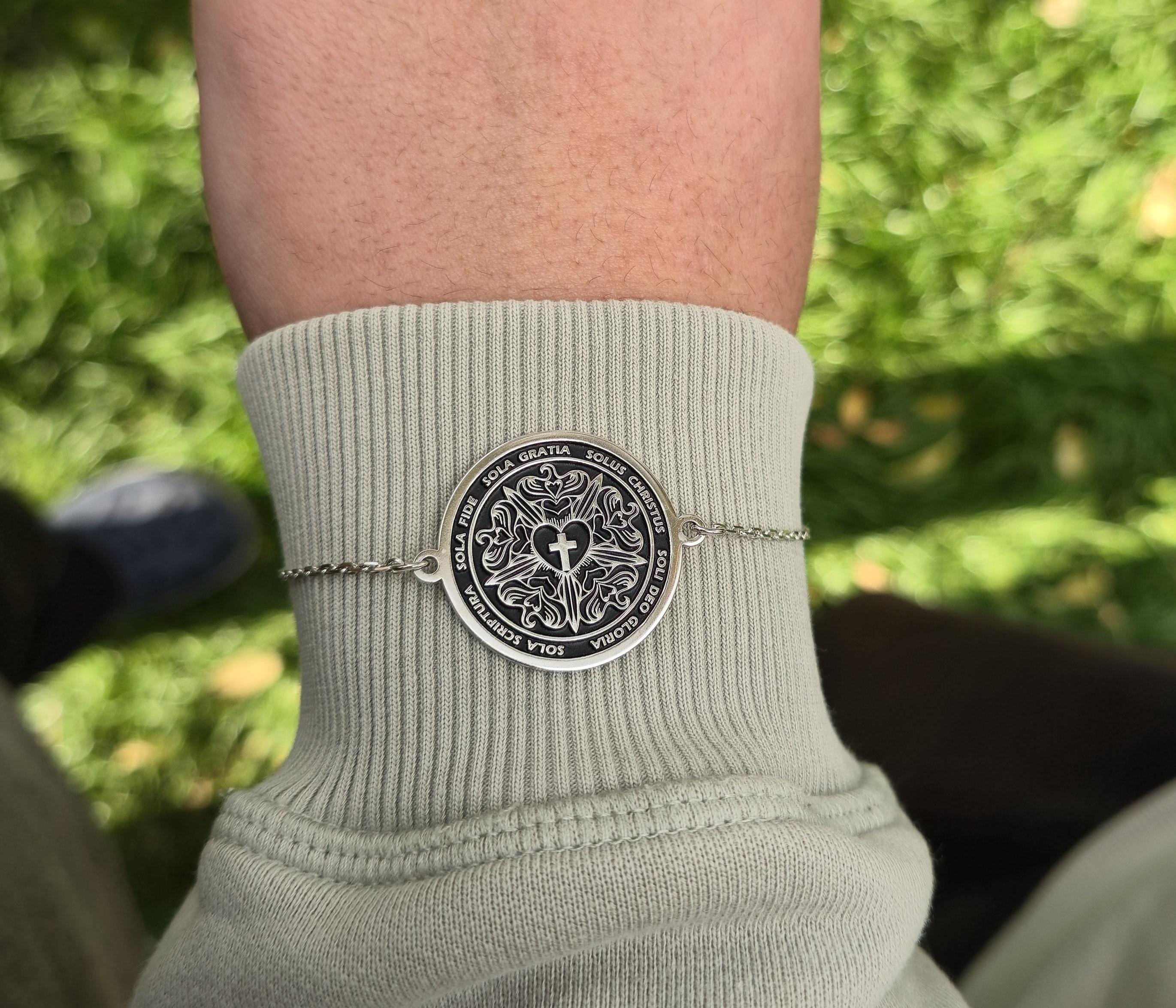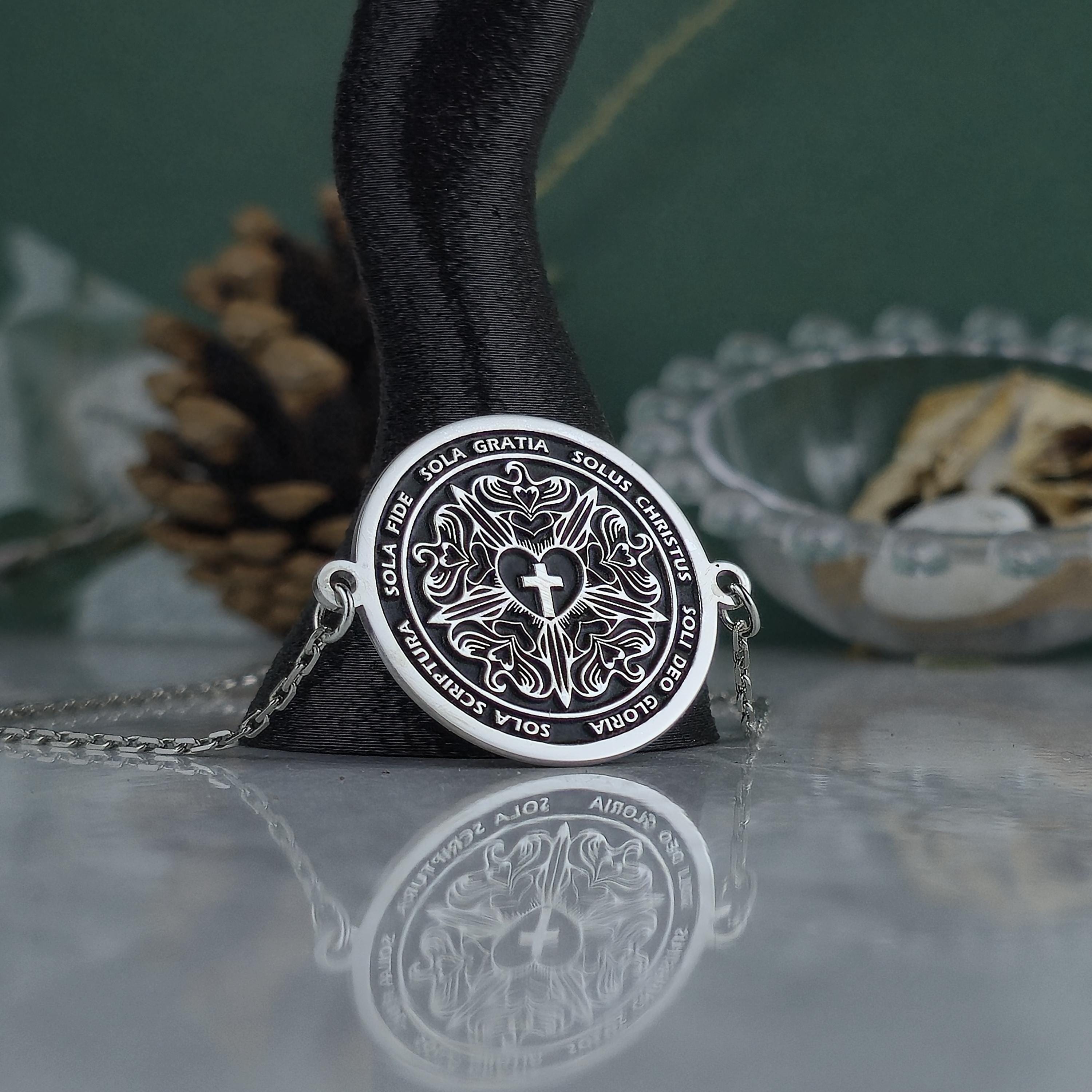 Sola Bracelet 925 Sterling Silver • Luther Rose Symbol Bracelet • Five Solas Reformation Jewelry • Christian Faith Gift for Him or Her