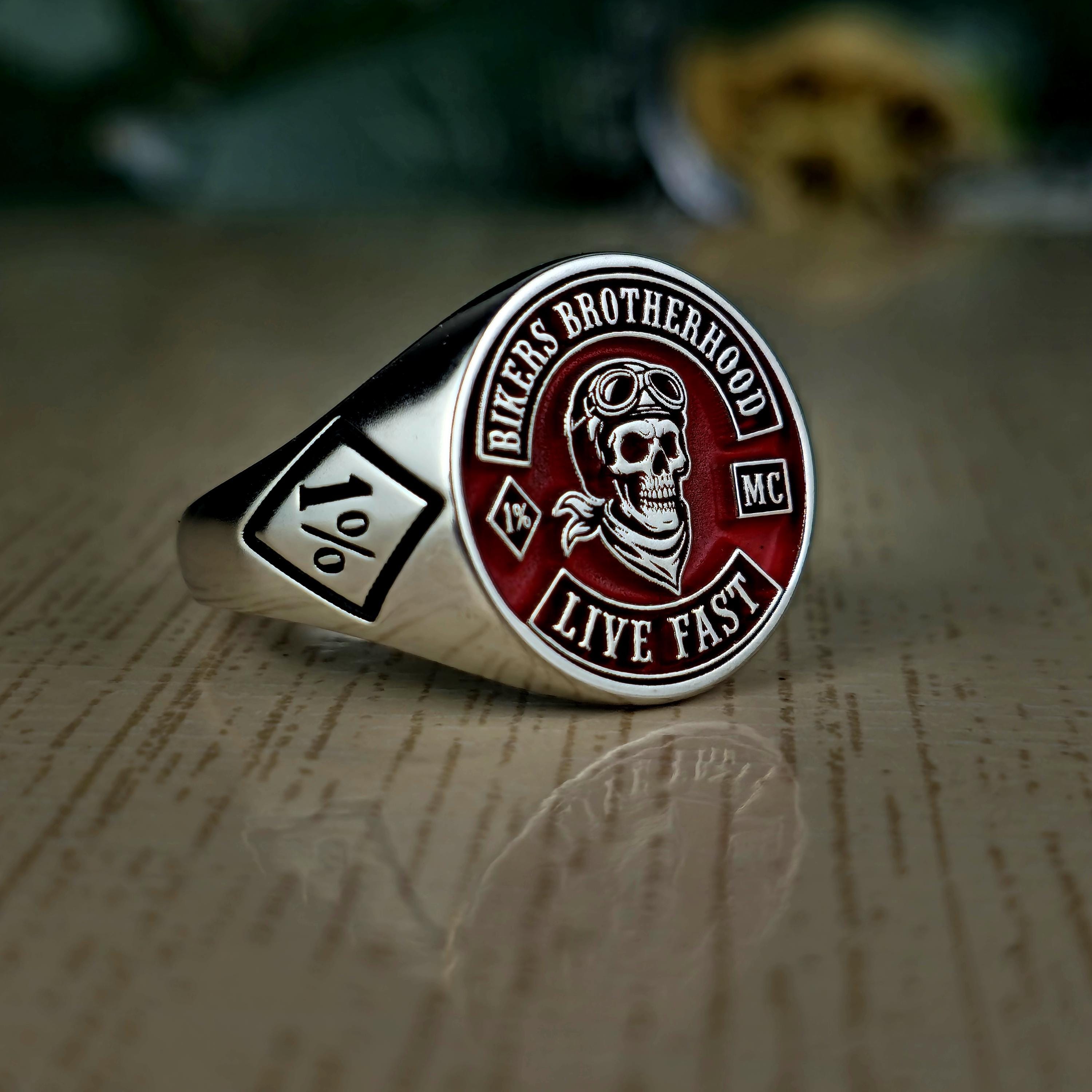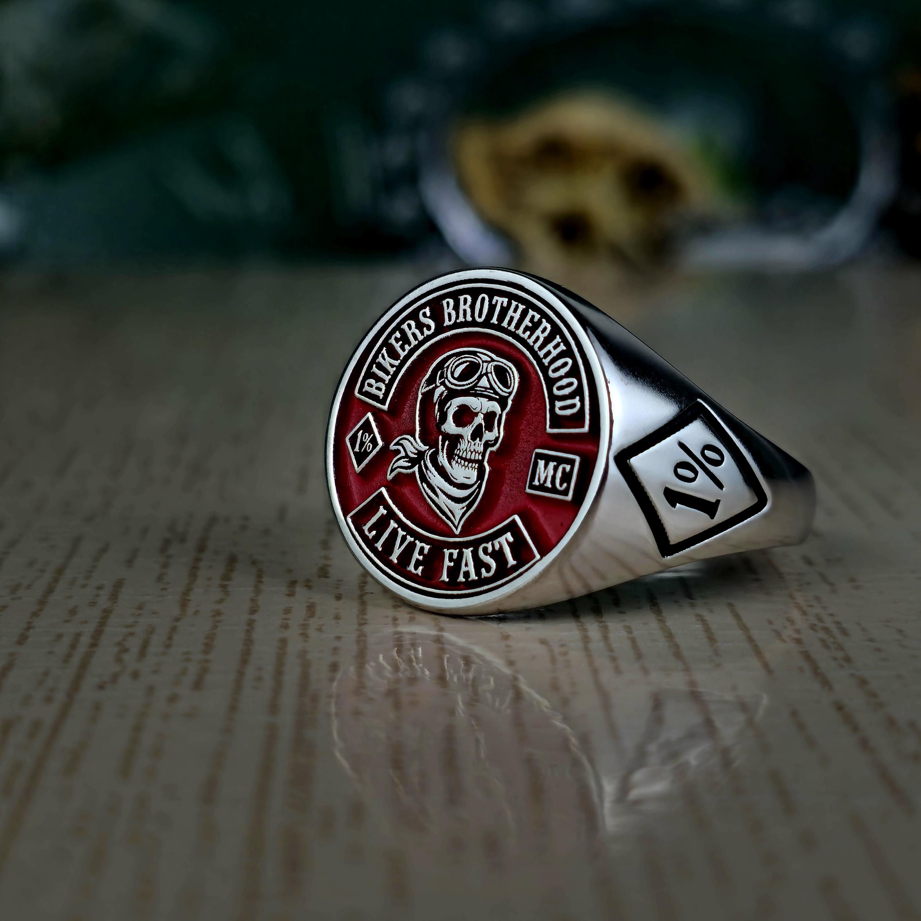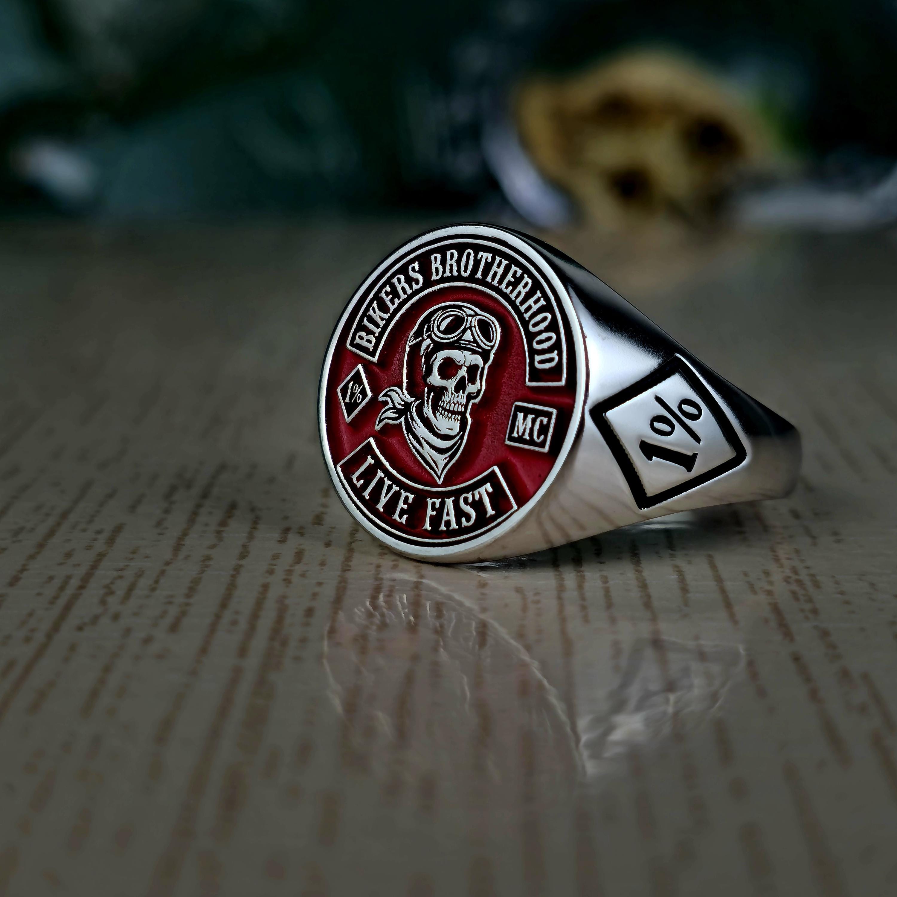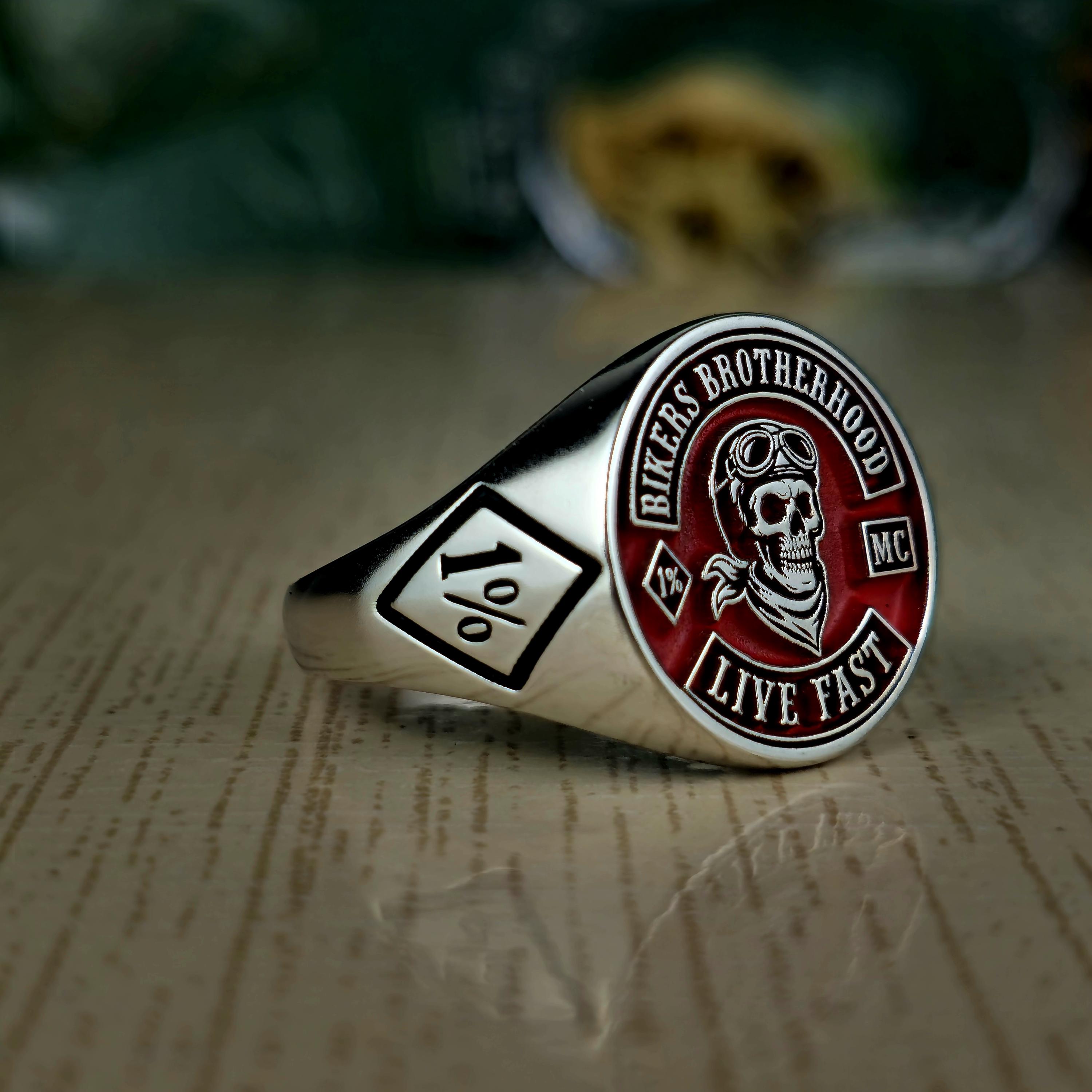 Biker Brotherhood Ring • 1% Outlaw Motorcycle Club Jewelry • Sterling Silver Skull Biker Signet Ring • Live Fast Moto Ring Gift • 925 silver
