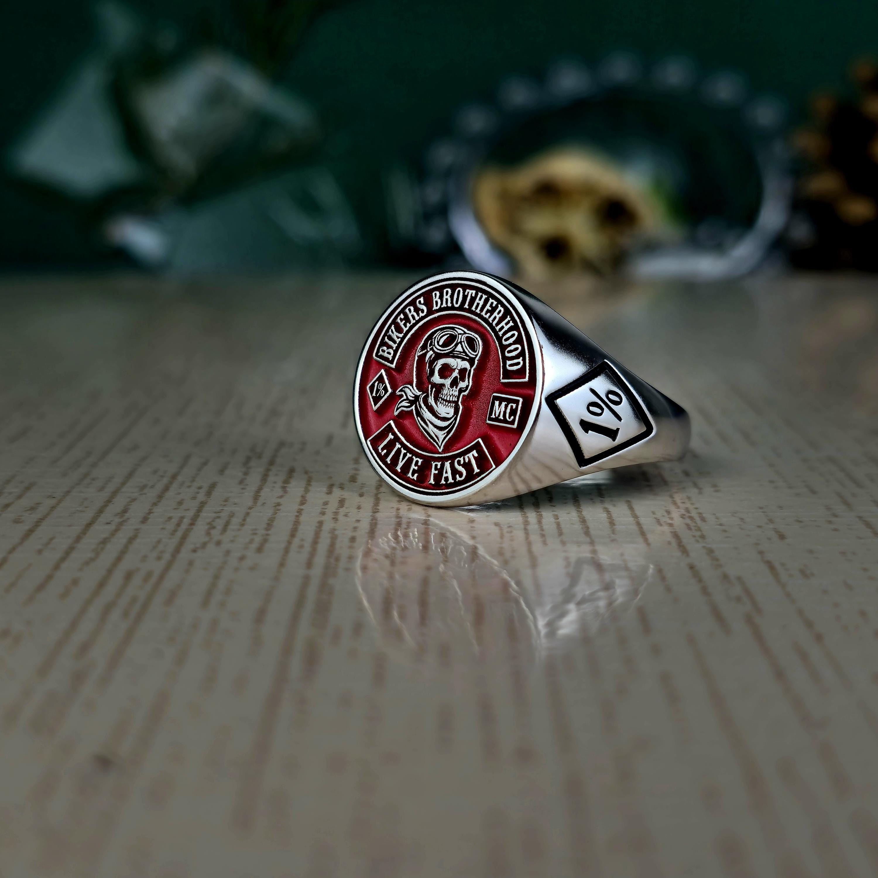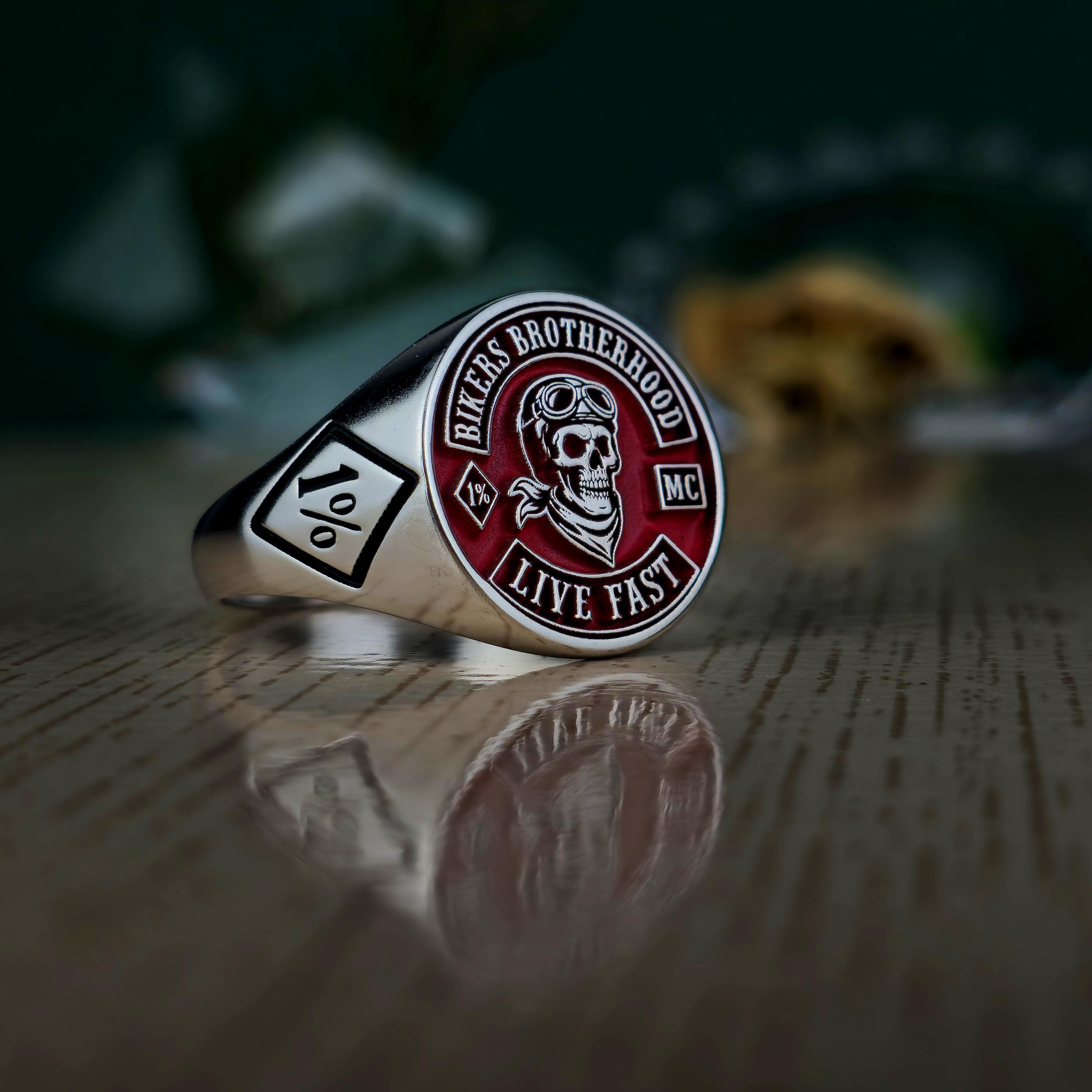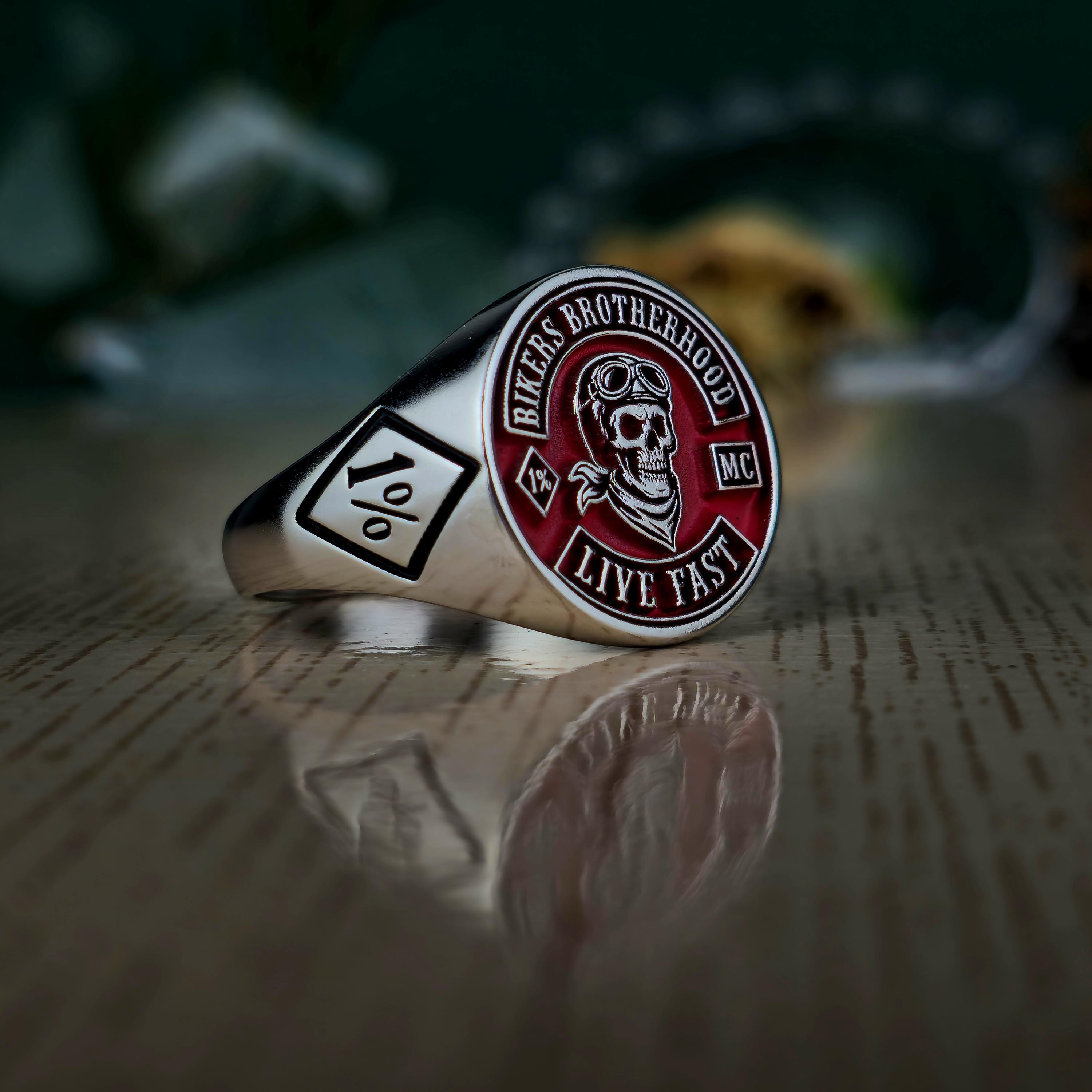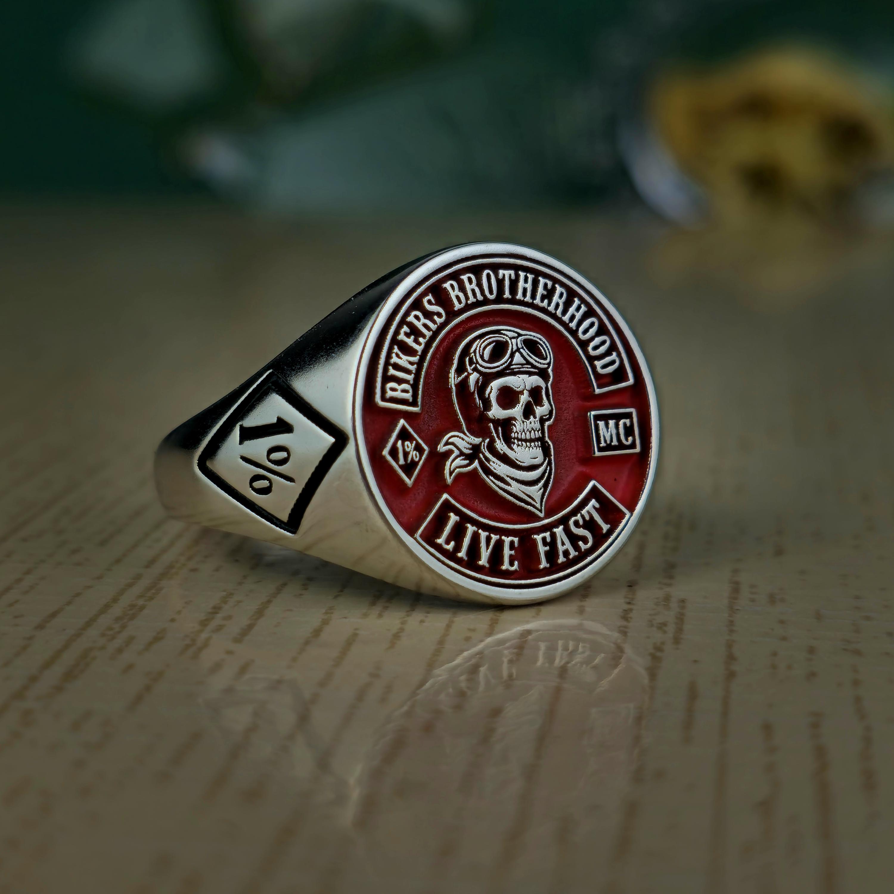 Biker Brotherhood Ring • 1% Outlaw Motorcycle Club Jewelry • Sterling Silver Skull Biker Signet Ring • Live Fast Moto Ring Gift • 925 silver
