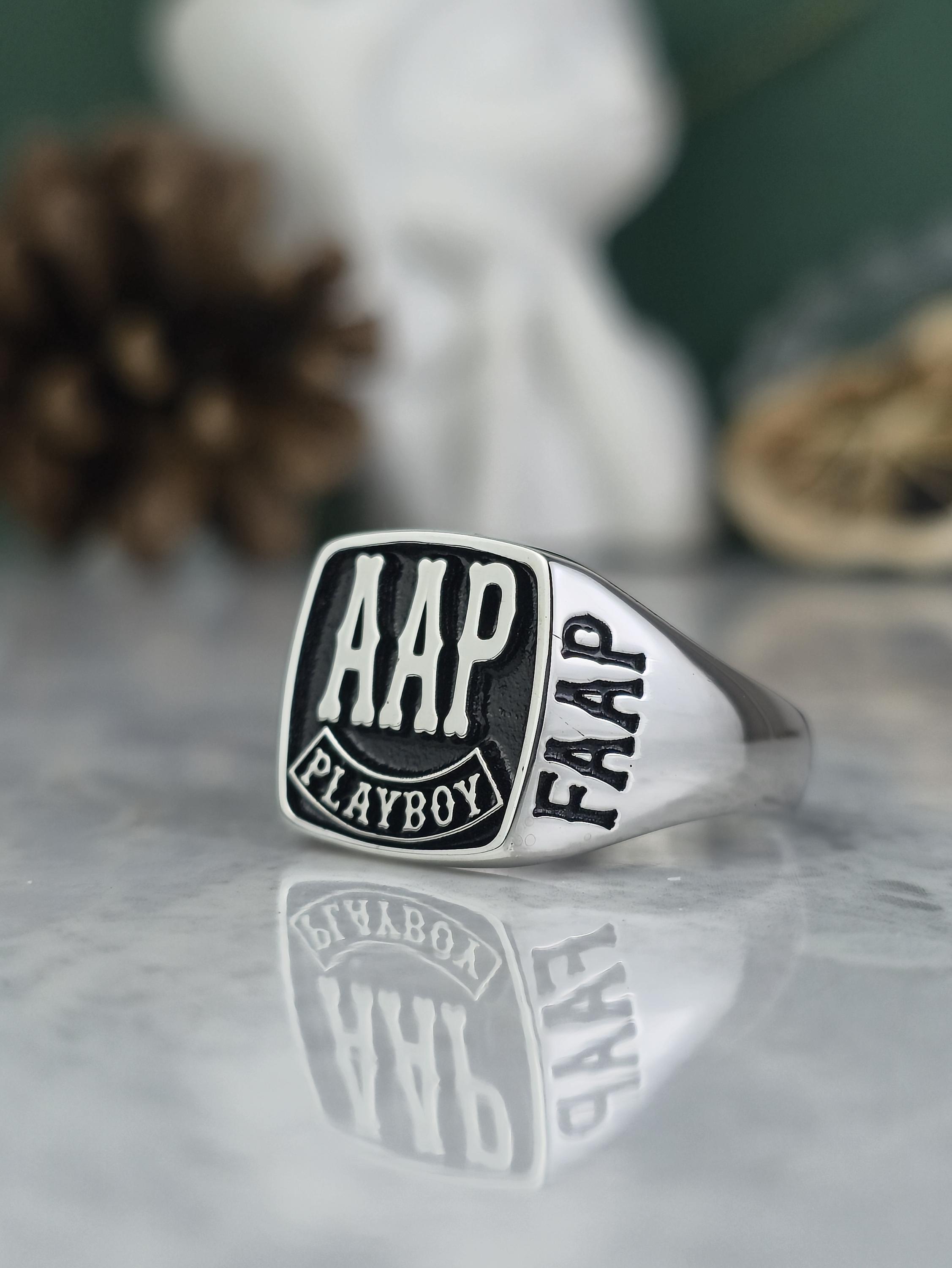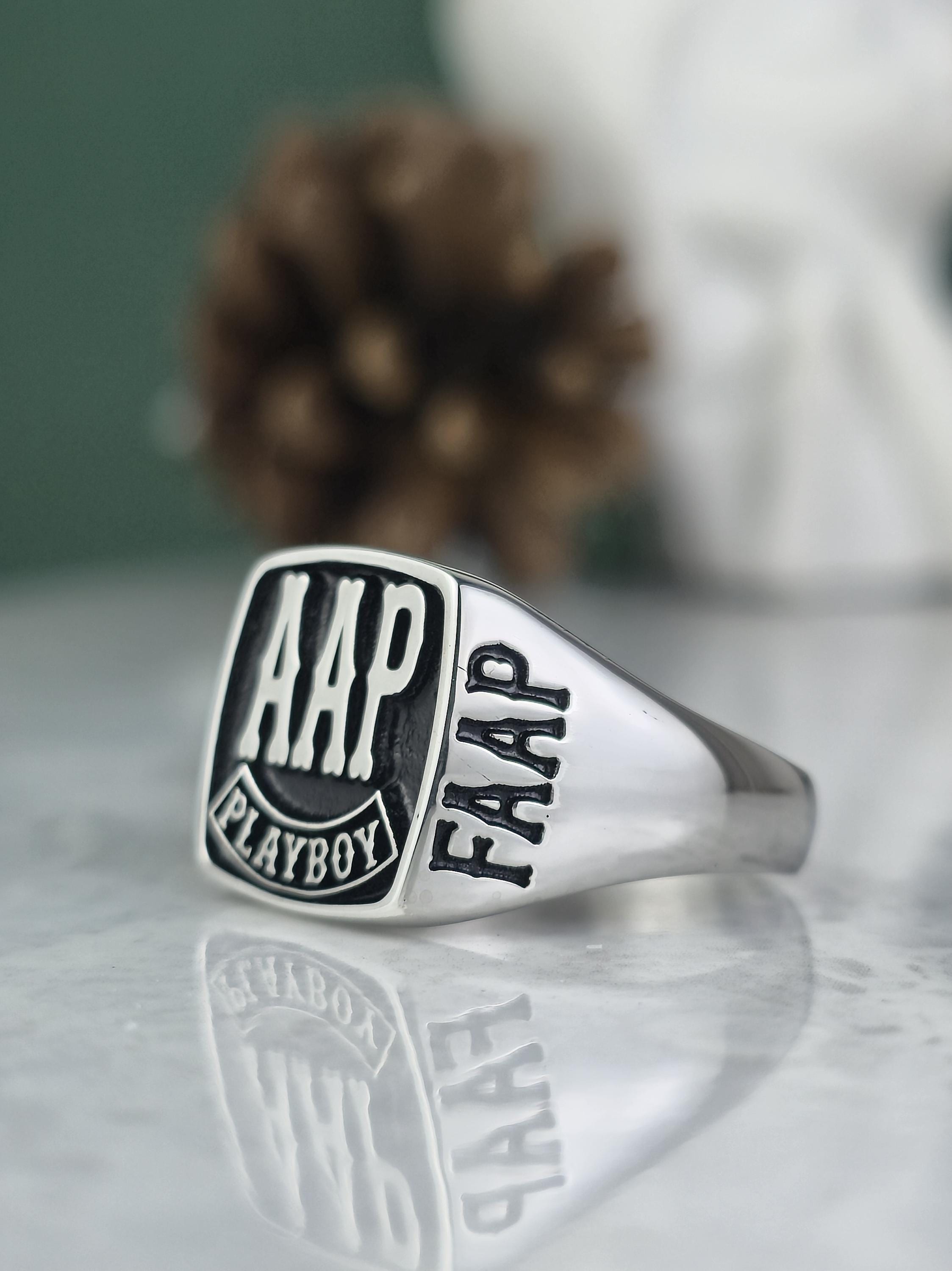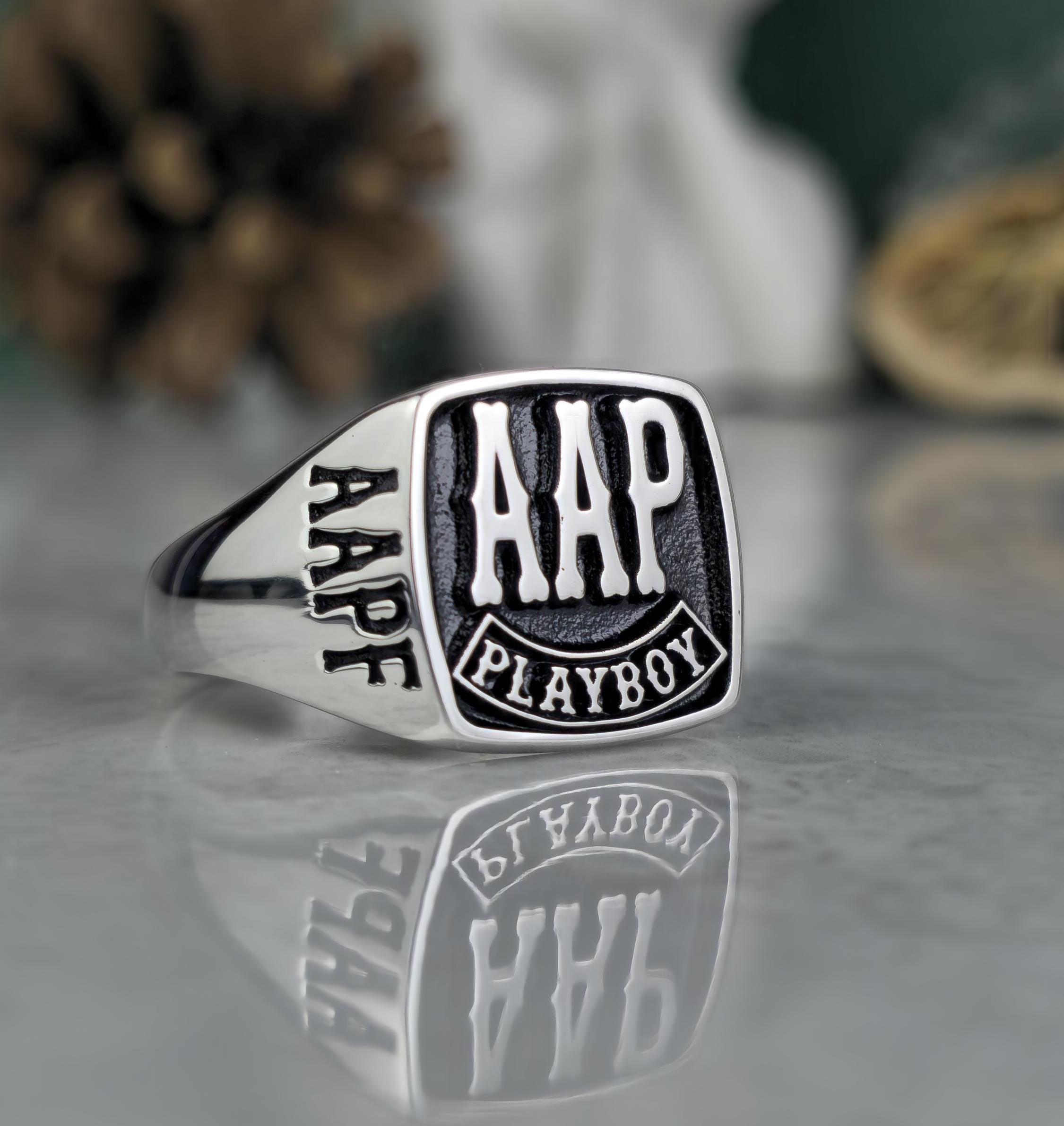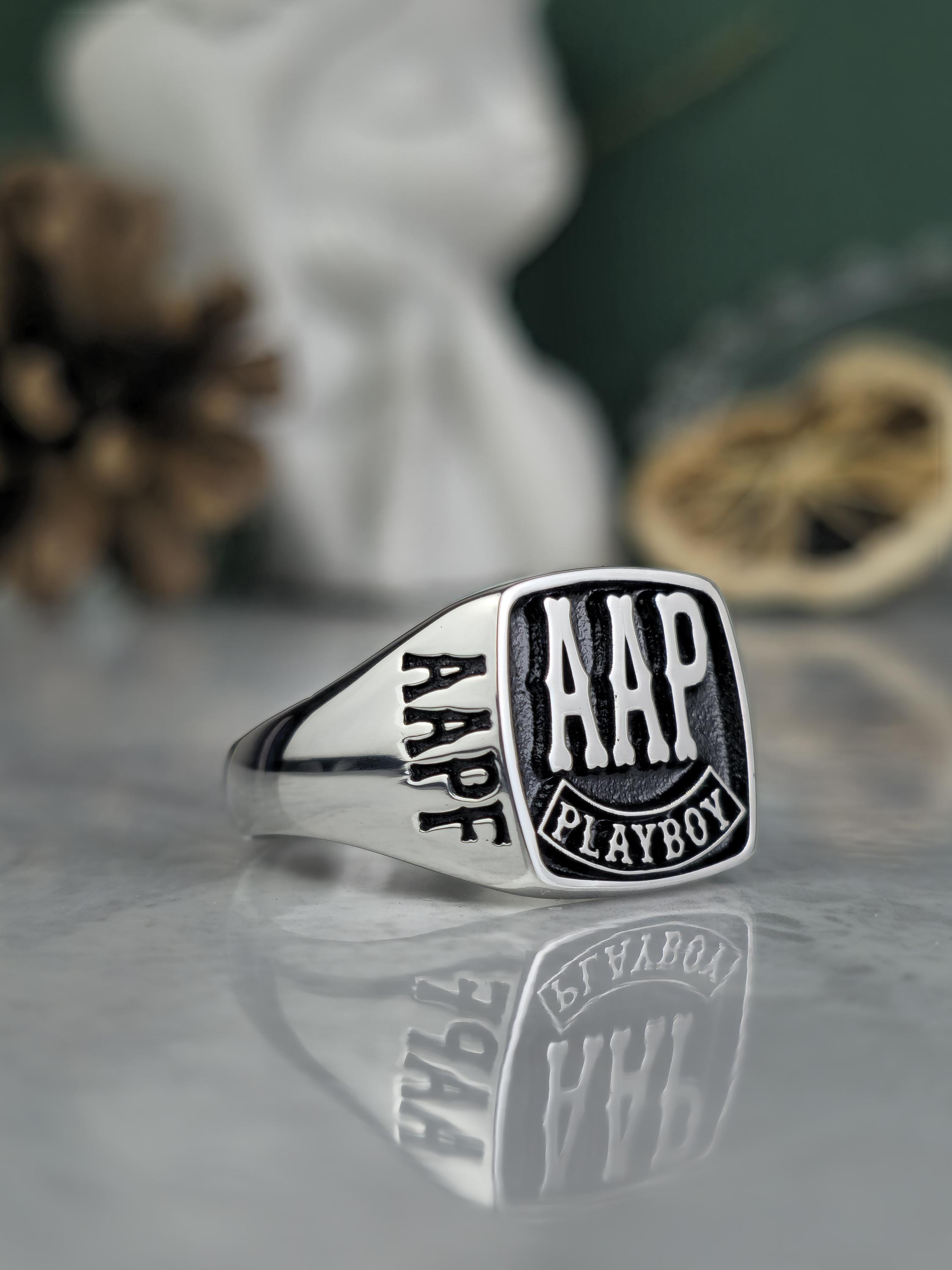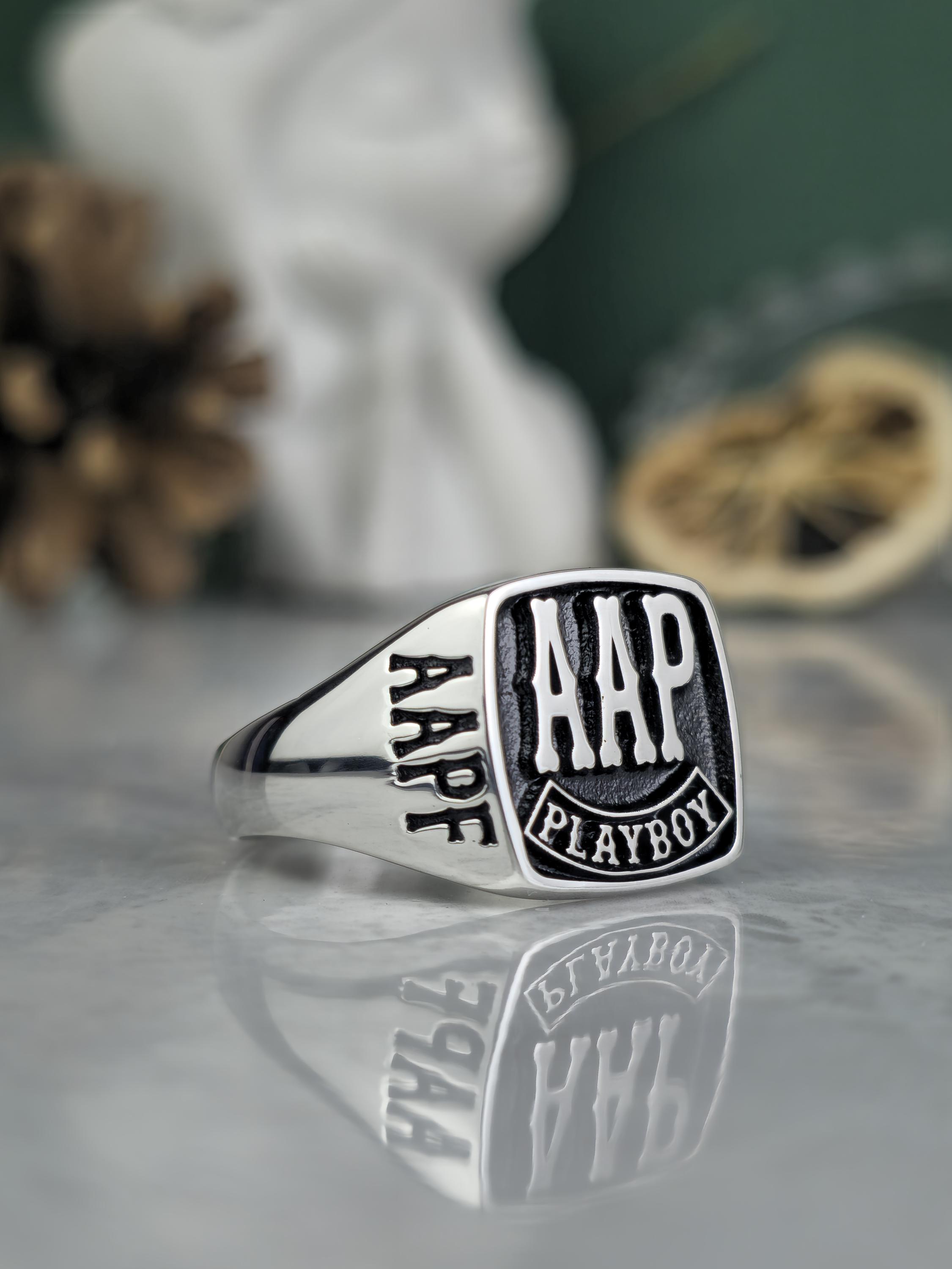 Personalized Silver Biker Ring | FAAP AHD Playboy Signet | Handmade Biker Ring Gift for Men