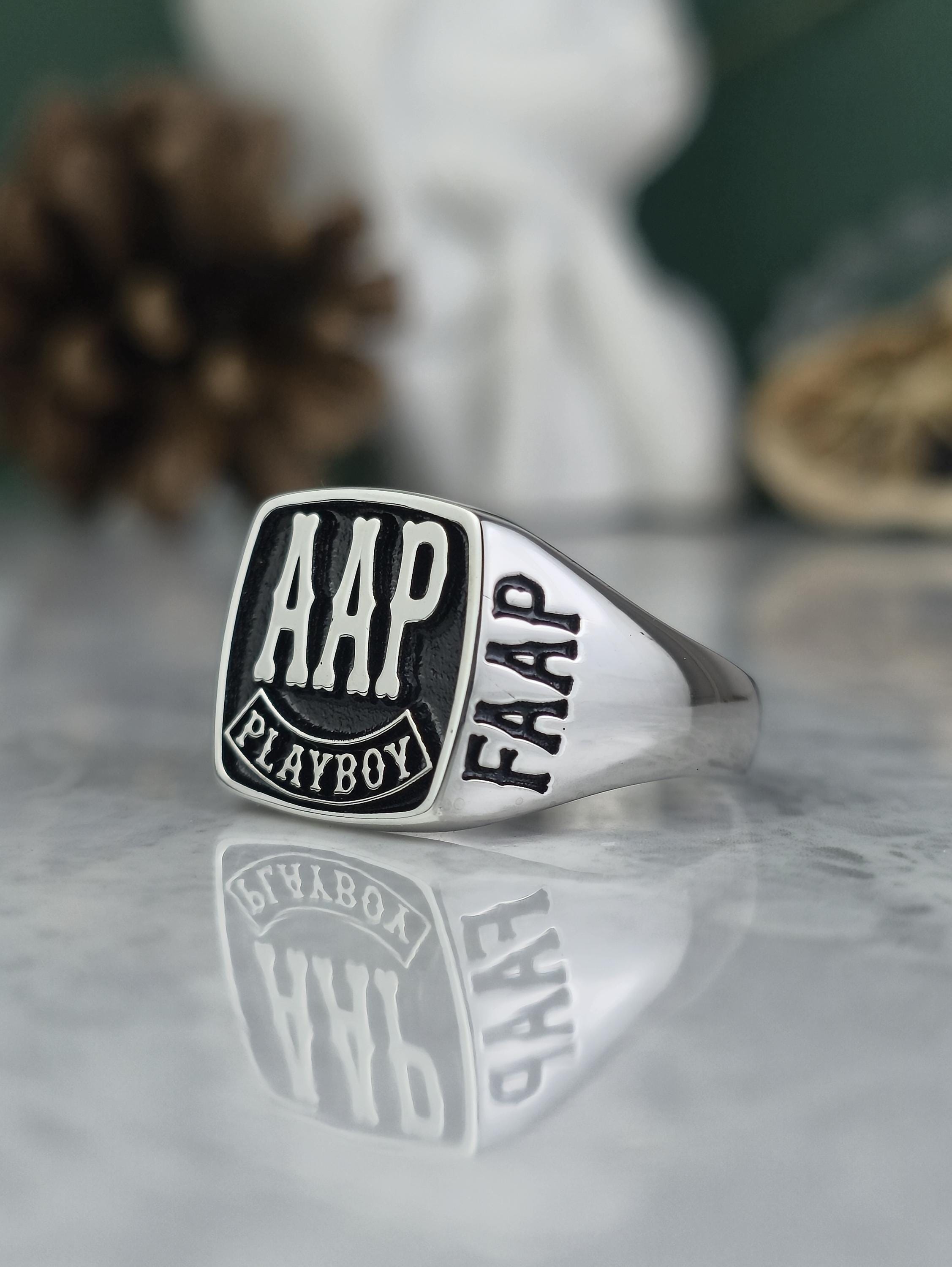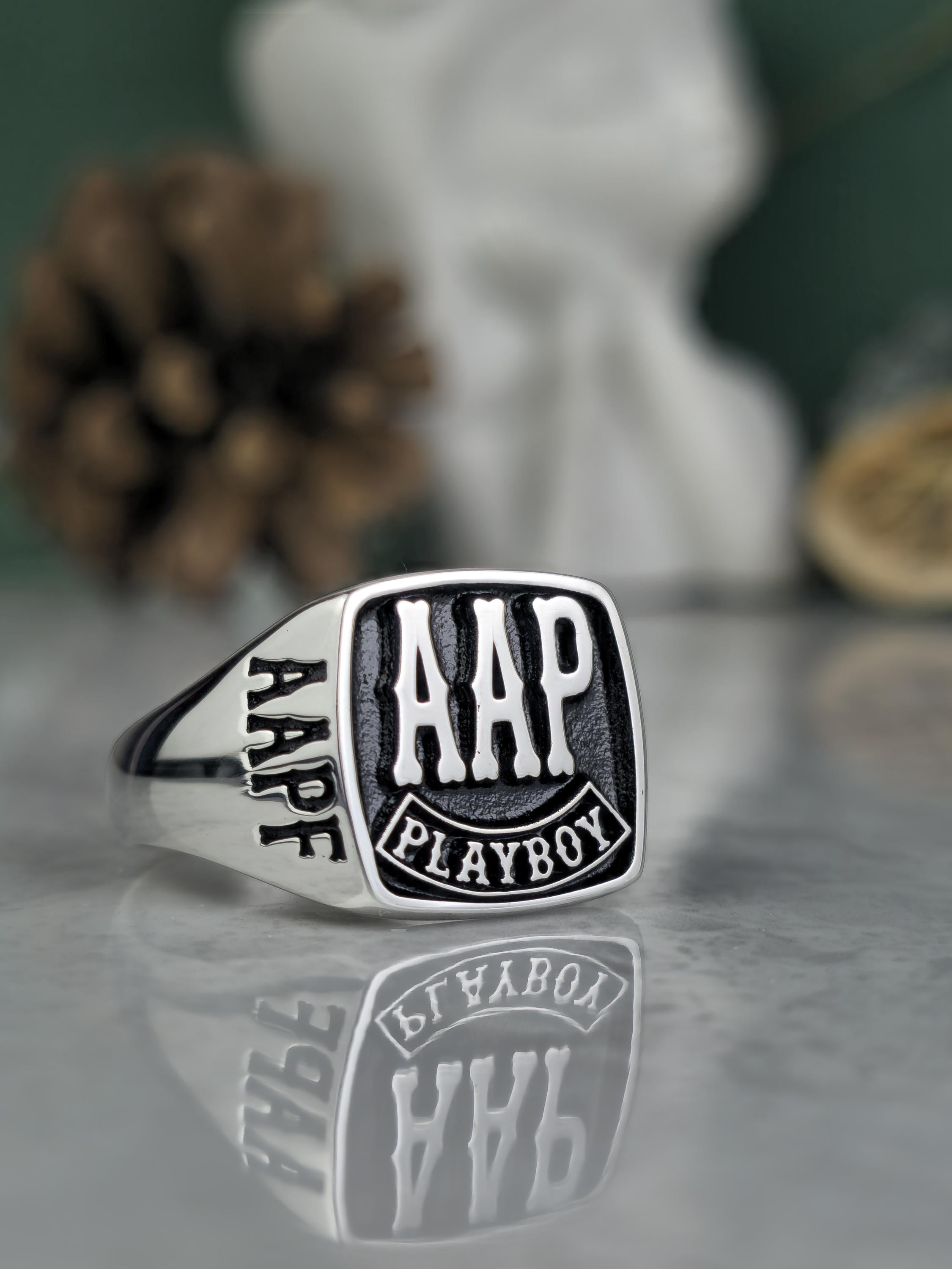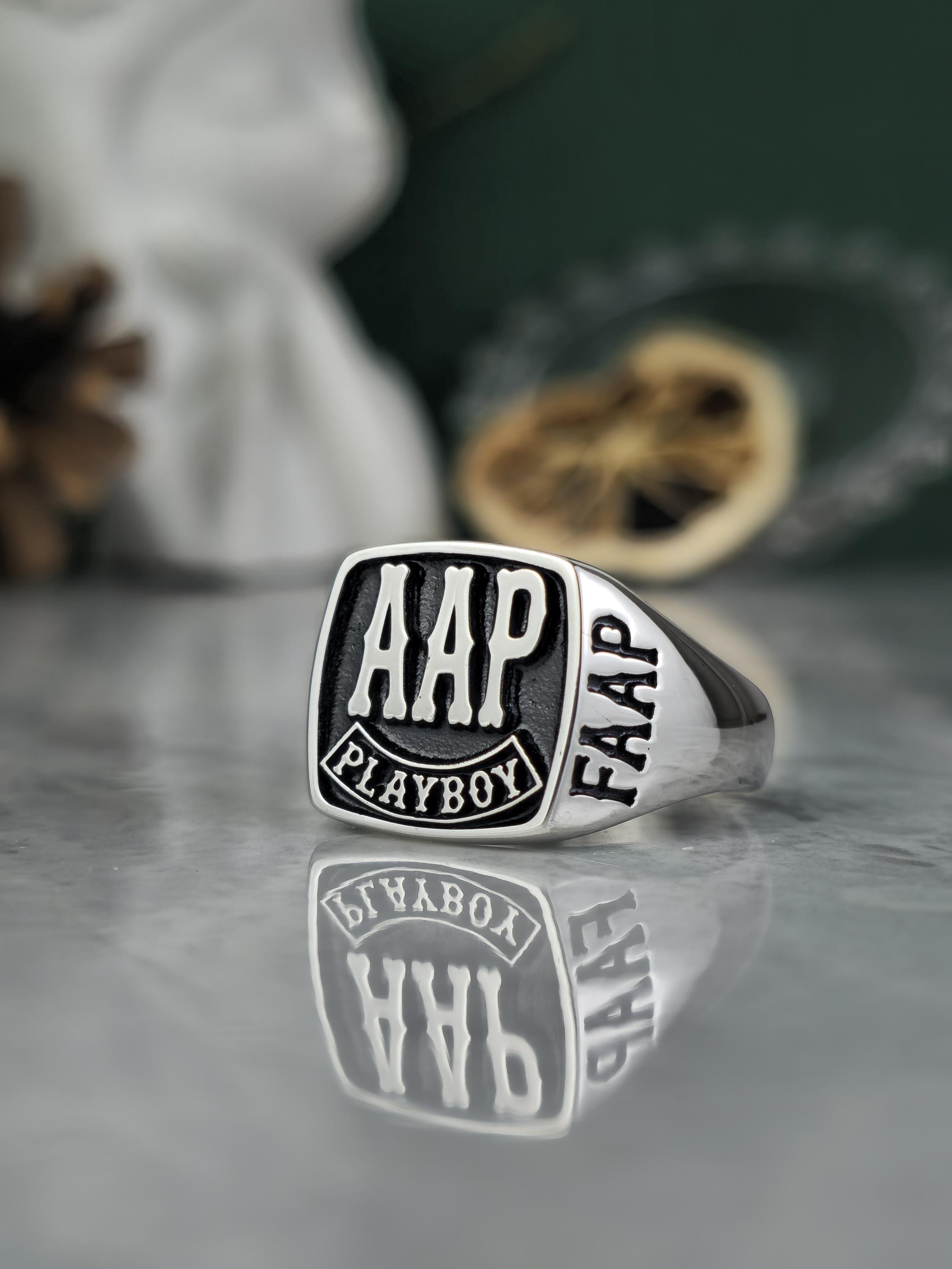 Design: ✨ Signet surface with FAAP, AHD, and PLAYBOY engravings, a personalized and bold statement.