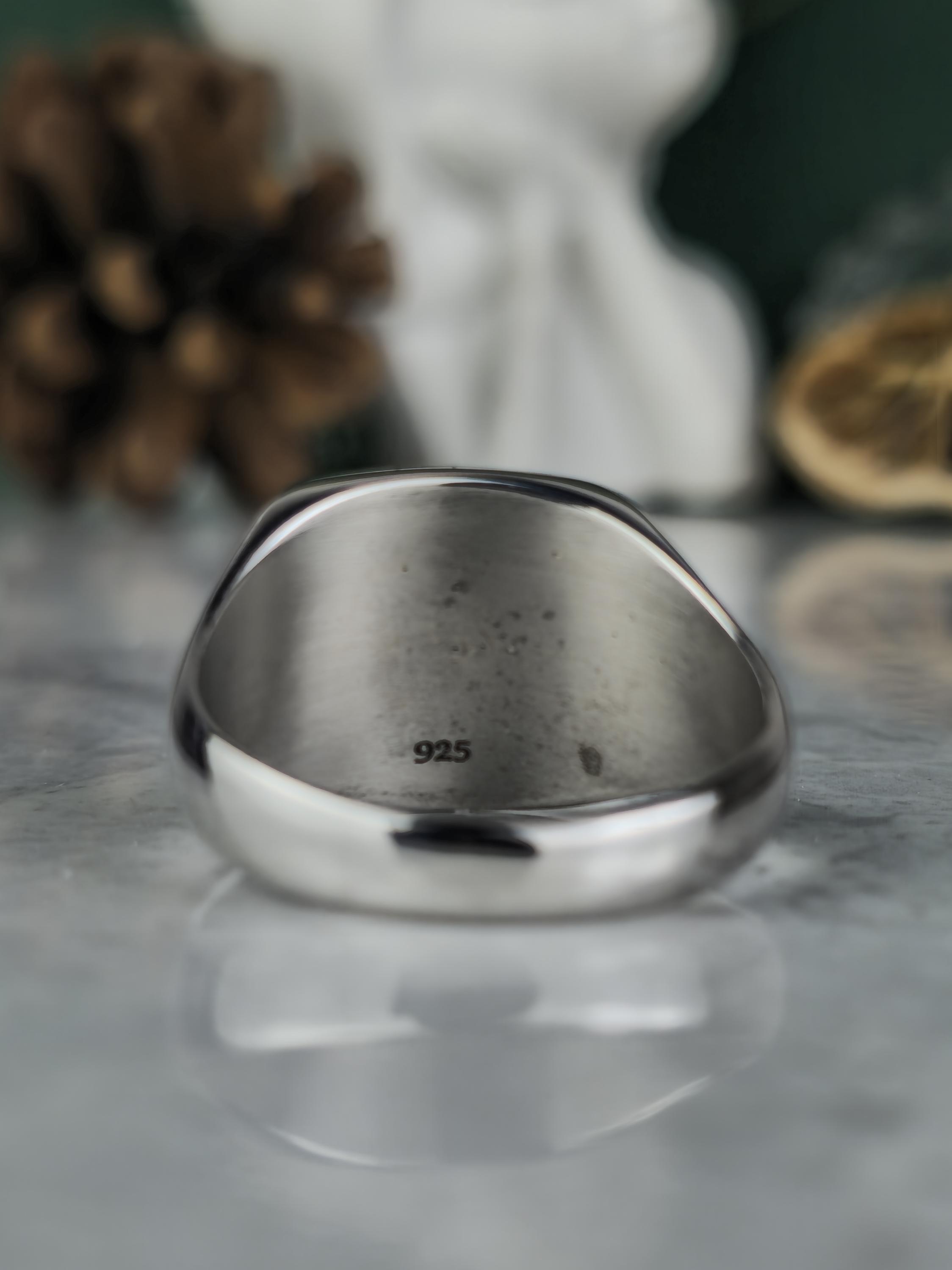 Surface Dimensions: 📏 Small 13x13 mm, Medium 16x16 mm, Large 19x19 mm, Extra Large 22x22 mm options. (Please note that these are surface dimensions and you must provide your ring size when ordering.)